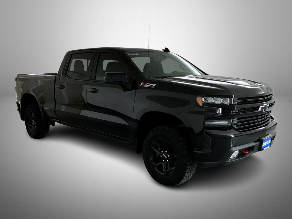 Certified. Black 2021 Chevrolet Silverado 1500 LT Trail Boss 4WD 10-Speed Automatic EcoTec3 5.3L V8 Chevrolet Certified Pre-Owned Certified, 10-Speed Automatic, 4WD, Black Cloth, 10-Way Power Driver Seat w/Lumbar, 12-Volt Rear Auxiliary Power Outlet, 120-Volt Bed Mounted Power Outlet, 120-Volt Instrument Panel Power Outlet, 170 Amp Alternator, 2 USB Ports, 2 USB Ports (First Row), 3.23 Rear Axle Ratio, 4-Wheel Disc Brakes, 4.2" Diagonal Color Display Driver Info Center, 4G LTE Wi-Fi Hot Spot Capable, 6 Speakers, 6-Speaker Audio System, ABS brakes, Air Conditioning, All-Weather Floor Liner (LPO) (AAK), Alloy wheels, AM/FM radio: SiriusXM, Apple CarPlay/Android Auto, Auto-Locking Rear Differential, Automatic temperature control, Auxiliary External Transmission Oil Cooler, Black Name Plates (LPO), Black Tailgate CHEVROLET Lettering (LPO), Bluetooth® For Phone, Brake assist, Chevrolet Connected Access Capable, Cloth Rear Seat w/Storage Package, Cloth Seat Trim, Color-Keyed Carpeting Floor Covering, Compass, Convenience Package II, Convenience Package w/Buckets Seats, Dark Essentials Package (LPO), Deep-Tinted Glass, Delay-off headlights, Driver door bin, Driver vanity mirror, Dual Exhaust w/Polished Outlets, Dual front impact airbags, Dual front side impact airbags, Dual-Zone Automatic Climate Control, Electric Rear-Window Defogger, Electrical Lock Control Steering Column, Electronic Cruise Control, Electronic Stability Control, EZ Lift Power Lock & Release Tailgate, Floor Mounted Center Console, Front anti-roll bar, Front Bucket Seats, Front Center Armrest w/Storage, Front dual zone A/C, Front fog lights, Front LED Fog Lamps, Front License Plate Kit, Front reading lights, Front wheel independent suspension, Fully automatic headlights, HD Radio, HD Rear Vision Camera, Heated door mirrors, Heated Driver & Front Outboard Passenger Seats, Heated front seats, Heated Steering Wheel, Heated steering wheel, Heavy-Duty Air Filter, High Gloss Black Grille, High Gloss Black Mirror Caps, Hill Descent Control, Hitch Guidance, Illuminated entry, Integrated Trailer Brake Controller, Keyless Open & Start, Leather Wrapped Steering Wheel, LED Cargo Area Lighting, LED Reflector Headlamps, Low tire pressure warning, Manual Tilt/Telescoping Steering Column, Occupant sensing airbag, Off-Road Suspension w/2" Lift, OnStar & Chevrolet Connected Services Capable, Outside temperature display, Overhead airbag, Overhead console, Panic alarm, Passenger door bin, Passenger vanity mirror, Performance Red Recovery Hooks, Power Door Locks, Power door mirrors, Power driver seat, Power Front Windows w/Driver Express Up/Down, Power Front Windows w/Passenger Express Down, Power Rear Windows w/Express Down, Power Sliding Rear Window w/Rear Defogger, Power steering, Power windows, Preferred Equipment Group 2LT, Premium audio system: Chevrolet Infotainment 3, Premium Bose 7-Speaker Sound System, Radio data system, Radio: Chevrolet Infotainment 3 Plus System, Radio: Chevrolet Infotainment 3 System, Rear Dual USB Charging-Only Ports, Rear reading lights, Rear seat center armrest, Rear step bumper, Rear Vision Camera, Rear window defroster, Remote keyless entry, Remote Vehicle Starter System, Security system, SiriusXM Radio, SiriusXM w/360L, Speed control, Speed-sensing steering, Split folding rear seat, Standard Tailgate, Steering Wheel Audio Controls, Steering wheel mounted audio controls, Suspension Package, Tachometer, Telescoping steering wheel, Theft Deterrent System (Unauthorized Entry), Tilt steering wheel, Traction control, Trailering Package, Trip computer, Universal Home Remote, Variably intermittent wipers, Voltmeter, Wheels: 18" x 8.5" Black Painted Aluminum, Wireless Phone Projection, 10-Speed Automatic, 4WD, Black Cloth.