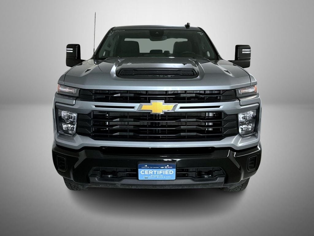 Certified. Sterling Gray Metallic 2024 Chevrolet Silverado 2500HD Custom 4WD 10-Speed Automatic 6.6L V8 Chevrolet Certified Pre-Owned Certified, 10-Speed Automatic, 4WD, Black Cloth, 10-Way Power Driver Seat Adjuster w/Lumbar, 120-Volt Bed Mounted Power Outlet, 120-Volt Interior Power Outlet, 170 Amp Alternator, 2-Speed Electronic Shift Transfer Case, 3.5" Diagonal Monochromatic Display DIC, 3.73 Rear Axle Ratio, 4-Wheel Disc Brakes, 6 Speakers, 6-Speaker Audio System, 720 Cold-Cranking Amps Heavy-Duty Battery, ABS brakes, Air Conditioning, Alloy wheels, AM/FM radio: SiriusXM with 360L, Apple CarPlay/Android Auto, Auto High-beam Headlights, Auto-Dimming Inside Rear-View Mirror, Black Mirror Caps, Bluetooth® For Phone, Brake assist, Chevrolet Connected Access Capable, Cloth Seat Trim, Color-Keyed Carpeting Floor Covering, Compass, Custom Convenience Package, Custom Value Package, CX Safety Package, Deep-Tinted Glass, Delay-off headlights, Driver door bin, Dual front impact airbags, Dual front side impact airbags, Dual Rear USB Ports (Charge Only), Durabed Pickup Bed, Electric Rear-Window Defogger, Electronic Cruise Control w/Set & Resume Speed, Electronic Stability Control, EZ Lift Power Lock & Release Tailgate, Front 40/20/40 Split-Bench Seats w/Lockable Storage, Front anti-roll bar, Front Center Armrest w/Storage, Front License Plate Kit, Front reading lights, Front Rubberized Vinyl Floor Mats, Front wheel independent suspension, Fully automatic headlights, HD Rear Vision Camera, Heated & Auto-Dimming Vertical Trailering Mirrors, Heated door mirrors, Heated Vertical Trailering Mirrors, Illuminated entry, Integrated Trailer Brake Controller, Lane Change Alert w/Side Blind Zone Alert, LED Cargo Area Lighting, Locking Tailgate, Low tire pressure warning, Manual Tailgate Function w/No EZ Lift, Manual Tilt-Wheel Steering Column, Not Equipped w/Rear USB Ports, Occupant sensing airbag, OnStar & Chevrolet Connected Services Capable, Outside temperature display, Overhead airbag, Overhead console, Panic alarm, Passenger door bin, Passenger vanity mirror, Power Door Locks, Power door mirrors, Power Front Windows w/Driver Express Up/Down, Power Front Windows w/Passenger Express Down, Power Rear Windows w/Express Down, Power steering, Power windows, Preferred Equipment Group 1CX, Premium audio system: Chevrolet Infotainment 3, Push Button Start, Radio: Chevrolet Infotainment 3 System, Rear 60/40 Folding Bench Seat (Folds Up), Rear Cross Traffic Alert, Rear Park Assist, Rear reading lights, Rear Rubberized Vinyl Floor Mats, Rear step bumper, Remote Keyless Entry, Remote keyless entry, Remote Vehicle Starter System, SiriusXM w/360L, Speed control, Split folding rear seat, Standard Tailgate, Suspension Package, Tachometer, Tilt steering wheel, Traction control, Trip computer, Turn signal indicator mirrors, Unauthorized Entry Theft-Deterrent System, Variably intermittent wipers, Voltmeter, Wheels: 20" 10-Spoke Machined Aluminum, Wi-Fi Hotspot Capable, Wireless Phone Projection, 10-Speed Automatic, 4WD, Black Cloth.