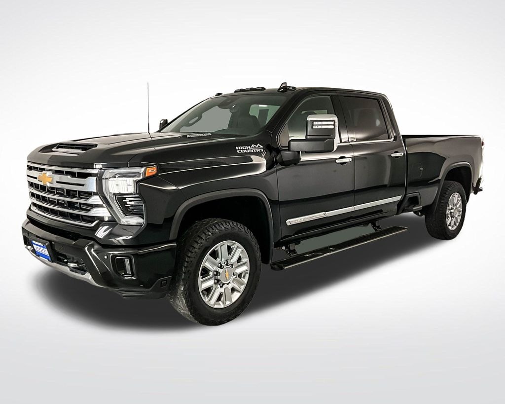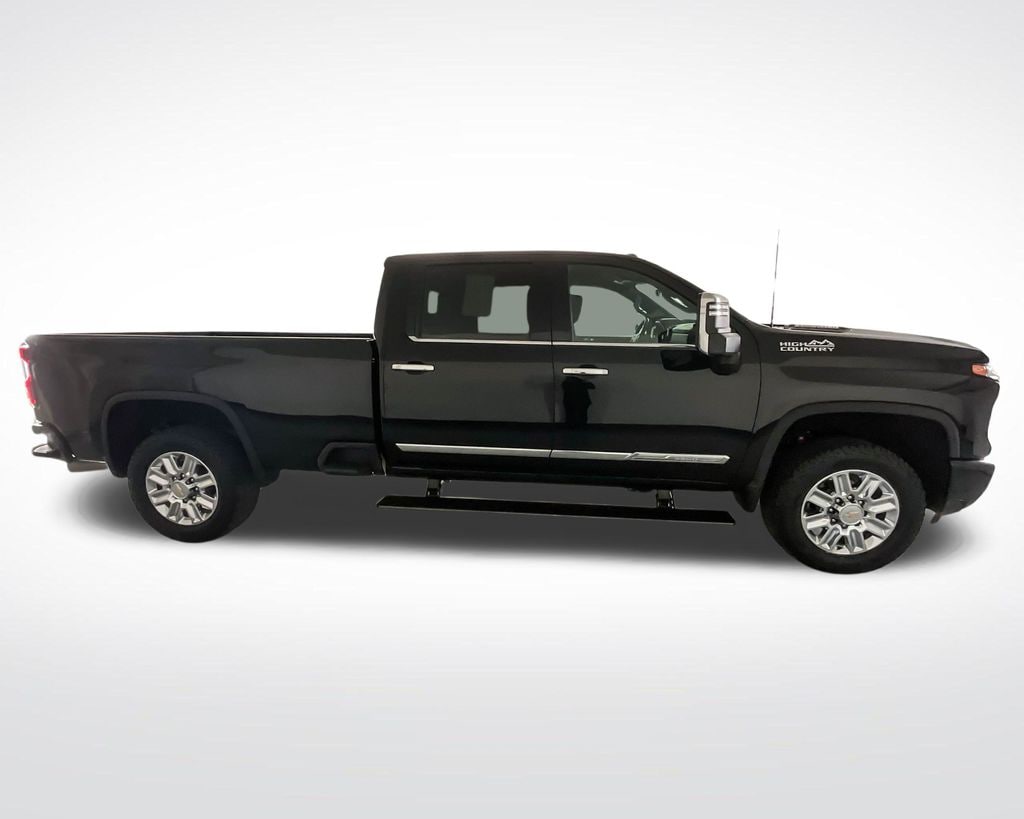Certified. Black 2024 Chevrolet Silverado 3500HD High Country 4WD 10-Speed Automatic Duramax 6.6L V8 Turbodiesel GM Certified, 10-Speed Automatic, 4WD, Jet Black Leather, 10-Way Power Driver Seat Adjuster w/Lumbar, 10-Way Power Passenger Seat Adjuster w/Lumbar, 120-Volt Bed Mounted Power Outlet, 120-Volt Interior Power Outlet, 170 Amp Alternator, 220 Amp Alternator, 3.42 Rear Axle Ratio, 3.73 Rear Axle Ratio, 4-Wheel Disc Brakes, 6" Rectangular Chromed Tubular Assist Steps, 7 Speakers, ABS brakes, Adaptive Cruise Control, Air Conditioning, Alloy wheels, AM/FM radio: SiriusXM with 360L, Apple CarPlay/Android Auto, Auto High-beam Headlights, Auto-dimming door mirrors, Auto-Dimming Inside Rear-View Mirror, Auto-Dimming Inside Rearview Mirror w/Camera, Auto-dimming Rear-View mirror, Automatic temperature control, Bed View Camera w/2 Trailer Camera Provisions, Bluetooth® For Phone, Bodyside moldings, Bose Premium 7-Speaker Sound System, Brake assist, Bumpers: body-color, Chevrolet Connected Access Capable, Chevytec Spray-On Black Bedliner, Chrome Door Handles, Chrome Mirror Caps, Color-Keyed Carpeting Floor Covering, Compass, Compass Located In Instrument Cluster, Deep-Tinted Glass, Delay-off headlights, Driver door bin, Driver Memory, Driver vanity mirror, Dual front impact airbags, Dual front side impact airbags, Durabed Pickup Bed, Electric Rear-Window Defogger, Electronic Stability Control, Engine Block Heater, Exhaust Brake, Floor-Mounted Center Console, Front anti-roll bar, Front Bucket Seats, Front Carpeted Floor Mats, Front Center Armrest, Front Chrome Recovery Hooks, Front dual zone A/C, Front fog lights, Front LED Fog Lamps, Front License Plate Kit, Front Rain-Sensing Wipers, Front reading lights, Front wheel independent suspension, Fully automatic headlights, Garage door transmitter, Genuine wood console insert, Genuine wood dashboard insert, Genuine wood door panel insert, Gooseneck/5th Wheel Package (DISC), Gooseneck/5th Wheel Prep Package, Heated 2nd Row Outboard Seats, Heated door mirrors, Heated Driver & Front Outboard Passenger Seats, Heated front seats, Heated rear seats, Heated Steering Wheel, Heated steering wheel, Heavy-Duty 80 Amp-Hr Battery, Hitch Guidance w/Hitch View, Illuminated entry, In-Vehicle Trailering App System, Keyless Open & Start, LED Cargo Area Lighting, Low tire pressure warning, Manual Tilt-Wheel/Telescoping Steering Column, Memory seat, Multicolor 15" Diagonal Head-Up Display, Occupant sensing airbag, OnStar & Chevrolet Connected Services Capable, Outside temperature display, Overhead airbag, Overhead console, Panic alarm, Passenger door bin, Passenger vanity mirror, Perforated Leather Seating Surfaces, Polished Exhaust Tip, Power Door Locks, Power door mirrors, Power driver seat, Power Front Windows w/Driver Express Up/Down, Power Front Windows w/Passenger Express Up/Down, Power passenger seat, Power Rear Windows w/Express Down, Power Sliding Rear Window w/Defogger, Power steering, Power Tailgate, Power windows, Power-Retractable Assist Steps, Preferred Equipment Group 3LZ, Premium audio system: Chevrolet Infotainment 3 Premium, Push Button Start, Radio: Chevrolet Infotainment 3 Premium System, Rain sensing wipers, Rear Carpeted Floor Mats, Rear Cross Traffic Alert, Rear reading lights, Rear seat center armrest, Rear step bumper, Rear window defroster, Remote keyless entry, Remote Vehicle Starter System, Security system, SiriusXM w/360L, Speed control, Speed-sensing steering, Split folding rear seat, Standard Tailgate, Steering Wheel Audio Controls, Steering wheel mounted audio controls, Steering Wheel Mounted Electronic Cruise Control, Suspension Package, Tachometer, Technology Package, Telescoping steering wheel, Tilt steering wheel, Traction control, Trailer Camera Provisions, Trailer Side Blind Zone Alert, Trip computer, Turn signal indicator mirrors, Ultrasonic Front & Rear Park Assist, Unauthorized Entry Theft-Deterrent System, Universal Home Remote, Up-Level Rear Seat w/Storage Packa