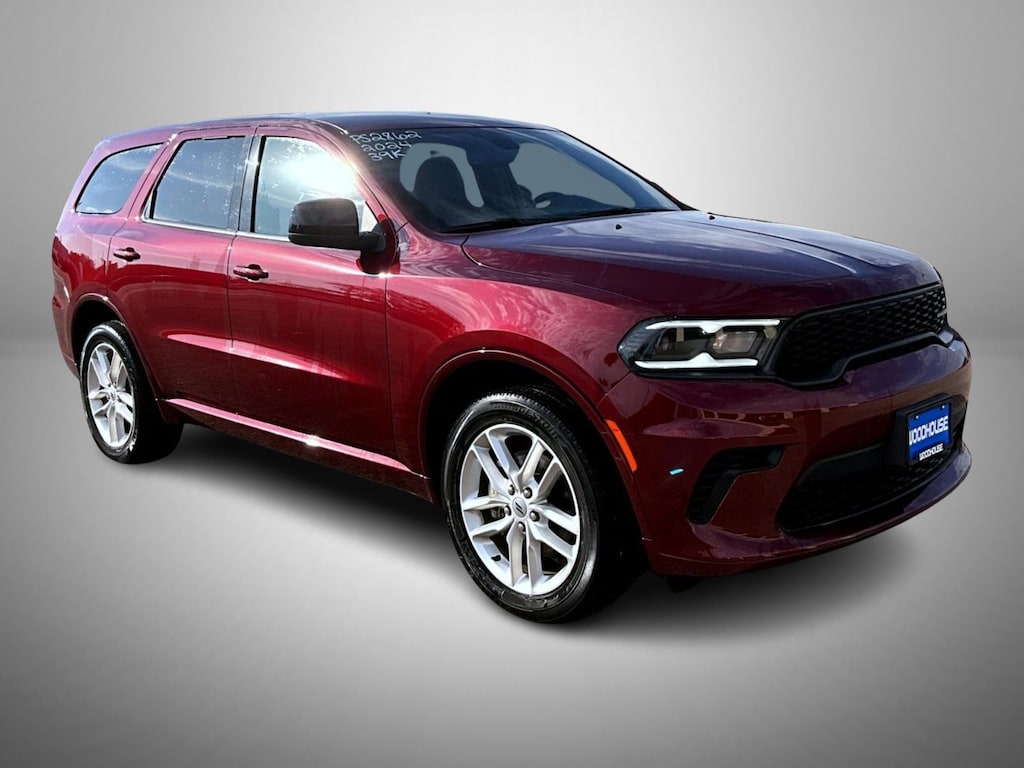 Certified. Octane Red Pearlcoat 2024 Dodge Durango GT AWD 8-Speed Automatic 3.6L V6 24V VVT 3.45 Rear Axle Ratio, 3rd row seats: split-bench, 4-Wheel Disc Brakes, 6 Speakers, ABS brakes, Air Conditioning, Alloy wheels, AM/FM radio: SiriusXM, Apple CarPlay, Apple CarPlay/Android Auto, Auto-dimming Rear-View mirror, Automatic temperature control, Brake assist, Bumpers: body-color, Cloth Bucket Seats w/Shift Insert, Compass, Delay-off headlights, Driver door bin, Driver vanity mirror, Dual front impact airbags, Dual front side impact airbags, Electronic Stability Control, Exterior Mirrors w/Heating Element, Four wheel independent suspension, Front anti-roll bar, Front Bucket Seats, Front Center Armrest w/Storage, Front dual zone A/C, Front License Plate Bracket, Front reading lights, Fully automatic headlights, Garage door transmitter, Gloss Black Exterior Mirrors, Google Android Auto, GPS Antenna Input, Heated door mirrors, Heated front seats, Heated steering wheel, Illuminated entry, Integrated Center Stack Radio, Integrated Voice Command w/Bluetooth, Knee airbag, Leather steering wheel, Low tire pressure warning, Occupant sensing airbag, Outside temperature display, Overhead airbag, Overhead console, Panic alarm, ParkView Rear Back-Up Camera, Passenger door bin, Passenger vanity mirror, Power door mirrors, Power driver seat, Power Liftgate, Power steering, Power windows, Quick Order Package 2BD GT, Radio data system, Radio: Uconnect 4 w/8.4" Display, Rear air conditioning, Rear anti-roll bar, Rear reading lights, Rear seat center armrest, Rear window defroster, Rear window wiper, Red Accent Stitching, Remote keyless entry, Speed control, Speed-sensing steering, Speed-Sensitive Wipers, Split folding rear seat, Spoiler, Sport steering wheel, Steering wheel mounted audio controls, Tachometer, Telescoping steering wheel, Tilt steering wheel, Traction control, Trip computer, USB Host Flip, Variably intermittent wipers, Voltmeter, Wheels: 20" x 8.0" Fine Silver.