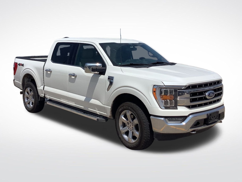Star White Metallic Tri-Coat 2022 Ford F-150 Lariat 4WD 10-Speed Automatic 3.5L V6 EcoBoost 18" Machined-Aluminum Wheels, 4-Wheel Disc Brakes, 6" Bright Polished Running Board, 7 Speakers, ABS brakes, Adjustable pedals, Air Conditioning, Alloy wheels, AM/FM radio: SiriusXM with 360L, Auto High-beam Headlights, Auto Start-Stop Removal, Auto-dimming door mirrors, Auto-dimming Rear-View mirror, Automatic temperature control, Bed Utility Package, BoxLink, Brake assist, Bumpers: chrome, Chrome 2-Bar Grille w/4 Minor Bars, Chrome Door & Tailgate Handles w/Body-Color Bezel, Chrome Single-Tip Exhaust, Chrome Skull Caps on Exterior Mirrors, Class IV Trailer Hitch Receiver, Compass, Connected Navigation & SiriusXM w/360L Removal, Delay-off headlights, Driver door bin, Driver vanity mirror, Dual front impact airbags, Dual front side impact airbags, Electronic Stability Control, Emergency communication system: SYNC 4 911 Assist, Equipment Group 501A Mid, Extended Range 36 Gallon Fuel Tank, Exterior Parking Camera Rear, Front anti-roll bar, Front Center Armrest w/Storage, Front dual zone A/C, Front fog lights, Front reading lights, Front wheel independent suspension, Fully automatic headlights, Heated door mirrors, Heated front seats, Illuminated entry, Integrated Trailer Brake Controller, Interior Work Surface, Lariat Chrome Appearance Package, Leather-Trimmed 40/20/40 Front Seat, LED Box Lighting, LED Sideview Mirror Spotlights, Low tire pressure warning, Max Trailer Tow Package, Memory seat, Occupant sensing airbag, Onboard 400W Outlet, Outside temperature display, Overhead airbag, Overhead console, Panic alarm, Passenger door bin, Passenger vanity mirror, Pedal memory, Power door mirrors, Power driver seat, Power passenger seat, Power steering, Power Tailgate, Power windows, Pro Trailer Backup Assist, Radio data system, Radio: AM/FM SiriusXM w/360L, Radio: B&O Sound System by Bang & Olufsen, Rear reading lights, Rear seat center armrest, Rear step bumper, Rear window defroster, Remote keyless entry, Security system, Speed control, Speed-sensing steering, Split folding rear seat, Steering wheel mounted audio controls, SYNC 4 w/Enhanced Voice Recognition, Tachometer, Tailgate Step w/Tailgate Work Surface, Telescoping steering wheel, Tilt steering wheel, Traction control, Trip computer, Turn signal indicator mirrors, Variably intermittent wipers, Ventilated front seats, Voltmeter, Wheels: 18" Chrome-Like PVD, Wheels: 20" Chrome-Like PVD.