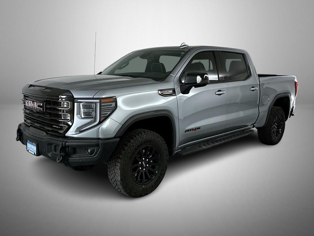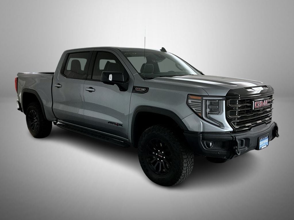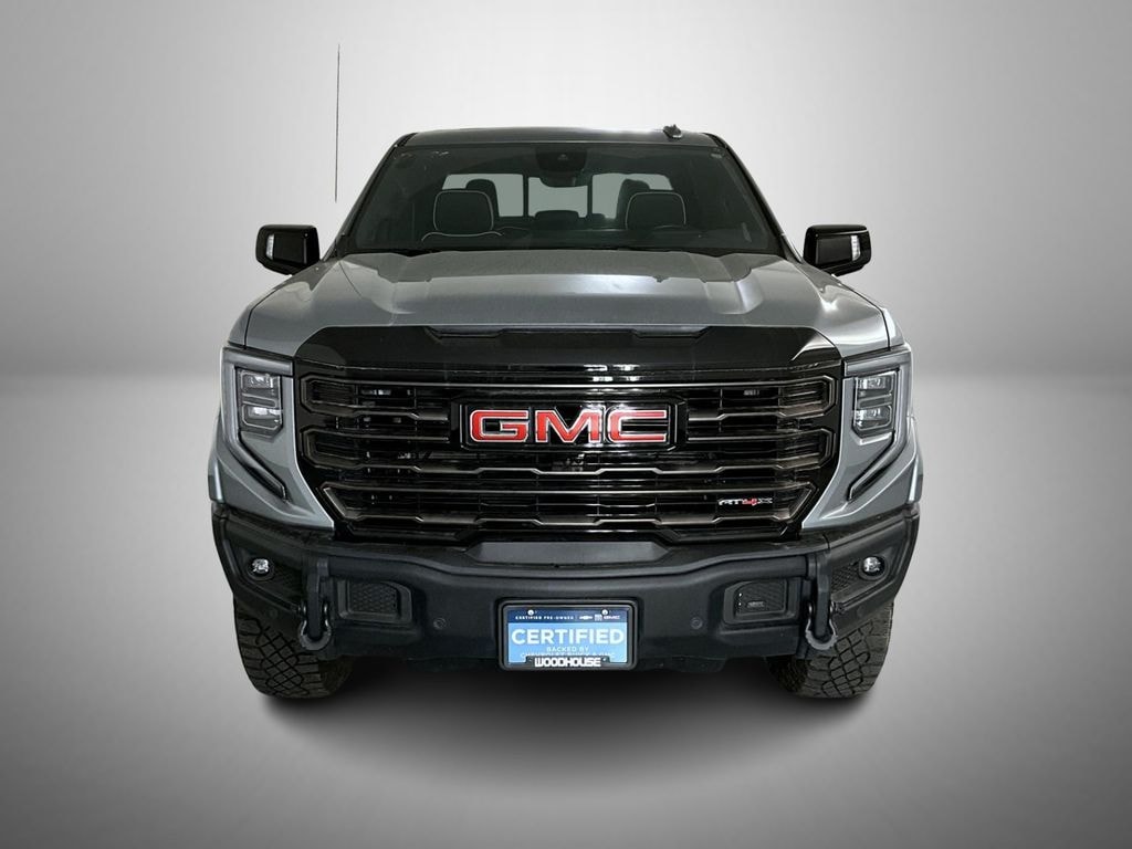 Certified. Sterling Metallic 2023 GMC Sierra 1500 AT4X 4WD 10-Speed Automatic EcoTec3 6.2L V8 GMC Certified Pre-Owned Certified, 10-Speed Automatic, 4WD, Obsidian Rush Leather, 12 Speakers, 120-Volt Bed Mounted Power Outlet, 120-Volt Instrument Panel Power Outlet, 16-Way Power Driver Seat Adjuster w/Lumbar, 16-Way Power Passenger Seat Adjuster w/Lumbar, 2 Charge/Data USB Ports Inside Center Console, 2 Type-C Charge-Only Rear USB Ports, 2 USB Ports, 3.23 Rear Axle Ratio, 4-Wheel Disc Brakes, ABS brakes, Air Conditioning, Alloy wheels, AM/FM radio, Apple CarPlay/Android Auto, Auto High-beam Headlights, Auto-dimming door mirrors, Auto-dimming Rear-View mirror, Automatic Emergency Braking, Automatic temperature control, Bed View Camera, Bose Premium Series w/12-Speaker System, Brake assist, Buckle to Drive, Color-Keyed Carpeting Floor Covering, Compass, Deep-Tinted Glass, Delay-off headlights, Driver door bin, Driver Memory, Driver vanity mirror, Driver-Selectable Full-Locking Front Differential, Driver-Selectable Full-Locking Rear Differential, Dual front impact airbags, Dual front side impact airbags, Electric Rear-Window Defogger, Electrical Steering Column Lock, Electronic Stability Control, Emergency communication system: OnStar and GMC connected services capable, Floor-Mounted Center Console, Following Distance Indicator, Forward Collision Alert, Front anti-roll bar, Front Bucket Seats, Front Center Armrest, Front dual zone A/C, Front fog lights, Front License Plate Kit, Front Pedestrian Braking, Front Prem Floor Liners w/Removable Carpet Insert, Front Rainsensing Wipers, Front reading lights, Front wheel independent suspension, Full Grain Leather Seat Trim, Fully automatic headlights, Garage door transmitter, Genuine wood dashboard insert, Genuine wood door panel insert, Gloss Black Header w/Drk Nickel Grille Insert Bars, GMC Connected Access Capable, HD Surround Vision, Heads-Up Display, Heated 2nd Row Outboard Seats, Heated door mirrors, Heated Driver & Front Outboard Passenger Seating, Heated front seats, Heated rear seats, Heated steering wheel, Heavy-Duty Air Filter, Hill Descent Control, Hitch Guidance, Hitch Guidance w/Hitch View, Illuminated entry, In-Vehicle Trailering App, Integrated Trailer Brake Controller, IntelliBeam Automatic High Beam On/Off, Keyless Open & Start, Lane Keep Assist w/Lane Departure Warning, LED Cargo Area Lighting, Low tire pressure warning, Memory seat, Multicolor 15" Diagonal Head-Up Display, MultiPro Audio System by Kicker (LPO), Navigation System, Not Equipped w/Steering Column Lock, Occupant sensing airbag, Off-Road High Clearance Step (LPO), Off-Road Suspension, OnStar & GMC Connected Services Capable, Outside temperature display, Overhead airbag, Overhead console, Panic alarm, Passenger door bin, Passenger vanity mirror, Perimeter Lighting, Power Door Locks, Power door mirrors, Power driver seat, Power Front Passenger Windows w/Express Up/Down, Power Front Windows w/Driver Express Up/Down, Power moonroof, Power passenger seat, Power Rake & Telescoping Steering Column, Power Rear Windows w/Express Down, Power Sliding Rear Window w/Rear Defogger, Power steering, Power Sunroof, Power windows, Preferred Equipment Group 4SG, Premium audio system: GMC Infotainment System, Push Button Start, Radio data system, Radio: Premium GMC Infotainment Audio System, Rain sensing wipers, Rear Cross Traffic Braking, Rear Pedestrian Detection, Rear Prem Floor Liners w/Removable Carpet Insert, Rear reading lights, Rear seat center armrest, Rear step bumper, Rear Wheelhouse Liners, Rear window defroster, Remote keyless entry, Remote Vehicle Starter System, Safety Alert Seat, Security system, SiriusXM w/360L, Speed control, Speed-sensing steering, Split folding rear seat, Spray-On Pickup Bed Liner w/AT4X Logo, Steering Wheel Audio Controls, Steering wheel mounted audio controls, Tachometer, Telescoping steering wheel, Theft Deterrent System (Unauthorized Entry), Tilt steering wheel, Traction control, Trailer