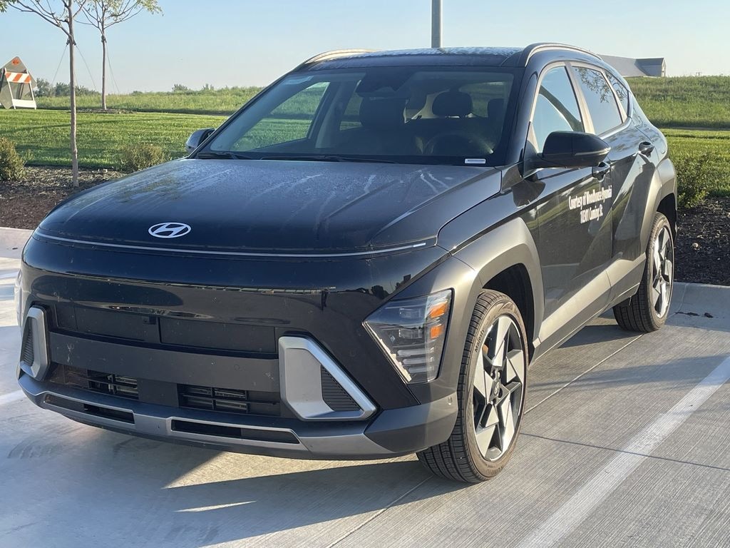 Abyss Black Pearl 2025 Hyundai Kona Limited AWD 8-Speed Automatic I4 4-Wheel Disc Brakes, 8 Speakers, ABS brakes, Air Conditioning, Alloy wheels, AM/FM radio: SiriusXM, Apple CarPlay & Android Auto, Auto High-beam Headlights, Auto-dimming Rear-View mirror, Automatic temperature control, Brake assist, Bumpers: body-color, Cargo Net, Cargo Tray, Carpeted Floor Mats, Column-Mounted Shift-By-Wire, Delay-off headlights, Driver door bin, Driver vanity mirror, Dual front impact airbags, Dual front side impact airbags, Electronic Stability Control, Emergency communication system: Bluelink+, First Aid Kit, Four wheel independent suspension, Front anti-roll bar, Front Bucket Seats, Front Center Armrest, Front dual zone A/C, Front reading lights, Fully automatic headlights, Garage door transmitter: HomeLink, H-Tex Leatherette Seat Trim, Heated & Ventilated Front Bucket Seats, Heated door mirrors, Heated front seats, Heated steering wheel, Illuminated entry, Leather steering wheel, Low tire pressure warning, Navigation System, Occupant sensing airbag, Option Group 01, Outside temperature display, Overhead airbag, Panic alarm, Passenger door bin, Passenger vanity mirror, Power door mirrors, Power driver seat, Power Liftgate, Power moonroof, Power steering, Power windows, Radio: AM/FM/HD Radio/SiriusXM w/Navigation, Rear anti-roll bar, Rear seat center armrest, Rear window defroster, Rear window wiper, Remote keyless entry, Security system, Speed control, Speed-sensing steering, Split folding rear seat, Spoiler, Steering wheel mounted audio controls, Tachometer, Telescoping steering wheel, Tilt steering wheel, Traction control, Trip computer, Turn signal indicator mirrors, Variably intermittent wipers, Ventilated front seats, Wheel Locks, Wheels: 19" x 7.5J Glossy Black Alloy.