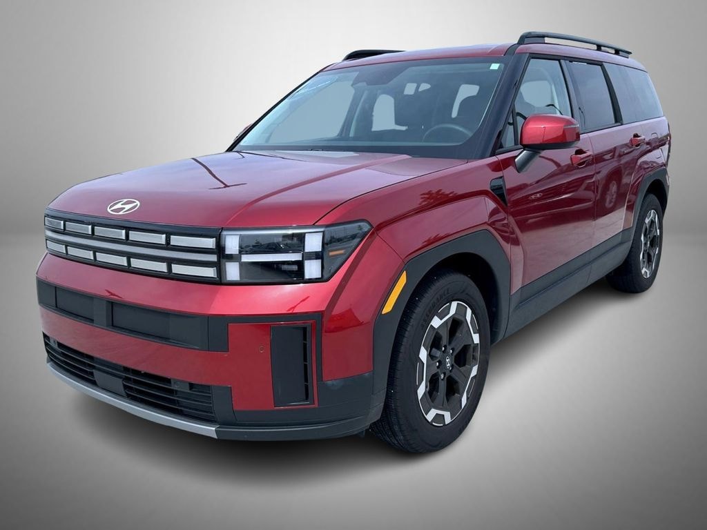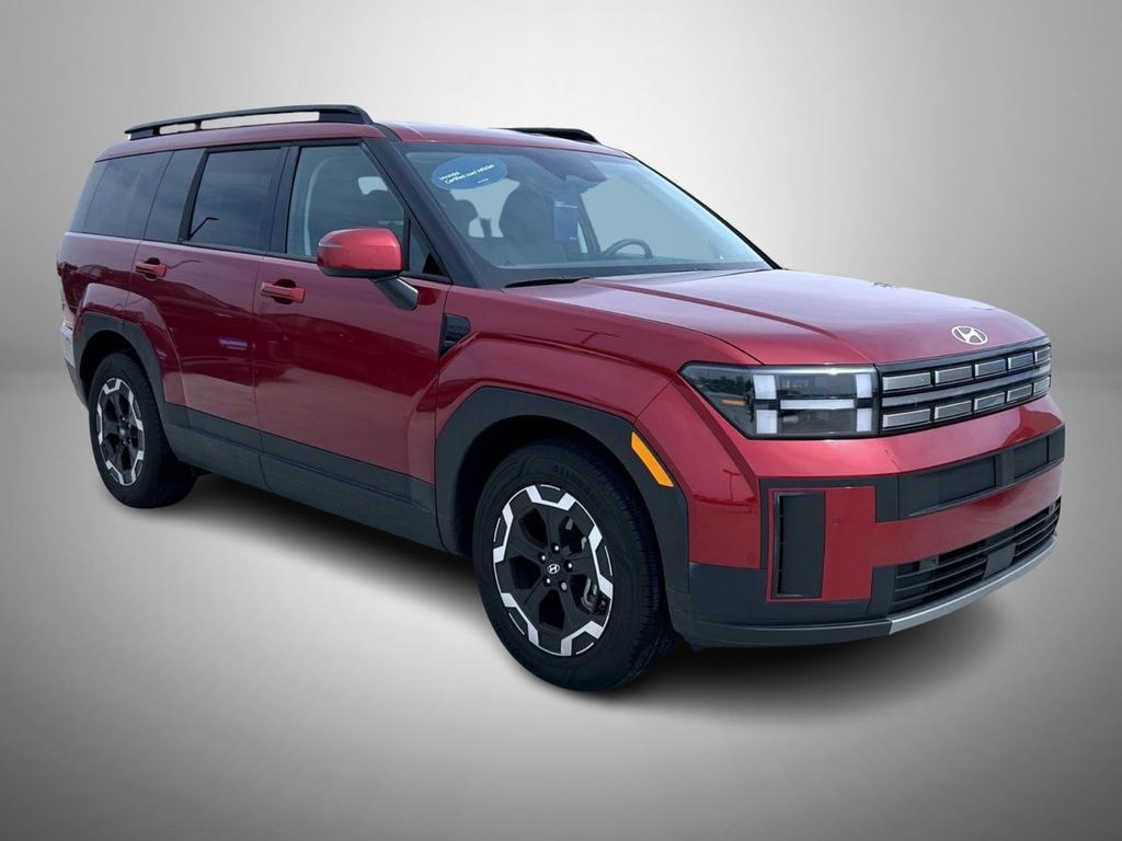 Ultimate Red 2025 Hyundai Santa Fe SEL AWD Shiftronic 2.5L I4 18" x 7.5J Alloy Wheels, 3rd row seats: bench, 4-Wheel Disc Brakes, 6 Speakers, ABS brakes, Air Conditioning, Alloy wheels, AM/FM radio: SiriusXM, Apple CarPlay & Android Auto, Auto High-beam Headlights, Automatic temperature control, Brake assist, Bumpers: body-color, Cargo Net, Cargo Tray, Carpeted Floor Mats, Delay-off headlights, Driver door bin, Driver vanity mirror, Dual front impact airbags, Dual front side impact airbags, Electronic Stability Control, Emergency communication system, Exterior Parking Camera Rear, First Aid Kit, Four wheel independent suspension, Front anti-roll bar, Front Bucket Seats, Front Center Armrest, Front dual zone A/C, Front reading lights, Fully automatic headlights, H-Tex Leatherette Seat Trim, Heated door mirrors, Heated Front Bucket Seats, Heated front seats, Illuminated entry, Knee airbag, Leather steering wheel, Low tire pressure warning, Occupant sensing airbag, Option Group 01, Outside temperature display, Overhead airbag, Overhead console, Panic alarm, Passenger door bin, Passenger vanity mirror, Power door mirrors, Power driver seat, Power Liftgate, Power steering, Power windows, Radio: AM/FM/HD Display Audio, Rear anti-roll bar, Rear seat center armrest, Rear side impact airbag, Rear window defroster, Rear window wiper, Remote keyless entry, Security system, Speed control, Speed-sensing steering, Split folding rear seat, Spoiler, Steering wheel mounted audio controls, Tachometer, Telescoping steering wheel, Tilt steering wheel, Traction control, Trip computer, Turn signal indicator mirrors, Variably intermittent wipers, Wheel Locks.
