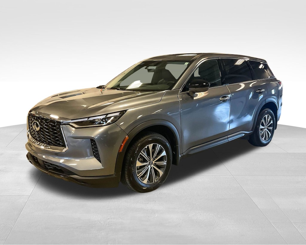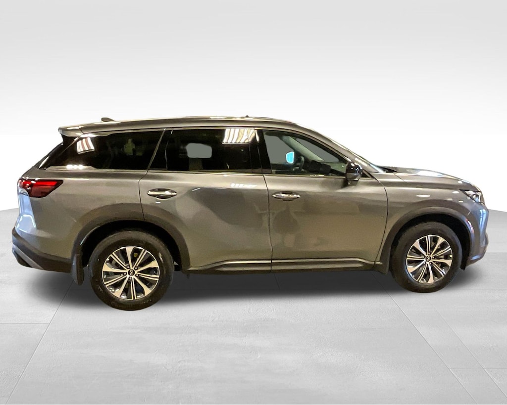 Certified. Graphite Shadow 2025 INFINITI QX60 PURE AWD 9-Speed Automatic 2.0L I4 Turbocharged DOHC 16V LEV3-ULEV50 268hp INFINITI Certified Pre-Owned Certified, 3rd row seats: bench, 4-Wheel Disc Brakes, 9 Speakers, ABS brakes, Air Conditioning, Alloy wheels, AM/FM radio: SiriusXM, Auto High-beam Headlights, Auto-dimming Rear-View mirror, Automatic temperature control, Blind Spot Warning, Brake assist, Delay-off headlights, Driver door bin, Driver vanity mirror, Dual front impact airbags, Dual front side impact airbags, Electronic Stability Control, Four wheel independent suspension, Front anti-roll bar, Front Bucket Seats, Front dual zone A/C, Front reading lights, Fully automatic headlights, Heated door mirrors, Heated front seats, Heated steering wheel, Illuminated entry, Knee airbag, Leather Shift Knob, Leather steering wheel, Leather-Appointed Seating Surfaces, Low tire pressure warning, Memory seat, Occupant sensing airbag, Outside temperature display, Overhead airbag, Overhead console, Panic alarm, Passenger door bin, Passenger vanity mirror, Power door mirrors, Power driver seat, Power Liftgate, Power moonroof, Power passenger seat, Power steering, Power windows, Radio data system, Rain sensing wipers, Rear air conditioning, Rear anti-roll bar, Rear Parking Sensors, Rear reading lights, Rear side impact airbag, Rear window defroster, Rear window wiper, Reclining 3rd row seat, Remote keyless entry, Security system, Speed control, Speed-sensing steering, Speed-Sensitive Wipers, Split folding rear seat, Spoiler, Steering wheel mounted audio controls, Tachometer, Telescoping steering wheel, Tilt steering wheel, Traction control, Trip computer, Turn signal indicator mirrors, Variably intermittent wipers.