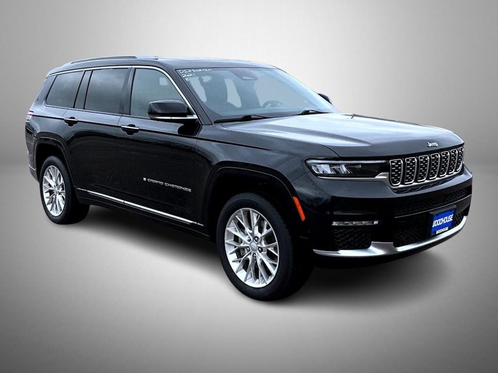 Certified. Diamond Black Crystal Pearlcoat 2021 Jeep Grand Cherokee L Summit 4WD 8-Speed Automatic 3.6L V6 24V VVT 10 Speakers, 2nd Row Manual Window Shades, 3.45 Rear Axle Ratio, 3rd row seats: split-bench, 4-Wheel Disc Brakes, ABS brakes, Active Noise Control System, Adaptive suspension, Advanced Protech Group IV, Air Conditioning, Air Susp/Activ Damping Delete Credit, Alloy wheels, AM/FM radio: SiriusXM w/360L, Anti-whiplash front head restraints, Apple CarPlay/Android Auto, Audio memory, Auto High-beam Headlights, Auto-dimming door mirrors, Auto-dimming Rear-View mirror, Auto-leveling suspension, Automatic temperature control, Body Color Roof (DISC), Brake assist, Bumpers: body-color, Compass, Delay-off headlights, Driver door bin, Driver vanity mirror, Dual front impact airbags, Dual front side impact airbags, Electronic Stability Control, Emergency communication system, Four wheel independent suspension, Front anti-roll bar, Front Bucket Seats, Front Center Armrest w/Storage, Front dual zone A/C, Front fog lights, Front License Plate Bracket (DISC), Front reading lights, Fully automatic headlights, Garage door transmitter, Genuine wood dashboard insert, Genuine wood door panel insert, Heads-Up Display, Heated door mirrors, Heated front seats, Heated rear seats, Heated steering wheel, Illuminated entry, Interior Rear Facing Camera, Knee airbag, Leather steering wheel, Low tire pressure warning, Luxury Tech Group V, Memory seat, Nappa Leather Seats, Navigation System, Night Vision/Pedestrian-Animal Detection, Normal Duty Suspension, Occupant sensing airbag, Outside temperature display, Overhead airbag, Overhead console, Panic alarm, Passenger door bin, Passenger vanity mirror, Power door mirrors, Power driver seat, Power Fold Seatbacks, Power Liftgate, Power moonroof: CommandView, Power passenger seat, Power steering, Power windows, Quick Order Package 22S, Radio data system, Radio: Uconnect 5 Nav w/10.1" Display, Rain sensing wipers, Rear air conditioning, Rear anti-roll bar, Rear dual zone A/C, Rear reading lights, Rear seat center armrest, Rear window defroster, Rear window wiper, Rearview Autodim Digital Display Mirror, Reclining 3rd row seat, Remote keyless entry, Roof rack: rails only, Security system, Speed control, Speed-Sensitive Wipers, Split folding rear seat, Spoiler, Steering wheel memory, Steering wheel mounted audio controls, Tachometer, Telescoping steering wheel, Tilt steering wheel, Traction control, Trailer Hitch Zoom, Trailer Tow Group (B), Trip computer, Turn signal indicator mirrors, Two Tone Paint Group, Variably intermittent wipers, Ventilated front seats, Voltmeter, Wheels: 20" x 8.5" Fully Polished Aluminum, Wireless Charging Pad.