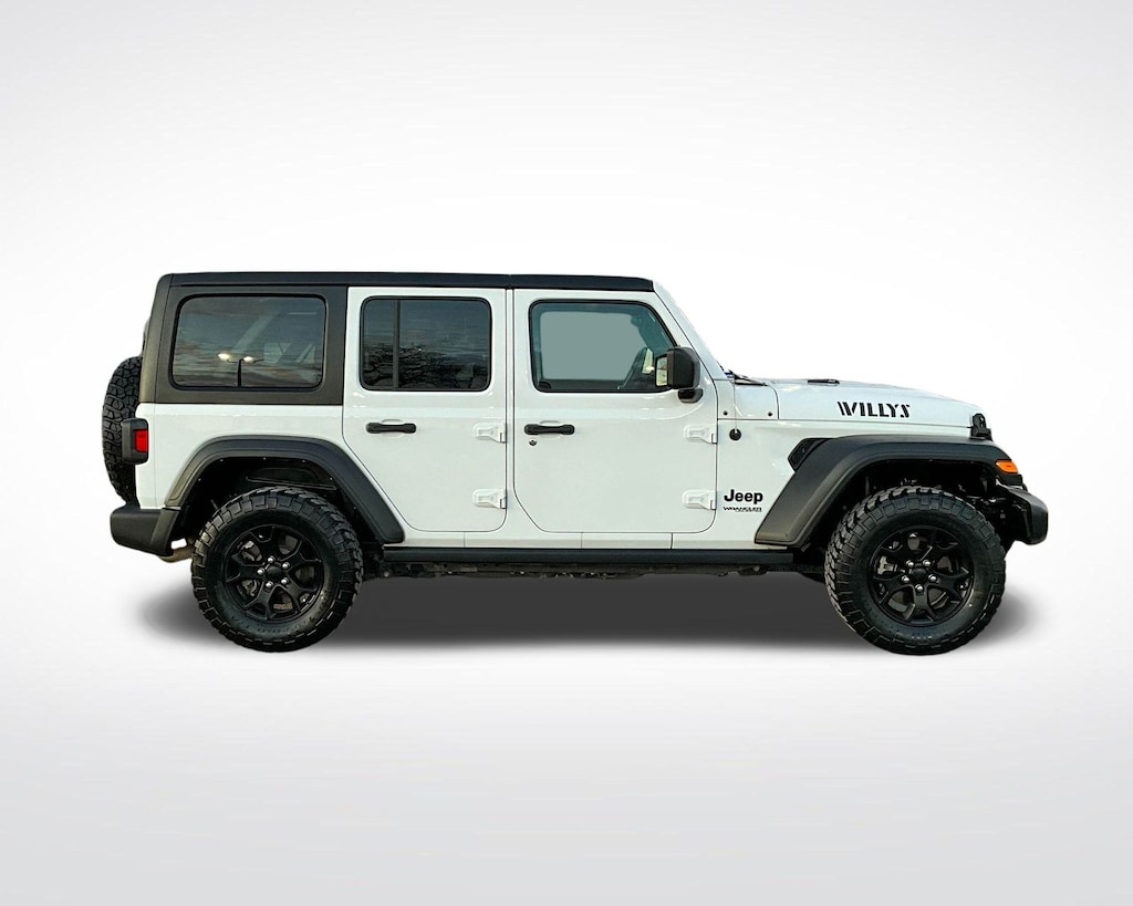 Certified. Bright White Clearcoat 2021 Jeep Wrangler Unlimited Willys 4WD 8-Speed Automatic 3.6L V6 24V VVT 240 Amp Alternator, 3.45 Rear Axle Ratio, 4-Wheel Disc Brakes, 4-Wheel Drive Swing Gate Decal, 7 & 4 Pin Wiring Harness, 700 Amp Maintenance Free Battery, 8 Speakers, ABS brakes, Air Conditioning, AM/FM radio, Anti-Spin Differential Rear Axle, Aux Battery, Auxiliary Switches, Black 3-Piece Hard Top, Black Grille, Black Trail Rated Badge, Brake assist, Class II Receiver Hitch, Cloth Low-Back Bucket Seats, Compass, Deep Tint Sunscreen Windows, Delay-off headlights, Driver door bin, Driver vanity mirror, Dual front impact airbags, Dual front side impact airbags, Electronic Stability Control, For More Info, Call 800-643-2112, Freedom Panel Storage Bag, Front anti-roll bar, Front Bucket Seats, Front Center Armrest w/Storage, Front fog lights, Front reading lights, Integrated roll-over protection, Low tire pressure warning, Matte Black Jeep Badge, Mold In Color Bumper w/Gloss Black, MOPAR All-Weather Floor Mats (DISC), No Soft Top, Non-Lock Fuel Cap w/o Discriminator, Normal Duty Suspension, Occupant sensing airbag, Outside temperature display, ParkView Rear Back-Up Camera, Passenger door bin, Passenger vanity mirror, Power steering, Quick Order Package 25K Willys Sport (DISC), Radio data system, Radio: Uconnect 3 w/5" Display, Rear anti-roll bar, Rear reading lights, Rear Window Defroster, Rear Window Wiper/Washer, SiriusXM Radio Service, SiriusXM Satellite Radio, Speed control, Split folding rear seat, Steering wheel mounted audio controls, Stop-Start Dual Battery System, Tachometer, Telescoping steering wheel, Tilt steering wheel, Traction control, Trailer Tow & HD Electrical Group, Trip computer, Variably intermittent wipers, Wheels: 17" x 7.5" Black Steel Styled, Wheels: 17" x 7.5" Moab Black Aluminum, Willys, Willys Hood Decal, Wrangler Decal.