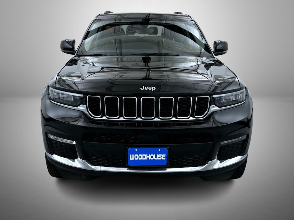 Certified. Diamond Black Crystal Pearlcoat 2022 Jeep Grand Cherokee L Limited 4WD 8-Speed Automatic 3.6L V6 24V VVT FCA US LLC Certified Pre-Owned Certified, 2nd Row 60/40 Bench w/Manual Tip/Slide, 2nd Row Seat Center Armrest/Cupholders, 3 Rear Seat Head Restraints, 3.45 Rear Axle Ratio, 3rd row seats: split-bench, 4-Wheel Disc Brakes, 4G LTE Wi-Fi Hot Spot, 6 Speakers, 7-Passenger Seating, ABS brakes, Active Noise Control System, Air Conditioning, Alloy wheels, AM/FM radio: SiriusXM with 360L, Anti-whiplash front head restraints, Apple CarPlay, Audio memory, Auto High-beam Headlights, Automatic temperature control, Brake assist, Bumpers: body-color, Capri Leather Seats, Center Rear 3-Point Seat Belt, Compass, Connectivity - US/Canada, Delay-off headlights, Disassociated Touchscreen Display, Driver door bin, Driver vanity mirror, Dual front impact airbags, Dual front side impact airbags, Electronic Stability Control, Emergency communication system, For Details, Visit DriveUconnect.com, For More Info, Call 800-643-2112, Four wheel independent suspension, Front anti-roll bar, Front Bucket Seats, Front Center Armrest w/Storage, Front dual zone A/C, Front fog lights, Front reading lights, Fully automatic headlights, Garage door transmitter, Global Telematics Box Module (TBM), Google Android Auto, GPS Antenna Input, Heated door mirrors, Heated front seats, Heated rear seats, Heated steering wheel, Illuminated entry, Integrated Center Stack Radio, Integrated Voice Command w/Bluetooth, Knee airbag, Leather steering wheel, Low tire pressure warning, Manual Fold Seatbacks, Memory seat, Normal Duty Suspension, Occupant sensing airbag, Outside temperature display, Overhead airbag, Overhead console, Panic alarm, ParkView Rear Back-Up Camera, Passenger door bin, Passenger vanity mirror, Power door mirrors, Power driver seat, Power Liftgate, Power passenger seat, Power steering, Power windows, Quick Order Package 22E, Radio data system, Radio: Uconnect 5 w/8.4" Display, Rear air conditioning, Rear anti-roll bar, Rear reading lights, Rear window defroster, Rear window wiper, Reclining 3rd row seat, Remote keyless entry, Security system, SiriusXM Radio Service, SiriusXM Satellite Radio, SiriusXM w/360L, Speed control, Speed-Sensitive Wipers, Split folding rear seat, Spoiler, Steering wheel mounted audio controls, Tachometer, Telescoping steering wheel, Tilt steering wheel, Traction control, Trip computer, Turn signal indicator mirrors, USB Host Flip, Variably intermittent wipers, Voltmeter, Wheels: 18" x 8.0" Fully Painted Aluminum 2.