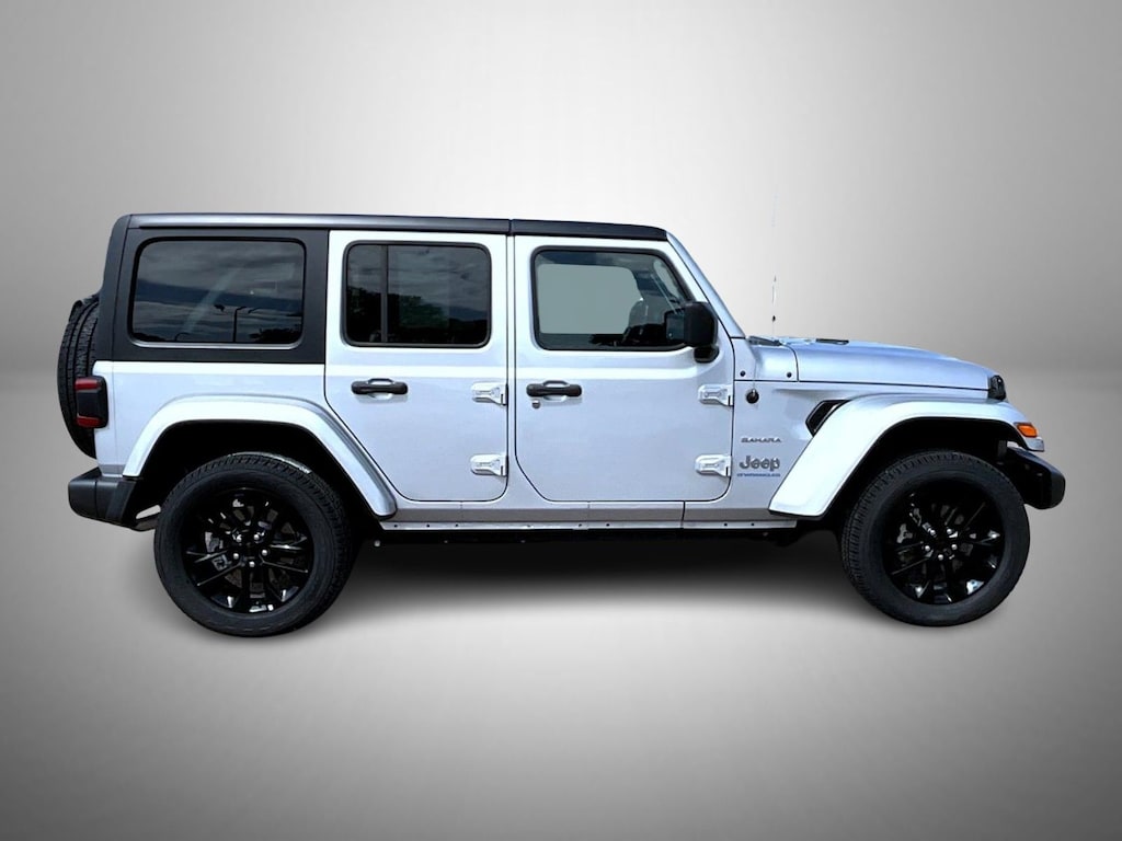 Certified. Silver Zynith Clearcoat 2023 Jeep Wrangler Sahara 4xe 4WD 8-Speed Automatic 2.0L I4 DOHC 3.73 Rear Axle Ratio, 4-Wheel Disc Brakes, 700 Amp Maintenance Free Battery, 9 Speakers, ABS brakes, Air Conditioning, Alloy wheels, AM/FM radio: SiriusXM, Apple CarPlay/Android Auto, Auto-dimming Rear-View mirror, Automatic temperature control, Auxiliary Switches, Black 3-Piece Hard Top, Brake assist, Compass, Delay-off headlights, Driver door bin, Driver vanity mirror, Dual front impact airbags, Dual front side impact airbags, Electronic Stability Control, Emergency communication system: SiriusXM Guardian, Freedom Panel Storage Bag, Front anti-roll bar, Front Bucket Seats, Front Center Armrest w/Storage, Front dual zone A/C, Front fog lights, Front License Plate Bracket, Front reading lights, Fully automatic headlights, Garage door transmitter, Heated door mirrors, Illuminated entry, Integrated roll-over protection, Leather Shift Knob, Low tire pressure warning, Navigation System, Occupant sensing airbag, Outside temperature display, Panic alarm, ParkView Rear Back-Up Camera, Passenger door bin, Passenger vanity mirror, Power door mirrors, Power steering, Power windows, Premium McKinley Trimmed Seats, Quick Order Package 29P Sahara, Radio data system, Radio: Uconnect 4C Nav w/8.4" Display, Rear anti-roll bar, Rear reading lights, Rear seat center armrest, Rear Window Defroster, Rear Window Wiper/Washer, Remote keyless entry, Security system, Speed control, Split folding rear seat, Sport Suspension, Steering wheel mounted audio controls, Tachometer, Telescoping steering wheel, Tilt steering wheel, Traction control, Trailer Tow & Aux Switch Group, Trip computer, Variably intermittent wipers, Voltmeter, Wheels: 20" x 8" Fully Painted Aluminum.