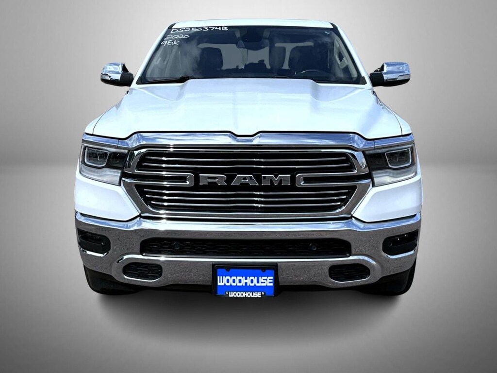Certified. Bright White Clearcoat 2020 Ram 1500 Laramie 4WD 8-Speed Automatic HEMI 5.7L V8 Multi Displacement VVT #1 Seat Foam Cushion, 10 Speakers, 3 Rear Seat Head Restraints, 3.21 Rear Axle Ratio, 4 Way Front Headrests, 4-Wheel Disc Brakes, 48V Belt Starter Generator, 8.4" Touchscreen Display, ABS brakes, Adjustable pedals, Air Conditioning, Alloy wheels, AM/FM radio: SiriusXM, Apple CarPlay, Apple CarPlay/Android Auto, Audio memory, Auto-dimming door mirrors, Auto-dimming Rear-View mirror, Automatic temperature control, Brake assist, Bumpers: chrome, Compass, Delay-off headlights, Dome Dual LED Reading Lamp, Driver door bin, Driver Seat Memory, Driver vanity mirror, Dual front impact airbags, Dual front side impact airbags, Dual-Pane Panoramic Sunroof, Electronic Stability Control, Front anti-roll bar, Front Center Armrest w/Storage, Front dual zone A/C, Front fog lights, Front reading lights, Front Seat Back Map Pockets, Front wheel independent suspension, Fully automatic headlights, Garage door transmitter, Google Android Auto, GPS Antenna Input, Heated door mirrors, Heated Front Seats, Heated front seats, Heated Steering Wheel, Heated steering wheel, Illuminated entry, Integrated Center Stack Radio, Laramie Level 1 Equipment Group, Leather steering wheel, Leather Trim 40/20/40 Bench Seat, LED Dome/Reading Lamp, Low tire pressure warning, Memory seat, Occupant sensing airbag, Outside temperature display, Overhead airbag, Overhead console, Panic alarm, ParkSense Front/Rear Park Assist w/Stop (DISC), ParkView Rear Back-Up Camera, Passenger door bin, Passenger vanity mirror, Pedal memory, Power 4-Way Driver Lumbar Adjust, Power 4-Way Passenger Lumbar Adjust, Power 8-Way Driver & Passenger Seats, Power door mirrors, Power driver seat, Power passenger seat, Power steering, Power windows, Quick Order Package 25H Laramie, Radio data system, Radio: Uconnect 4 w/8.4" Display, Rear anti-roll bar, Rear seat center armrest, Rear step bumper, Rear Wheelhouse Liners, Rear window defroster, Remote keyless entry, Security system, SiriusXM Satellite Radio, Speed control, Split folding rear seat, Steering wheel mounted audio controls, Tachometer, Telescoping steering wheel, Tilt steering wheel, Traction control, Trip computer, Turn signal indicator mirrors, Variably intermittent wipers, Ventilated Front Seats, Ventilated front seats, Voltmeter, Wheels: 18" x 8" Aluminum Base Painted, Wheels: 20" x 9" Premium Paint/Polished.