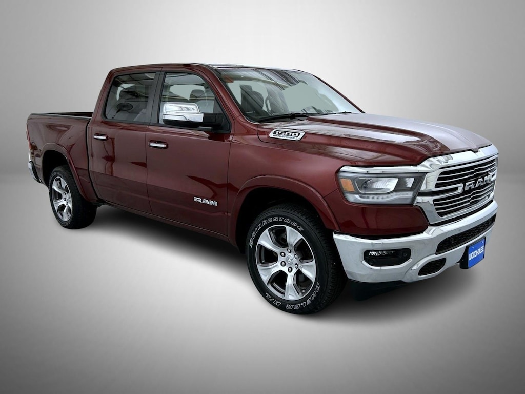 Certified. Delmonico Red Pearlcoat 2021 Ram 1500 Laramie 4WD 8-Speed Automatic HEMI 5.7L V8 Multi Displacement VVT FCA US LLC Certified Pre-Owned Certified, #1 Seat Foam Cushion, 1-Yr SiriusXM Guardian Trial, 10 Speakers, 3 Rear Seat Head Restraints, 3.21 Rear Axle Ratio, 33 Gallon Fuel Tank, 4 Way Front Headrests, 4-Wheel Disc Brakes, 48V Belt Starter Generator, 4G LTE Wi-Fi Hot Spot, 5-Year SiriusXM Traffic Service, 5-Year SiriusXM Travel Link Service, 8.4" Touchscreen Display, ABS brakes, Adjustable pedals, Air Conditioning, Alloy wheels, AM/FM radio: SiriusXM, Anti-Spin Differential Rear Axle, Apple CarPlay, Apple CarPlay/Android Auto, Audio memory, Auto High Beam Headlamp Control, Auto-dimming door mirrors, Auto-dimming Rear-View mirror, Automatic temperature control, Brake assist, Bumpers: chrome, Chrome Exterior Mirrors, Compass, Delay-off headlights, Disassociated Touchscreen Display, Driver door bin, Driver Seat Memory, Driver vanity mirror, Dual front impact airbags, Dual front side impact airbags, Electronic Stability Control, Foam Bottle Insert (Door Trim Panel), For Details, Visit DriveUconnect.com, For More Info, Call 800-643-2112, Front anti-roll bar, Front Center Armrest w/Storage, Front dual zone A/C, Front fog lights, Front License Plate Bracket, Front reading lights, Front Seat Back Map Pockets, Front wheel independent suspension, Fully automatic headlights, Garage door transmitter, Google Android Auto, GPS Antenna Input, GPS Navigation, HD Radio, Heated door mirrors, Heated Front Seats, Heated front seats, Heated Second Row Seats, Heated Steering Wheel, Heated steering wheel, Illuminated entry, Integrated Center Stack Radio, Integrated Voice Command w/Bluetooth, Laramie Level B Equipment Group, Leather steering wheel, Leather Trim 40/20/40 Bench Seat, Low tire pressure warning, Memory seat, MOPAR Front & Rear Rubber Floor Mats, Occupant sensing airbag, Outside temperature display, Overhead airbag, Overhead console, Panic alarm, ParkSense Front/Rear Park Assist w/Stop, ParkView Rear Back-Up Camera, Passenger door bin, Passenger vanity mirror, Pedal memory, Power 4-Way Driver Lumbar Adjust, Power 4-Way Passenger Lumbar Adjust, Power 8-Way Driver & Passenger Seats, Power door mirrors, Power driver seat, Power passenger seat, Power steering, Power windows, Quick Order Package 27H Laramie, Radio data system, Radio: Uconnect 4 w/8.4" Display, Radio: Uconnect 4C Nav w/8.4" Display, Rain Sensitive Windshield Wipers, Rear 60/40 Folding Split Recline Seat, Rear anti-roll bar, Rear seat center armrest, Rear step bumper, Rear Underseat Compartment Storage, Rear Wheelhouse Liners, Rear window defroster, Remote keyless entry, Remote Tailgate Release, Security system, SiriusXM Radio Service, SiriusXM Satellite Radio, SiriusXM Traffic Plus, SiriusXM Travel Link, Speed control, Split folding rear seat, Steering wheel mounted audio controls, Tachometer, Tailgate Ajar Warning Lamp, Telescoping steering wheel, Tilt steering wheel, Traction control, Trip computer, Turn signal indicator mirrors, USB Host Flip, Variably intermittent wipers, Ventilated Front Seats, Ventilated front seats, Voltmeter, Wheels: 18" x 8" Aluminum Base Painted, Wheels: 20" x 9" Premium Paint/Polished.