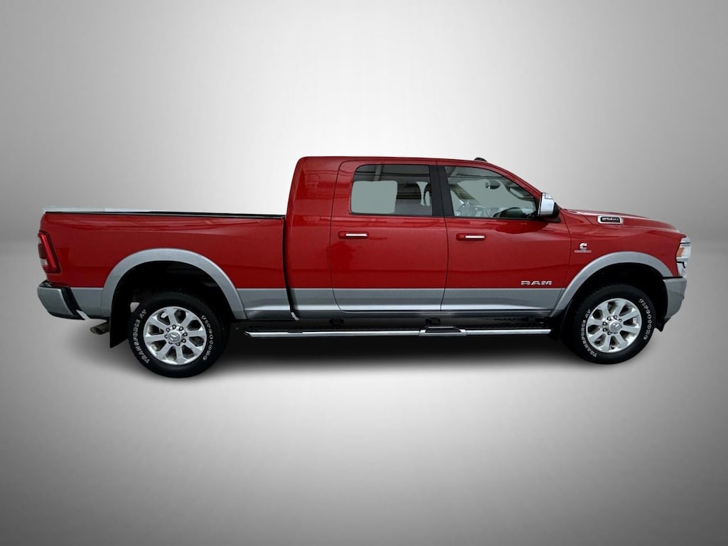 Certified. Flame Red Clearcoat 2022 Ram 2500 Laramie 4WD 6-Speed Automatic Cummins 6.7L I6 Turbodiesel FCA US LLC Certified Pre-Owned Certified, #1 Seat Foam Cushion, 10 Speakers, 115V Auxiliary Rear Power Outlet, 17 Speaker harman kardon Premium Sound, 2 Way Rear Headrest Seat, 20" x 8.0" Polished Aluminum Wheels, 220 Amp Alternator, 3.73 Axle Ratio, 4 Way Front Headrests, 4-Wheel Disc Brakes, 4G LTE Wi-Fi Hot Spot, 5th Wheel/Gooseneck Towing Prep Group, 8.4" Touchscreen Display, ABS brakes, Active Noise Control System, Adjustable pedals, Air Conditioning, Alexa Built-In, All R1 High Radios, All Radio Equipped Vehicles, Alloy wheels, AM/FM radio: SiriusXM, Apple CarPlay, Apple CarPlay/Android Auto, Auto High Beam Headlamp Control, Auto-dimming Rear-View mirror, Automatic temperature control, Bed Utility Group, Black Exterior Mirrors, Blind Spot & Cross Path Detection, Brake assist, Bumpers: chrome, Center Hub, Center Stop Lamp w/Cargo View Camera, Chrome Exterior Mirrors, Chrome Flat Wheel-to-Wheel Side Steps, Cold Weather Group, Compass, Connected Travel & Traffic Services, Connectivity - US/Canada, Delay-off headlights, Disassociated Touchscreen Display, Driver door bin, Driver vanity mirror, Dual front impact airbags, Dual front side impact airbags, Electronic Stability Control, Electronically Controlled Throttle, Engine Block Heater, Exterior Mirrors Courtesy Lamps, Exterior Mirrors w/Heating Element, Exterior Mirrors w/Memory, Exterior Mirrors w/Supplemental Signals, Foam Bottle Insert (Door Trim Panel), For Details, Visit DriveUconnect.com, For More Info, Call 800-643-2112, Front anti-roll bar, Front Center Armrest w/Storage, Front dual zone A/C, Front fog lights, Front License Plate Bracket, Front reading lights, Front Seat Back Map Pockets, Fully automatic headlights, Garage door transmitter, Global Telematics Box Module (TBM), Google Android Auto, GPS Antenna Input, GPS Navigation, HD Radio, Heated door mirrors, Heated Front Seats, Heated front seats, Heated Second Row Seats, Heated Steering Wheel, Heated steering wheel, High Back Seats, Illuminated entry, Integrated Center Stack Radio, Integrated Voice Command w/Bluetooth, Laramie Level B Equipment Group (DISC), Leather steering wheel, Leather Trim 40/20/40 Bench Seat, LED Bed Lighting, Low tire pressure warning, Manufacturer's Statement of Origin, Mirror Running Lights, Mirror-Mounted Aux Reverse Lamps, MOPAR Deployable Bed Step, MOPAR Spray In Bedliner, MOPAR Winter Front Grille Cover, Occupant sensing airbag, Off-Road Information Pages, Outside temperature display, Overhead airbag, Overhead console, Panic alarm, ParkView Rear Back-Up Camera, Passenger door bin, Passenger vanity mirror, Power 2-Way Driver Lumbar Adjust, Power 2-Way Passenger Lumbar Adjust, Power Adjust 8-Way Driver Seat, Power Adjust 8-Way Front Passenger Seat, Power Adjustable Convex Aux Mirrors, Power Adjustable Pedals w/Memory, Power door mirrors, Power driver seat, Power passenger seat, Power steering, Power windows, Power-Folding Mirrors, Protection Group, Pwr Convenience Chrome Tow Mirrors w/Spotter & Memory, Quick Order Package 2HH Laramie, Radio data system, Radio: Uconnect 5 Nav w/8.4" Display, Radio: Uconnect 5 w/8.4" Display, Radio/Driver Seat/Mirrors/Pedals Memory, Rain Sensitive Windshield Wipers, Rear 60/40 Folding Seat, Rear anti-roll bar, Rear reading lights, Rear seat center armrest, Rear step bumper, Rear window defroster, Remote keyless entry, Remote Tailgate Release, Security system, Selectable Tire Fill Alert, SiriusXM Radio Service, SiriusXM w/360L, Speed control, Split folding rear seat, Steering wheel mounted audio controls, Tachometer, Tilt steering wheel, Tip Start, Tow Hooks, Traction control, Trailer Tow Mirrors, Trip computer, Turn signal indicator mirrors, Variably intermittent wipers, Vendor Painted Cargo Box, Vendor Painted Cargo Box Tracking, Voltmeter, Wheels: 18" x 8.0" Polished Aluminum.