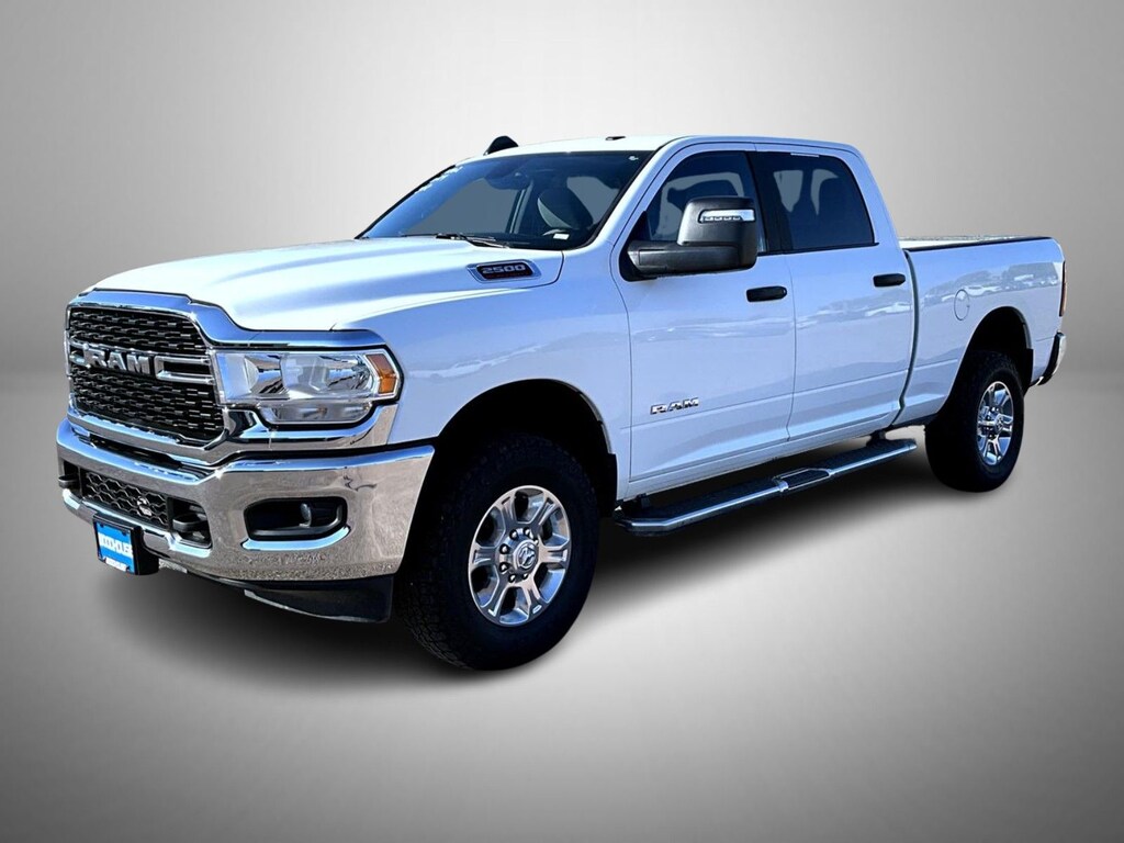 Certified. Bright White Clearcoat 2024 Ram 2500 Big Horn 4WD 8-Speed Automatic 6.4L V8 2 Way Rear Headrest Seat, 2nd Row In Floor Storage Bins, 3.73 Axle Ratio, 4 Way Front Headrests, 4-Wheel Disc Brakes, 40/20/40 Split Bench Seat, 4G LTE Wi-Fi Hot Spot, 6 Speakers, 8.4" Touchscreen Display, ABS brakes, Active Noise Control System, Air Conditioning, Apple CarPlay, Auto Power-Folding Mirrors, Big Horn IP Badge, Black Exterior Mirrors, Bluetooth Handsfree Phone & Audio, Brake assist, Bumpers: chrome, Center Hub, Center Stack Storage Drawer, Chrome Flat Cab-Length Side Steps, Cloth 40/20/40 Bench Seat, Compass, Connectivity - US/Canada, Delay-off headlights, Driver door bin, Dual front impact airbags, Dual front side impact airbags, Dual Glove Boxes, Electronic Stability Control, Electronically Controlled Throttle, Emergency communication system: SiriusXM Guardian, Exterior Mirrors Courtesy Lamps, Exterior Mirrors w/Heating Element, Exterior Mirrors w/Supplemental Signals, Foam Bottle Insert (Door Trim Panel), Footwell Courtesy Lamp, For Details, Visit DriveUconnect.com, For More Info, Call 800-643-2112, Forward & Reverse Utility Lights, Front anti-roll bar, Front Armrest w/Cupholders, Front Center Armrest w/Storage, Front Center Seat Cushion Storage, Front Fog Lamps, Front License Plate Bracket, Front reading lights, Front Seat Back Map Pockets, Fully automatic headlights, Global Telematics Box Module (TBM), Glove Box Lamp, Google Android Auto, GPS Antenna Input, Heated door mirrors, Illuminated entry, Integrated Center Stack Radio, Integrated Voice Command w/Bluetooth, Leather Wrapped Steering Wheel, Level 1 Equipment Group, Locking Lower Glove Box, Low tire pressure warning, Manual Adjust 4-Way Driver Seat, Manual Adjust 4-Way Front Passenger Seat, Manufacturer's Statement of Origin, Mirror Running Lights, Occupant sensing airbag, Outside temperature display, Overhead airbag, Overhead console, Panic alarm, ParkView Rear Back-Up Camera, Passenger door bin, Passenger vanity mirror, Power 2-Way Driver Lumbar Adjust, Power Adjust 8-Way Driver Seat, Power Adjust Mirrors, Power Adjustable Convex Aux Mirrors, Power door mirrors, Power Heated Fold Telescope Mirrors, Power steering, Power Telescoping Mirrors, Power windows, Premium Cloth 40/20/40 Bench Seat (DISC), Quick Order Package 2GZ Big Horn, Radio data system, Radio: Uconnect 3 w/5" Display, Radio: Uconnect 5 W w/8.4" Display, Rear 60/40 Folding Seat, Rear anti-roll bar, Rear Dome w/On/Off Switch Lamp, Rear Folding Seat, Rear seat center armrest, Rear step bumper, Remote keyless entry, Remote USB Port - Charge Only, Selectable Tire Fill Alert, SiriusXM Radio Service, SiriusXM Satellite Radio, Speed control, Steering Wheel Mounted Audio Controls, Storage Tray, Tachometer, Tilt steering wheel, Tip Start, Tow Hooks, Traction control, Trip computer, Turn signal indicator mirrors, Variably intermittent wipers, Voltmeter, Wheels: 18" x 8.0" Polished Aluminum, Wheels: 18" x 8.0" Steel Chrome Clad.