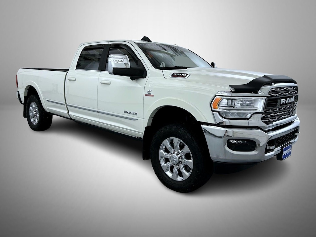 Certified. Pearl White 2024 Ram 3500 Limited 4WD Aisin 6-Speed Automatic 6.7L I6 FCA US LLC Certified Pre-Owned Certified, 10 Speakers, 12" Touchscreen Display, 17 Speaker harman/kardon Premium Sound, 220 Amp Alternator, 3.73 Axle Ratio, 4-Wheel Disc Brakes, 4G LTE Wi-Fi Hot Spot, 50 Gallon Fuel Tank, 8.4" Touchscreen Display, ABS brakes, Active Noise Control System, Adaptive Cruise Control w/Stop, Adaptive Steering System, Adjustable pedals, Air Conditioning, Alexa Built-In, Alloy wheels, AM/FM radio: SiriusXM with 360L, Apple CarPlay, Apple CarPlay/Android Auto, Audio memory, Auto High-beam Headlights, Auto Level Rear Air Suspension, Auto-dimming door mirrors, Auto-dimming Rear-View mirror, Automatic temperature control, Bodyside moldings, Brake assist, Bright Front Bumper, Bright Rear Bumper, Bumpers: body-color, Center Hub, Chrome Bumper Package, Chrome Tow Hooks, Compass, Connected Travel & Traffic Services, Connectivity - US/Canada, CTR Stop Lamp w/Cargo View Camera, Delay-off headlights, Digital Rearview Mirror, Disassociated Touchscreen Display, Driver door bin, Driver vanity mirror, Dual front impact airbags, Dual front side impact airbags, Electronic Stability Control, Electronically Controlled Throttle, For Details Visit DriveUconnect.com, For More Info, Call 800-643-2112, Front anti-roll bar, Front Bucket Seats, Front Center Armrest w/Storage, Front dual zone A/C, Front fog lights, Front License Plate Bracket, Front reading lights, Full Speed Forward Collision Warning Plus, Fully automatic headlights, Garage door transmitter, Genuine wood console insert, Genuine wood dashboard insert, Genuine wood door panel insert, Global Telematics Box Module (TBM), Google Android Auto, GPS Antenna Input, GPS Navigation, HD Radio, Heated door mirrors, Heated front seats, Heated rear seats, Heated steering wheel, Illuminated entry, Instrument Cluster Theme 8, Integrated Center Stack Radio, Integrated Voice Command w/Bluetooth, Lane Keep Assist, Leather steering wheel, LED Bed Lighting, Limited Leather Bucket Seats, Limited Level 1 Equipment Group, Low tire pressure warning, Luxury Door Trim Panel (CTH), Memory seat, MOPAR Front & Rear Rubber Floor Mats, MOPAR Spray In Bedliner, Navigation System, Occupant sensing airbag, Off-Road Information Pages, Outside temperature display, Overhead airbag, Overhead console, Panic alarm, ParkView Rear Back-Up Camera, Passenger door bin, Passenger vanity mirror, Pedal memory, Power Deployable Running Boards, Power door mirrors, Power driver seat, Power passenger seat, Power steering, Power Sunroof, Power windows, Quick Order Package 21M Limited, Radio data system, Radio: Uconnect 5 Nav w/12.0" Display, Radio: Uconnect 5 Nav w/8.4" Display, Rain sensing wipers, Ramcharger Wireless Charging Pad, Rear reading lights, Rear seat center armrest, Rear step bumper, Rear window defroster, Remote keyless entry, Security system, Selectable Tire Fill Alert, SiriusXM Radio Service, SiriusXM w/360L, Speed control, Split folding rear seat, Steering wheel mounted audio controls, Surround View Camera System, Tachometer, Tilt steering wheel, Tip Start, Traction control, Trailer Reverse Guidance, Trailer Tow Pages, Trip computer, Turn signal indicator mirrors, Variably intermittent wipers, Ventilated front seats, Voltmeter, Wheels: 20" x 8.0" Diamond Cut Face Aluminum, Wheels: 20" x 8.0" Satin Carbon w/Chrome Insert.
