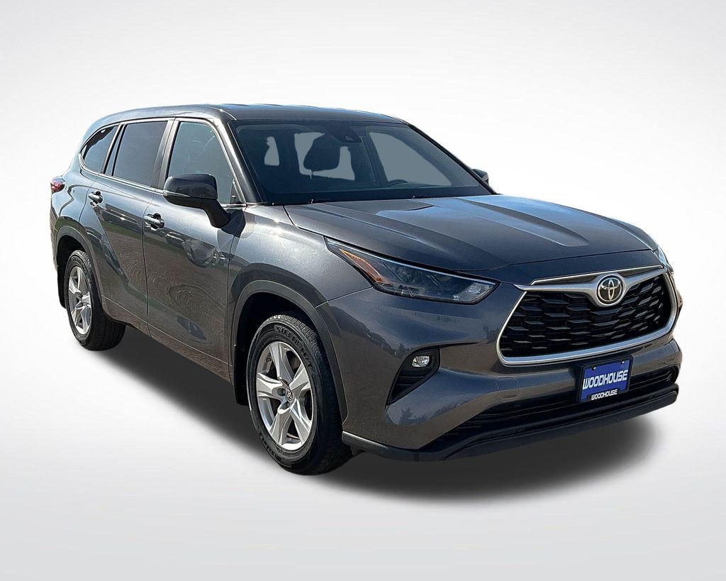 Certified. Gray 2023 Toyota Highlander LE FWD 2.4L I4 PDI Turbocharged DOHC 16V LEV3-SULEV30 265hp