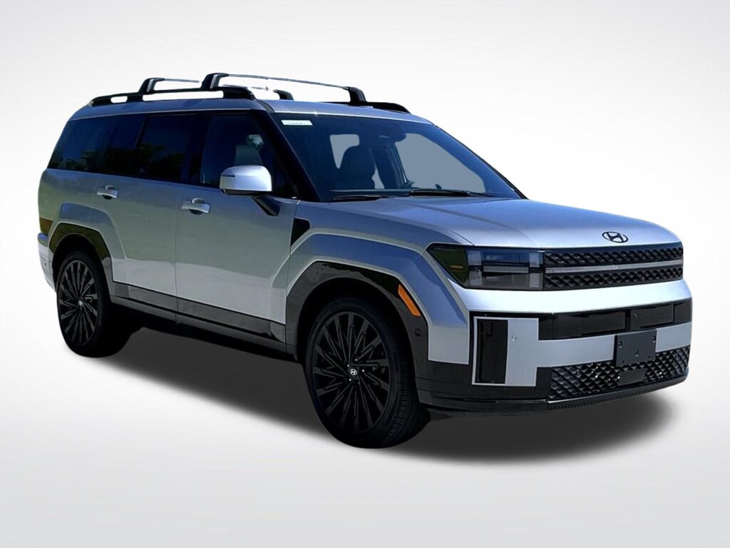 AWD, Black Leather, 12 Speakers, 3rd row seats: bench, 4-Wheel Disc Brakes, ABS brakes, Air Conditioning, Alloy wheels, AM/FM radio: SiriusXM, Apple CarPlay & Android Auto, Auto High-beam Headlights, Auto-dimming Rear-View mirror, Automatic temperature control, Brake assist, Bumpers: body-color, Cargo Net, Carpeted Floor Mats, Cross Rails, Delay-off headlights, Driver door bin, Driver vanity mirror, Dual front impact airbags, Dual front side impact airbags, Electronic Stability Control, Emergency communication system, Exterior Parking Camera Rear, First Aid Kit, Four wheel independent suspension, Front anti-roll bar, Front Bucket Seats, Front Center Armrest, Front dual zone A/C, Front reading lights, Fully automatic headlights, Garage door transmitter: HomeLink, Heads-Up Display, Heated & Ventilated Front Bucket Seats, Heated door mirrors, Heated front seats, Heated rear seats, Heated steering wheel, Illuminated entry, Knee airbag, Leather steering wheel, Low tire pressure warning, Memory seat, Navigation System, Occupant sensing airbag, Option Group 01, Outside temperature display, Overhead airbag, Overhead console, Panic alarm, Passenger door bin, Passenger vanity mirror, Power door mirrors, Power driver seat, Power Liftgate, Power moonroof, Power passenger seat, Power steering, Power windows, Premium Nappa Leather Seat Trim, Radio: AM/FM/HD Bose Premium Audio System, Rain sensing wipers, Rear anti-roll bar, Rear side impact airbag, Rear window defroster, Rear window wiper, Remote keyless entry, Roadside Assistance Kit, Security system, Speed control, Speed-sensing steering, Split folding rear seat, Spoiler, Steering wheel mounted audio controls, Tachometer, Telescoping steering wheel, Tilt steering wheel, Traction control, Trip computer, Turn signal indicator mirrors, Variably intermittent wipers, Ventilated front seats, Wheels: 21" x 8.5J Unique Dark Finish Alloy, AWD, Black Leather. Price includes: $4500 - Hyundai HMF Dealer Choice : $4500 discount and 5.99% APR for 24 months. $44.32 per $1000 financed. Available to well qualified buyers who finance through Hyundai Motor Finance. H704. Exp. 11/03/2025