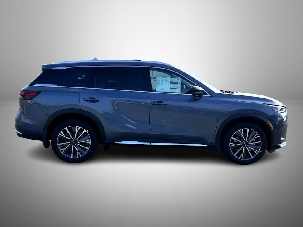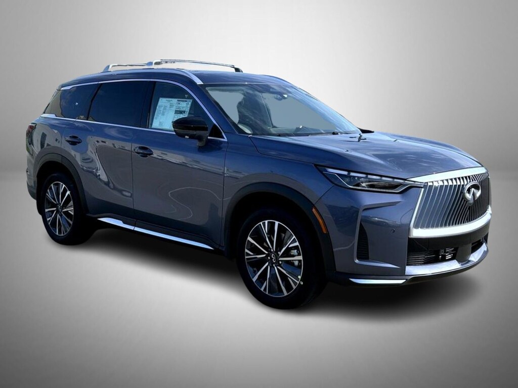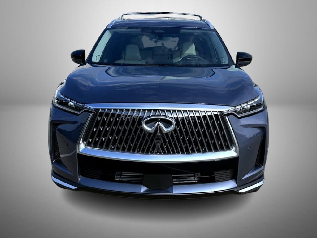 Moonbow Blue 2026 INFINITI QX60 AWD 9-Speed Automatic Intercooled Turbo Premium Unleaded I-4 2.0 L/122 17 Speakers, 3rd row seats: bench, 4-Wheel Disc Brakes, ABS brakes, Air Conditioning, Alloy wheels, AM/FM radio: SiriusXM with 360L, Anti-whiplash front head restraints, Apple CarPlay/Android Auto, Auto High-beam Headlights, Auto tilt-away steering wheel, Auto-dimming door mirrors, Auto-dimming Rear-View mirror, Automatic temperature control, Bose Performance Series 17-Speaker Sound System, Brake assist, Bumpers: body-color, Cargo Package, Clear Rear Bumper Film, Climate Controlled Front Bucket Seats, Delay-off headlights, Driver door bin, Driver vanity mirror, Dual front impact airbags, Dual front side impact airbags, Electronic Stability Control, Emergency communication system: INFINITI InTouch, Four wheel independent suspension, Front anti-roll bar, Front Bucket Seats, Front Center Armrest, Front dual zone A/C, Front reading lights, Fully automatic headlights, Garage door transmitter: HomeLink, Heated door mirrors, Heated front seats, Heated rear seats, Heated steering wheel, Illuminated entry, Knee airbag, Leather Shift Knob, Leather steering wheel, Low tire pressure warning, Memory seat, Navigation system: Google Built-in, Occupant sensing airbag, Outside temperature display, Overhead airbag, Overhead console, Panic alarm, Passenger door bin, Passenger vanity mirror, Power door mirrors, Power driver seat, Power Liftgate, Power moonroof: Panoramic, Power passenger seat, Power steering, Power windows, Premium Paint, Radio data system, Radio: Klipsch Premium Audio System, Rain sensing wipers, Rear air conditioning, Rear anti-roll bar, Rear reading lights, Rear seat center armrest, Rear side impact airbag, Rear window defroster, Rear window wiper, Reclining 3rd row seat, Remote keyless entry, Security system, Silver Roof Rail Crossbars, Speed control, Speed-sensing steering, Speed-Sensitive Wipers, Splash Guards (B92), Split folding rear seat, Spoiler, Steering wheel memory, Steering wheel mounted audio controls, Tachometer, TailorFit-Appointed Seating Surfaces, Telescoping steering wheel, Tilt steering wheel, Traction control, Trip computer, Turn signal indicator mirrors, Variably intermittent wipers, Ventilated front seats, Wheels: 20" x 8J Machined Aluminum Alloy.