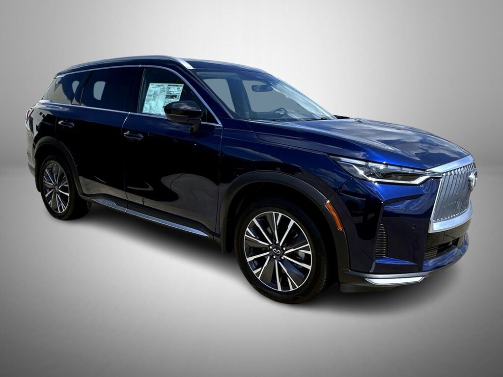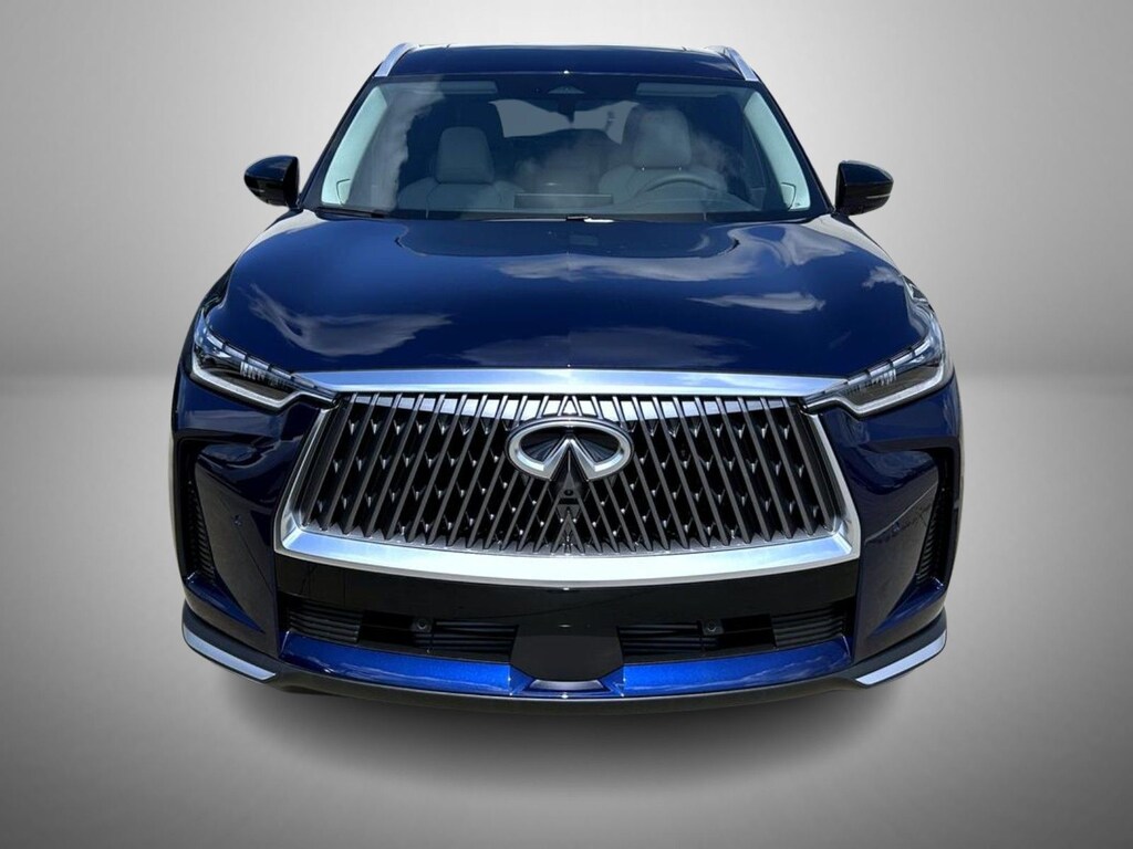 Grand Blue 2026 INFINITI QX60 AWD 9-Speed Automatic Intercooled Turbo Premium Unleaded I-4 2.0 L/122 17 Speakers, 3rd row seats: bench, 4-Wheel Disc Brakes, ABS brakes, Air Conditioning, Alloy wheels, AM/FM radio: SiriusXM with 360L, Anti-whiplash front head restraints, Apple CarPlay/Android Auto, Auto High-beam Headlights, Auto tilt-away steering wheel, Auto-dimming door mirrors, Auto-dimming Rear-View mirror, Automatic temperature control, Bose Performance Series 17-Speaker Sound System, Brake assist, Bumpers: body-color, Cargo Package, Clear Rear Bumper Film, Climate Controlled Front Bucket Seats, Delay-off headlights, Driver door bin, Driver vanity mirror, Dual front impact airbags, Dual front side impact airbags, Electronic Stability Control, Emergency communication system: INFINITI InTouch, Four wheel independent suspension, Front anti-roll bar, Front Bucket Seats, Front Center Armrest, Front dual zone A/C, Front reading lights, Fully automatic headlights, Garage door transmitter: HomeLink, Heated door mirrors, Heated front seats, Heated rear seats, Heated steering wheel, Illuminated entry, Knee airbag, Leather Shift Knob, Leather steering wheel, Low tire pressure warning, Memory seat, Navigation system: Google Built-in, Occupant sensing airbag, Outside temperature display, Overhead airbag, Overhead console, Panic alarm, Passenger door bin, Passenger vanity mirror, Power door mirrors, Power driver seat, Power Liftgate, Power moonroof: Panoramic, Power passenger seat, Power steering, Power windows, Premium Paint, Radio data system, Radio: Klipsch Premium Audio System, Rain sensing wipers, Rear air conditioning, Rear anti-roll bar, Rear reading lights, Rear seat center armrest, Rear side impact airbag, Rear window defroster, Rear window wiper, Reclining 3rd row seat, Remote keyless entry, Security system, Silver Roof Rail Crossbars, Speed control, Speed-sensing steering, Speed-Sensitive Wipers, Splash Guards (B92), Split folding rear seat, Spoiler, Steering wheel memory, Steering wheel mounted audio controls, Tachometer, TailorFit-Appointed Seating Surfaces, Telescoping steering wheel, Tilt steering wheel, Traction control, Trip computer, Turn signal indicator mirrors, Variably intermittent wipers, Ventilated front seats, Wheels: 20" x 8J Machined Aluminum Alloy.