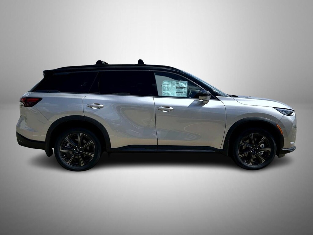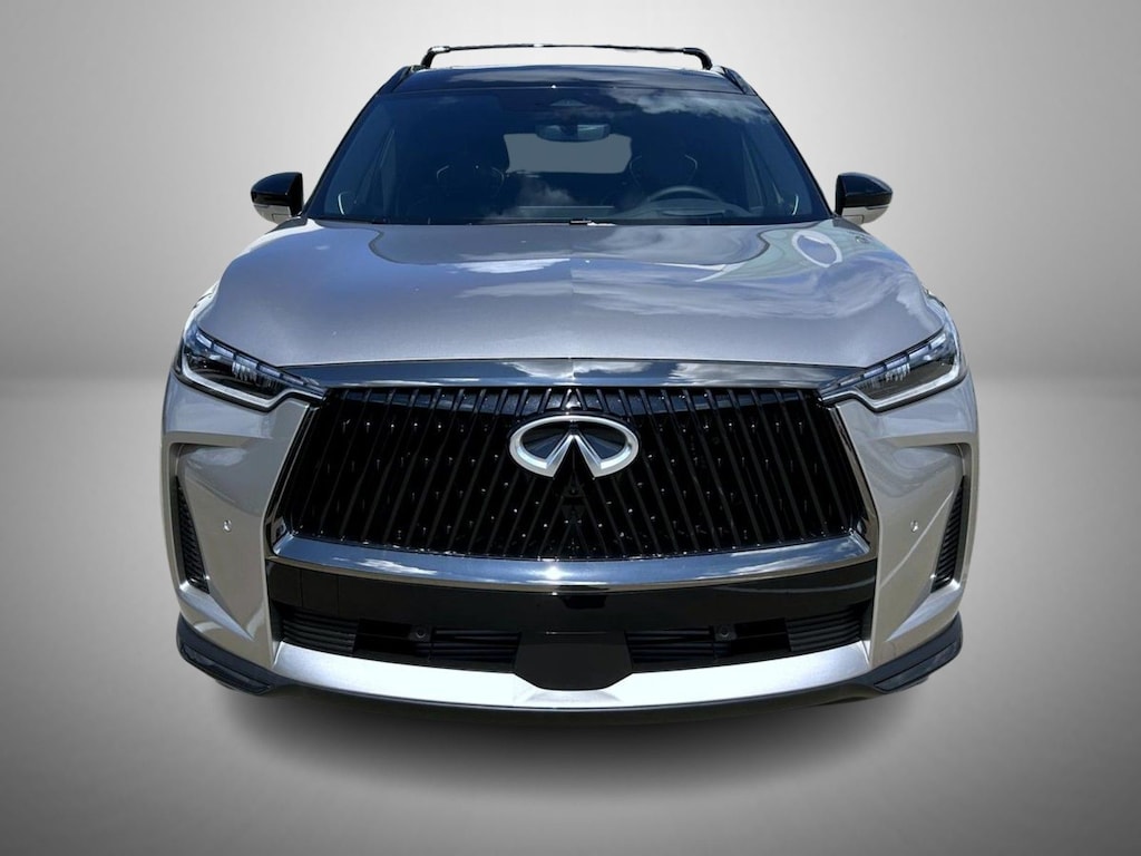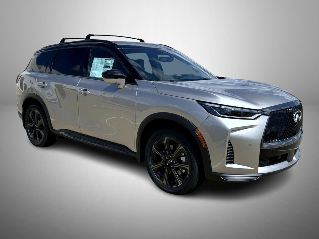 Warm Titanium/Black Obsidian 2026 INFINITI QX60 AWD 9-Speed Automatic Intercooled Turbo Premium Unleaded I-4 2.0 L/122 2-Tone Premium Paint, 20 Speakers, 3rd row seats: bench, 4-Wheel Disc Brakes, ABS brakes, Air Conditioning, Alloy wheels, AM/FM radio: SiriusXM with 360L, Anti-whiplash front head restraints, Apple CarPlay/Android Auto, Auto High-beam Headlights, Auto tilt-away steering wheel, Auto-dimming door mirrors, Auto-dimming Rear-View mirror, Automatic temperature control, Black Rear Bumper Film, Black Roof Rail Crossbars, Bose Performance Series 17-Speaker Sound System, Brake assist, Bumpers: body-color, Cargo Blocks, Cargo Mat, Cargo Net, Climate Controlled Massaging Front Bucket Seats, Dark Cargo Package, Delay-off headlights, Driver door bin, Driver vanity mirror, Dual front impact airbags, Dual front side impact airbags, Electronic Stability Control, Emergency communication system: INFINITI InTouch, Four wheel independent suspension, Front anti-roll bar, Front Bucket Seats, Front Center Armrest, Front dual zone A/C, Front reading lights, Fully automatic headlights, Garage door transmitter: HomeLink, Genuine wood door panel insert, Heads-Up Display, Heated door mirrors, Heated front seats, Heated rear seats, Heated steering wheel, Illuminated entry, INFINITI Radiant Dark Illum Cargo Scuff Plates, Knee airbag, Leather Shift Knob, Leather steering wheel, Low tire pressure warning, Medic Kit, Memory seat, Navigation system: Google Built-in, Occupant sensing airbag, Outside temperature display, Overhead airbag, Overhead console, Panic alarm, Panoramic Illuminated Headliner, Passenger door bin, Passenger vanity mirror, Power door mirrors, Power driver seat, Power Liftgate, Power moonroof: Panoramic, Power passenger seat, Power steering, Power windows, Radio data system, Radio: Klipsch Reference Premiere Audio System, Rain sensing wipers, Rear air conditioning, Rear anti-roll bar, Rear reading lights, Rear side impact airbag, Rear window defroster, Rear window wiper, Reclining 3rd row seat, Remote keyless entry, Security system, Semi Aniline Leather-Appointed Seating Surfaces, Speed control, Speed-sensing steering, Speed-Sensitive Wipers, Splash Guards (B92), Split folding rear seat, Spoiler, Steering wheel memory, Steering wheel mounted audio controls, Tachometer, Telescoping steering wheel, Tilt steering wheel, Traction control, Trip computer, Turn signal indicator mirrors, Variably intermittent wipers, Ventilated front seats, Wheels: 20" x 8J Luxury Machined Aluminum Alloy.