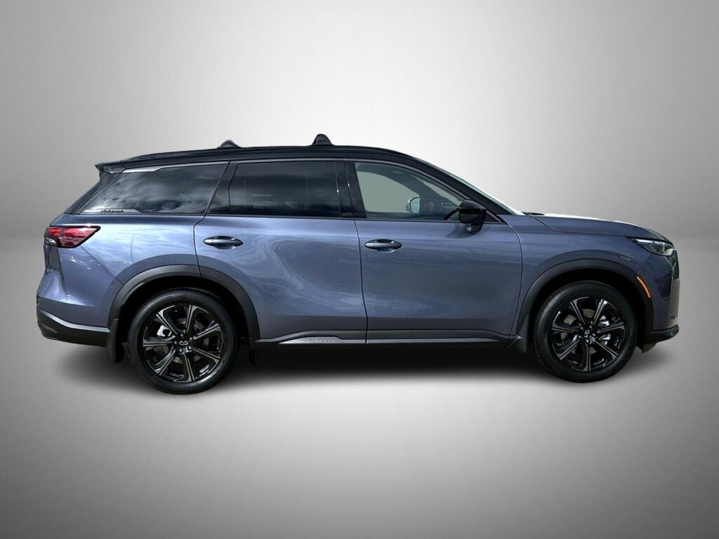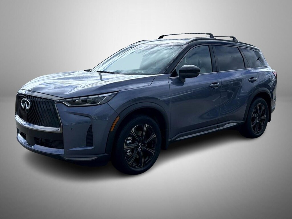 Moonbow Blue/Black Obsidian 2026 INFINITI QX60 AWD 9-Speed Automatic Intercooled Turbo Premium Unleaded I-4 2.0 L/122 2-Tone Premium Paint, 20 Speakers, 3rd row seats: bench, 4-Wheel Disc Brakes, ABS brakes, Air Conditioning, Alloy wheels, AM/FM radio: SiriusXM with 360L, Anti-whiplash front head restraints, Apple CarPlay/Android Auto, Auto High-beam Headlights, Auto tilt-away steering wheel, Auto-dimming door mirrors, Auto-dimming Rear-View mirror, Automatic temperature control, Black Rear Bumper Film, Black Roof Rail Crossbars, Bose Performance Series 17-Speaker Sound System, Brake assist, Bumpers: body-color, Cargo Blocks, Cargo Mat, Cargo Net, Climate Controlled Massaging Front Bucket Seats, Dark Cargo Package, Delay-off headlights, Driver door bin, Driver vanity mirror, Dual front impact airbags, Dual front side impact airbags, Electronic Stability Control, Emergency communication system: INFINITI InTouch, Four wheel independent suspension, Front anti-roll bar, Front Bucket Seats, Front Center Armrest, Front dual zone A/C, Front reading lights, Fully automatic headlights, Garage door transmitter: HomeLink, Genuine wood door panel insert, Heads-Up Display, Heated door mirrors, Heated front seats, Heated rear seats, Heated steering wheel, Illuminated entry, INFINITI Radiant Dark Illum Cargo Scuff Plates, Knee airbag, Leather Shift Knob, Leather steering wheel, Low tire pressure warning, Medic Kit, Memory seat, Navigation system: Google Built-in, Occupant sensing airbag, Outside temperature display, Overhead airbag, Overhead console, Panic alarm, Panoramic Illuminated Headliner, Passenger door bin, Passenger vanity mirror, Power door mirrors, Power driver seat, Power Liftgate, Power moonroof: Panoramic, Power passenger seat, Power steering, Power windows, Radio data system, Radio: Klipsch Reference Premiere Audio System, Rain sensing wipers, Rear air conditioning, Rear anti-roll bar, Rear reading lights, Rear side impact airbag, Rear window defroster, Rear window wiper, Reclining 3rd row seat, Remote keyless entry, Security system, Semi Aniline Leather-Appointed Seating Surfaces, Speed control, Speed-sensing steering, Speed-Sensitive Wipers, Splash Guards (B92), Split folding rear seat, Spoiler, Steering wheel memory, Steering wheel mounted audio controls, Tachometer, Telescoping steering wheel, Tilt steering wheel, Traction control, Trip computer, Turn signal indicator mirrors, Variably intermittent wipers, Ventilated front seats, Wheels: 20" x 8J Luxury Machined Aluminum Alloy.