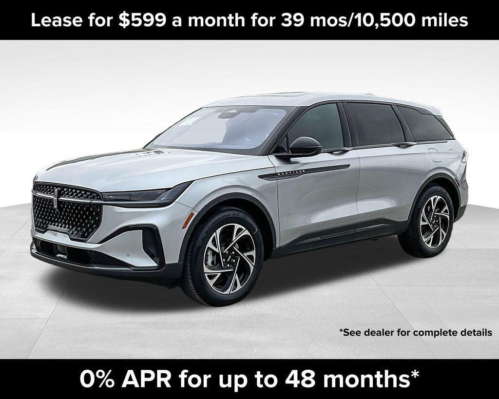 10 Speakers, 110V Power Converter, 19" Bright Machined Aluminum Wheels, 4-Wheel Disc Brakes, ABS brakes, Air Conditioning, Alloy wheels, AM/FM radio: SiriusXM with 360L, Apple CarPlay/Android Auto, Auto Air Refresh, Auto High-beam Headlights, Auto tilt-away steering wheel, Auto-dimming Rear-View mirror, Automatic temperature control, Black Exterior Elements, BlueCruise Equipped (4-Years Included), Body Color, Brake assist, Bumpers: body-color, Compass, Delay-off headlights, Digital Scent, Driver door bin, Driver vanity mirror, Dual front impact airbags, Dual front side impact airbags, Electronic Stability Control, Emergency communication system: 911 Assist, Equipment Group 102A, Exterior Parking Camera Rear, Four wheel independent suspension, Front anti-roll bar, Front Bucket Seats, Front Center Armrest w/Storage, Front dual zone A/C, Front reading lights, Fully automatic headlights, Garage door transmitter, Hands-Free Power Liftgate, Heated door mirrors, Heated front seats, Heated steering wheel, Illuminated entry, Jet Appearance Package, Knee airbag, Leather steering wheel, Lincoln Digital Experience, Lincoln Soft Touch Heated Front Captain's Chairs, Low tire pressure warning, Memory seat, Molded in Color, Navigation System, Occupant sensing airbag, Outside temperature display, Overhead airbag, Overhead console, Panic alarm, Panoramic Vista Roof w/Powershade, Passenger door bin, Passenger vanity mirror, Power door mirrors, Power driver seat, Power Liftgate, Power passenger seat, Power steering, Power windows, Radio data system, Radio: AM/FM Premium Audio, Radio: AM/FM Revel Audio System, Rain sensing wipers, Rear anti-roll bar, Rear Heated Seats w/Switch Control, Rear reading lights, Rear seat center armrest, Rear window defroster, Rear window wiper, Remote keyless entry, Security system, SiriusXM w/360L, Speed control, Speed-sensing steering, Speed-Sensitive Wipers, Split folding rear seat, Spoiler, Steering wheel memory, Steering wheel mounted audio controls, Tachometer, Telescoping steering wheel, Tilt steering wheel, Traction control, Trip computer, Turn signal indicator mirrors, Variably intermittent wipers, Ventilated Front Seats, Wheels: 20" Bright Machined Aluminum. Price includes $299 documentation fee.