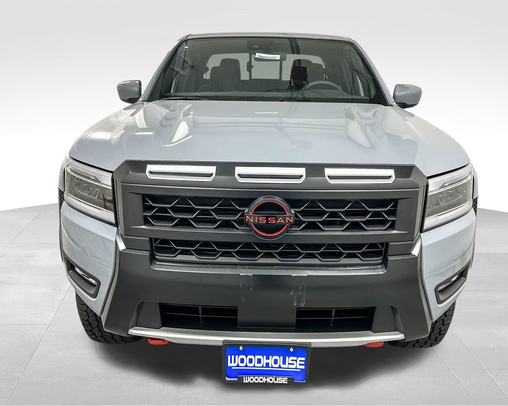 4WD, 17" Painted Alloy Wheels, 3.692 Axle Ratio, 4-Wheel Disc Brakes, 6 Speakers, ABS brakes, Air Conditioning, Alloy wheels, AM/FM radio: SiriusXM, Anti-whiplash front head restraints, Auto High-beam Headlights, Automatic temperature control, Blind Spot Warning, Brake assist, Bumpers: body-color, Delay-off headlights, Driver door bin, Driver vanity mirror, Dual front impact airbags, Dual front side impact airbags, Electronic Stability Control, Electronic Tailgate Lock, Emergency communication system, Essentials Kit, Front anti-roll bar, Front Bucket Seats, Front Center Armrest, Front dual zone A/C, Front fog lights, Front reading lights, Front wheel independent suspension, Fully automatic headlights, Illuminated entry, Knee airbag, Leather Shift Knob, Leather steering wheel, Low tire pressure warning, NissanConnect Services & Wi-Fi Hotspot Delete, Occupant sensing airbag, Off-Road Style Step Rails, Overhead airbag, Overhead console, Panic alarm, Passenger door bin, Passenger vanity mirror, Power door mirrors, Power driver seat, Power passenger seat, Power steering, Power windows, Premium Paint, PRO Embroidered Premium Cloth Seat Trim, PRO-4X Carpeted Floor Mats (DISC), Radio data system, Radio: SXM/AM/FM/AUX/USB Audio System, Rear anti-roll bar, Rear seat center armrest, Rear side impact airbag, Rear step bumper, Remote Engine Starter, Remote Engine Starter Accessory, Remote keyless entry, Security system, Speed control, Speed-sensing steering, Split folding rear seat, Steering wheel mounted audio controls, Tachometer, Telematics Delete Package, Telescoping steering wheel, Tilt steering wheel, Traction control, Trip computer, USB Charging Cable Kit, Variably intermittent wipers, Voltmeter, Wireless Apple CarPlay/Wireless Android Auto, 4WD. Price includes: $3500 - Nissan Customer Cash. Exp. 11/03/2025 $500 - Nissan MY25 Frontier Selldown Bonus Cash (PRO Trims). Exp. 11/03/2025 Must finance through dealer to qualify. Cash discount cannot be combined with Special APR or Lease. With approved credit. See Dealer for details. Trade-In a 2010 or newer qualifying vehicle. See Dealer for details.