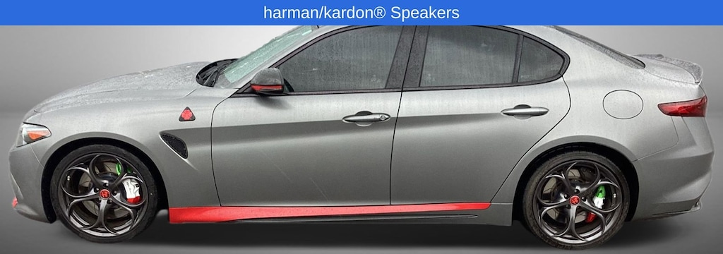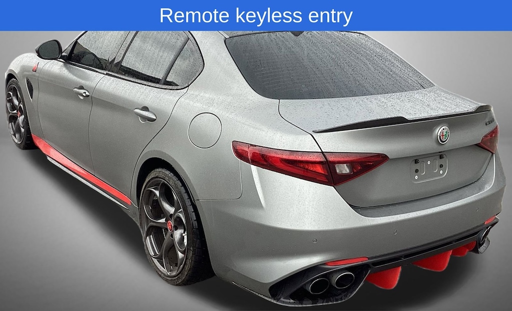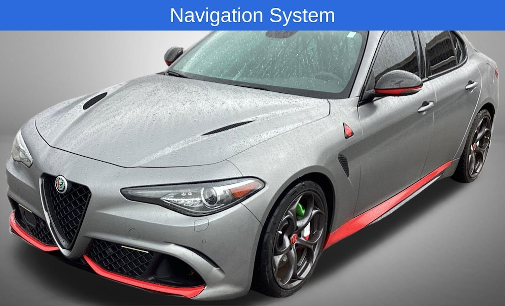 Nring Gray 2019 Alfa Romeo Giulia Quadrifoglio RWD 8-Speed Automatic V6 Apple CarPlay/Android Auto, Front Bucket Seats, harman/kardon® Speakers, Heated front seats, Navigation System, Remote keyless entry, Steering wheel mounted audio controls, 15 Speakers, 4-Wheel Disc Brakes, 8.8" Widescreen Color Display, ABS brakes, Air Conditioning, Alloy wheels, AM/FM radio: SiriusXM, Auto-dimming door mirrors, Auto-dimming Rear-View mirror, Automatic temperature control, Bodyside moldings, Brake assist, Bumpers: body-color, Calipers Gloss Red w/White Script, Colored Brake Calipers, Compass, Delay-off headlights, Driver door bin, Driver vanity mirror, Dual front impact airbags, Dual front side impact airbags, Electronic Stability Control, Exposed Carbon Fiber Roof, Exterior Parking Camera Rear, Four wheel independent suspension, Front anti-roll bar, Front Center Armrest, Front dual zone A/C, Front reading lights, Fully automatic headlights, Garage door transmitter, Gloss Black Shark Fin Antenna, GPS Navigation, HD Radio, Headlight cleaning, Heated door mirrors, Heated steering wheel, High intensity discharge headlights: Bi-Xenon, Illuminated entry, Knee airbag, Leather & Alcantara Seats, Low tire pressure warning, Memory seat, Occupant sensing airbag, Outside temperature display, Overhead airbag, Overhead console, Panic alarm, Passenger door bin, Passenger vanity mirror, Power door mirrors, Power driver seat, Power passenger seat, Power steering, Power windows, Quadrifoglio Carbon Fiber Steering Wheel, Radio data system, Radio: AM/FM/HD Bluetooth w/Nav 8.8, Rain sensing wipers, Rear anti-roll bar, Rear fog lights, Rear reading lights, Rear seat center armrest, Rear window defroster, Seats w/Red Stitching, Security system, Speed control, Speed-sensing steering, Speed-Sensitive Wipers, Split folding rear seat, Spoiler, Tachometer, Telescoping steering wheel, Thatcham Security Equipment, Tilt steering wheel, Traction control, Trip computer, Turn signal indicator mirrors, Variably intermittent wipers, Wheels: 19" x 8.5" Fr & 19" x 10" Rr Bright Tecnico, Wheels: 19" x 8.5" Fr & 19" x 10" Rr Dark 5-Hole, Apple CarPlay/Android Auto, Front Bucket Seats, harman/kardon® Speakers, Heated front seats, Navigation System, Remote keyless entry, Steering wheel mounted audio controls.