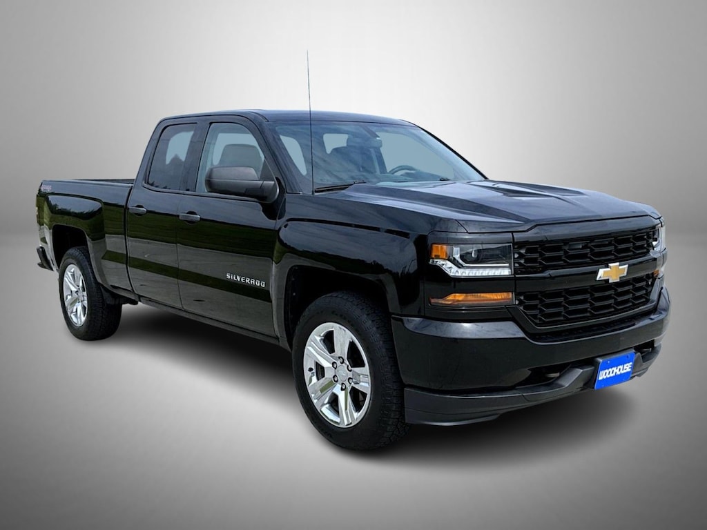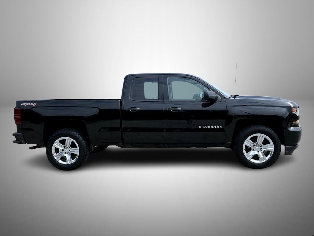 Black 2017 Chevrolet Silverado 1500 Custom 4WD 6-Speed Automatic Electronic with Overdrive EcoTec3 5.3L V8 6-Speed Automatic Electronic with Overdrive, 4WD, Dark Ash With Jet Black Interior Accents Cloth, 150 Amp Alternator, 20" x 9" Chrome Clad Aluminum Wheels, 3-Passenger Full-Width Folding Rear Bench Seat, 3.42 Rear Axle Ratio, 4-Wheel Disc Brakes, 40/20/40 Front Split Bench Seat, 6 Speaker Audio System, 6 Speakers, ABS brakes, Air Conditioning, Alloy wheels, AM/FM radio, Apple CarPlay/Android Auto, Auxiliary External Transmission Oil Cooler, Black Power Adjustable Heated Outside Mirrors, Bluetooth® For Phone, Body Color Rear Bumper w/Cornersteps, Body-Color Grille Surround, Body-Color Headlamp Bezels, Brake assist, Bumpers: body-color, Cloth Seat Trim, Deep-Tinted Glass, Delay-off headlights, Driver door bin, Driver Information Center, Dual front impact airbags, Dual front side impact airbags, E85 FlexFuel Capable, Electronic Stability Control, Front anti-roll bar, Front Body-Color Bumper, Front Center Armrest w/Storage, Front Frame-Mounted Black Recovery Hooks, Front License Plate Kit, Front reading lights, Front wheel independent suspension, Fully automatic headlights, Graphite-Colored Rubberized-Vinyl Floor Covering, Heated door mirrors, Heavy Duty Suspension, Heavy-Duty Rear Locking Differential, High-Intensity Discharge Headlights, Illuminated entry, LED Cargo Box Lighting, Low tire pressure warning, Manual Tilt Wheel Steering Column, Occupant sensing airbag, Overhead airbag, Overhead console, Passenger door bin, Passenger vanity mirror, Power door mirrors, Power steering, Power windows, Power Windows w/Driver Express Up, Preferred Equipment Group 1CX, Premium audio system: Chevrolet MyLink, Radio data system, Radio: AM/FM w/7" Diagonal Color Touch Screen, Rear reading lights, Rear step bumper, Silverado Custom Trim, Speed control, Speed-sensing steering, Tachometer, Tilt steering wheel, Traction control, Trailering Package, Trip computer, Variably intermittent wipers, Voltmeter, Wheel Locks (Set of 4) (LPO), 6-Speed Automatic Electronic with Overdrive, 4WD, Dark Ash With Jet Black Interior Accents Cloth.