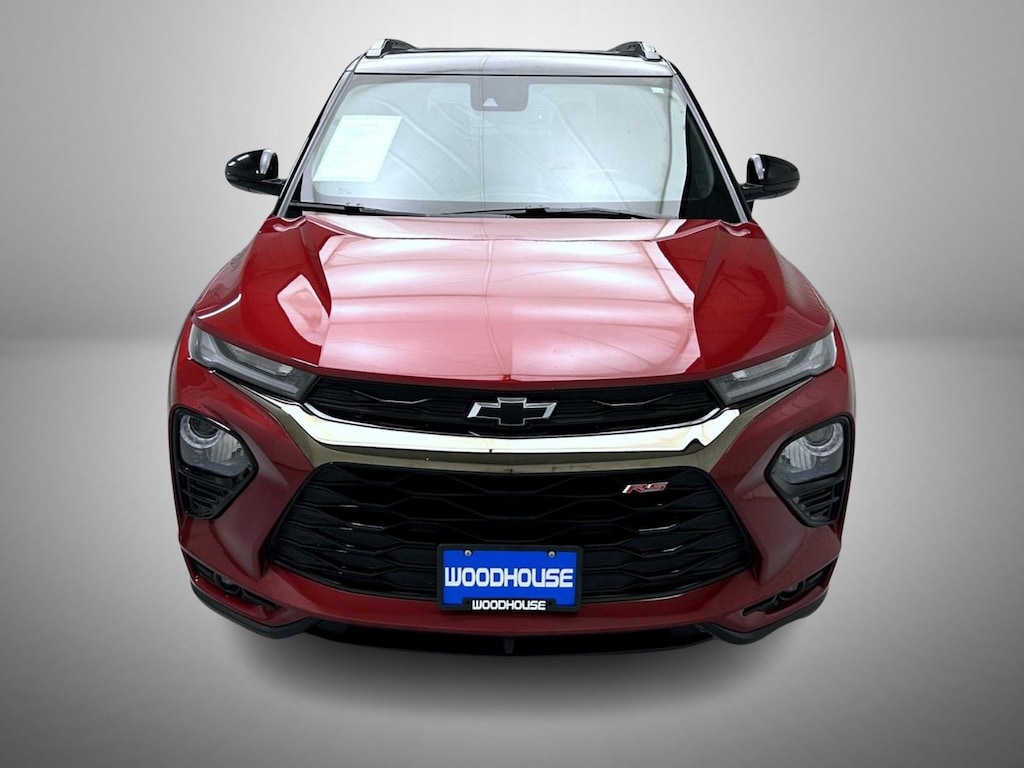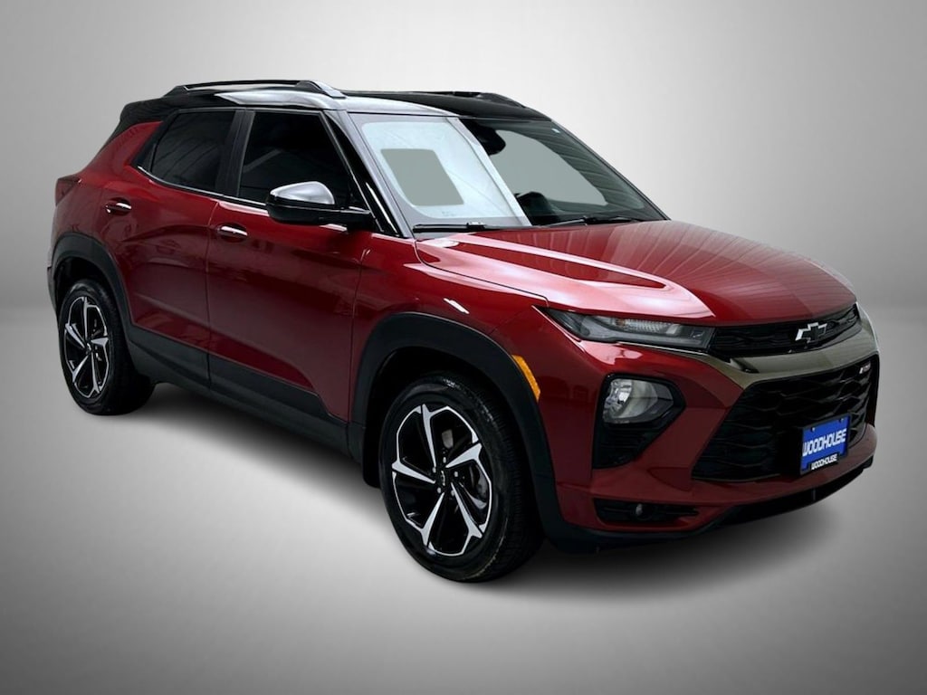 Scarlet Red Metallic 2021 Chevrolet TrailBlazer RS AWD 9-Speed Automatic 1.3L Ecotec Turbo DOHC SIDI w/VVT 1 Type-A & 1 Type-C USB Charging-Only Ports, 120-Volt Power Outlet, 2-Way Power Driver Lumbar Seat Adjuster, 3.17 Axle Ratio, 4-Way Manual Front Passenger Seat Adjuster, 4-Wheel Disc Brakes, 4.2" Diagonal Multi-Color Driver Info Center, 6 Speakers, 6-Speaker Audio System Feature w/Amplifier, 8-Way Power Driver Seat Adjuster, 8" Diagonal Color Touchscreen Display, ABS brakes, Adaptive Cruise Control, Air Conditioning, Alloy wheels, AM/FM radio, Apple CarPlay/Android Auto, Auto High-beam Headlights, Bose Premium 7-Speaker Audio System Feature, Brake assist, Bumpers: body-color, Cabin Humidity Sensor, Cloth w/Leatherette Seat Trim, Compass, Convenience Package, Delay-off headlights, Driver & Front Passenger Illuminated Vanity Mirrors, Driver Confidence Package, Driver door bin, Driver vanity mirror, Dual front impact airbags, Dual front side impact airbags, Dual-Pane Panoramic Power Sunroof, Electronic Stability Control, Emergency communication system: OnStar and Chevrolet connected services capable, Exterior Parking Camera Rear, Flat-Folding Front Passenger Seatback, Front anti-roll bar, Front Bucket Seats, Front Center Armrest, Front fog lights, Front License Plate Bracket, Front reading lights, Front wheel independent suspension, Fully automatic headlights, Hands-Free Power Programmable Liftgate, HD Radio, HD Rear Vision Camera, Heated door mirrors, Heated Driver & Front Passenger Seats, Heated front seats, Illuminated entry, Inside Rear-View Auto-Dimming Mirror, Knee airbag, Lane Change Alert w/Side Blind Zone Alert, Leather Shift Knob, Leather steering wheel, LED Headlamps, Low tire pressure warning, Memory Card Receptacle, Mosaic Black Metallic Two-Tone Roof, Occupant sensing airbag, Overhead airbag, Overhead console, Panic alarm, Passenger door bin, Passenger vanity mirror, Power door mirrors, Power driver seat, Power steering, Power windows, Preferred Equipment Group 1RS, Radio data system, Radio: Chevrolet Infotainment 3 Plus System, Radio: Chevrolet Infotainment 3 System, Rear Cross Traffic Alert, Rear Park Assist, Rear seat center armrest, Rear side impact airbag, Rear window defroster, Rear window wiper, Remote keyless entry, Ride & Handling Suspension, Roof rack: rails only, Security system, Single-Zone Auto Climate Control Air Conditioning, SiriusXM Radio, SiriusXM w/360L, Speed control, Split folding rear seat, Spoiler, Steering wheel mounted audio controls, Sun & Liftgate Package, Tachometer, Technology Package, Telescoping steering wheel, Tilt steering wheel, Traction control, Trip computer, Variably intermittent wipers, Wheels: 18" High Gloss Black Machined Aluminum, Wireless Apple CarPlay/Android Auto, Wireless Charging.