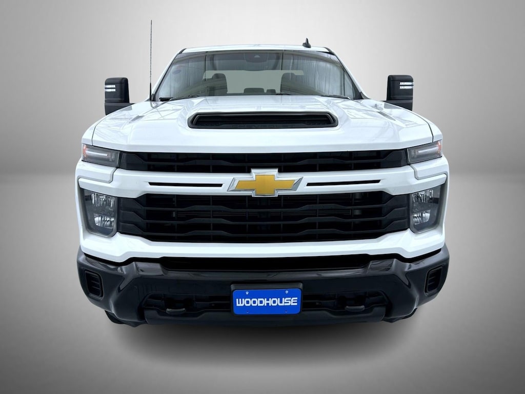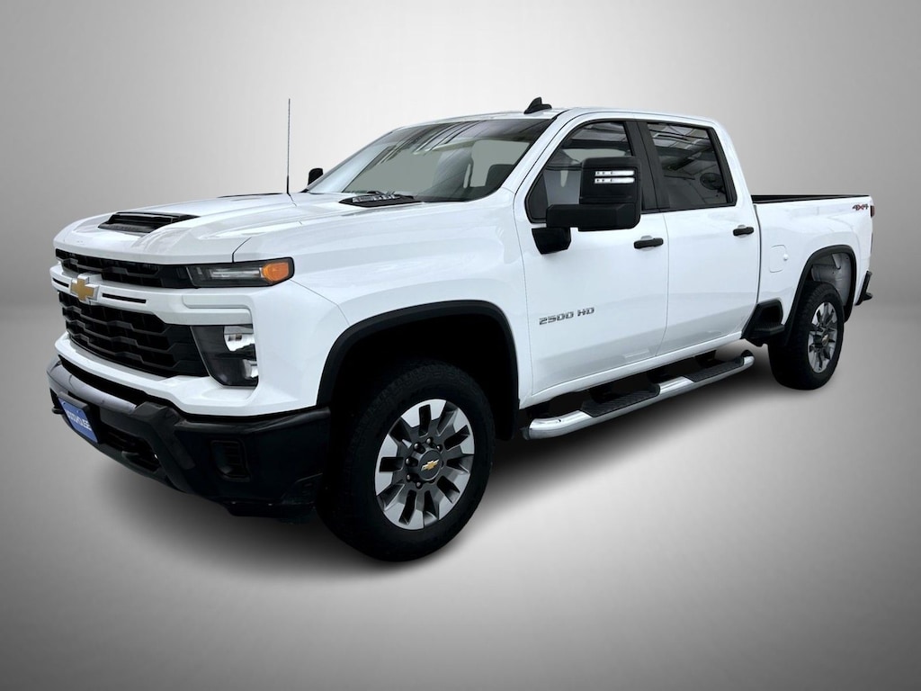 Summit White 2024 Chevrolet Silverado 2500HD Custom 4WD 10-Speed Automatic 6.6L V8 10-Speed Automatic, 4WD, Black Cloth, 10-Way Power Driver Seat Adjuster w/Lumbar, 120-Volt Bed Mounted Power Outlet, 120-Volt Interior Power Outlet, 170 Amp Alternator, 2-Speed Electronic Shift Transfer Case, 220 Amp Alternator, 3.5" Diagonal Monochromatic Display DIC, 3.73 Rear Axle Ratio, 4-Wheel Disc Brakes, 6 Speakers, 6-Speaker Audio System, 720 Cold-Cranking Amps Heavy-Duty Battery, ABS brakes, Air Conditioning, Alloy wheels, AM/FM radio: SiriusXM with 360L, Apple CarPlay/Android Auto, Auto High-beam Headlights, Auto-Dimming Inside Rear-View Mirror, Black Mirror Caps, Bluetooth® For Phone, Brake assist, Chevrolet Connected Access Capable, Cloth Seat Trim, Color-Keyed Carpeting Floor Covering, Compass, Custom Convenience Package, Custom Value Package, CX Safety Package, Deep-Tinted Glass, Delay-off headlights, Driver door bin, Dual front impact airbags, Dual front side impact airbags, Dual Rear USB Ports (Charge Only), Durabed Pickup Bed, Electric Rear-Window Defogger, Electronic Cruise Control w/Set & Resume Speed, Electronic Stability Control, Engine Block Heater, EZ Lift Power Lock & Release Tailgate, Front 40/20/40 Split-Bench Seats w/Lockable Storage, Front anti-roll bar, Front Center Armrest w/Storage, Front License Plate Kit, Front reading lights, Front Rubberized Vinyl Floor Mats, Front wheel independent suspension, Fully automatic headlights, HD Rear Vision Camera, Heated & Auto-Dimming Vertical Trailering Mirrors, Heated door mirrors, Heated Vertical Trailering Mirrors, Illuminated entry, Integrated Trailer Brake Controller, Lane Change Alert w/Side Blind Zone Alert, LED Cargo Area Lighting, Locking Tailgate, Low tire pressure warning, Manual Tailgate Function w/No EZ Lift, Manual Tilt & Telescoping Steering Column, Manual Tilt-Wheel Steering Column, Not Equipped w/Rear USB Ports, Occupant sensing airbag, OnStar & Chevrolet Connected Services Capable, Outside temperature display, Overhead airbag, Overhead console, Panic alarm, Passenger door bin, Passenger vanity mirror, Power Door Locks, Power door mirrors, Power Front Windows w/Driver Express Up/Down, Power Front Windows w/Passenger Express Down, Power Rear Windows w/Express Down, Power steering, Power windows, Preferred Equipment Group 1CX, Premium audio system: Chevrolet Infotainment 3, Push Button Start, Radio: Chevrolet Infotainment 3 System, Rear 60/40 Folding Bench Seat (Folds Up), Rear Cross Traffic Alert, Rear Park Assist, Rear reading lights, Rear Rubberized Vinyl Floor Mats, Rear step bumper, Remote Keyless Entry, Remote keyless entry, Remote Vehicle Starter System, SiriusXM w/360L, Speed control, Split folding rear seat, Standard Tailgate, Suspension Package, Tachometer, Tilt steering wheel, Traction control, Trip computer, Turn signal indicator mirrors, Unauthorized Entry Theft-Deterrent System, Variably intermittent wipers, Voltmeter, Wheels: 20" 10-Spoke Machined Aluminum, Wi-Fi Hotspot Capable, Wireless Phone Projection, 10-Speed Automatic, 4WD, Black Cloth.
