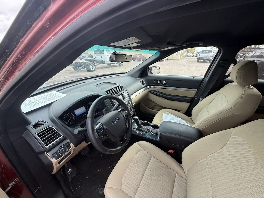 Red 2016 Ford Explorer 4WD 6-Speed Automatic with Select-Shift 3.5L 6-Cylinder SMPI DOHC 18" Painted Aluminum Wheels, 3.65 Axle Ratio, 3rd row seats: split-bench, 4-Wheel Disc Brakes, 6 Speakers, ABS brakes, Air Conditioning, Alloy wheels, AM/FM radio, Brake assist, Bumpers: body-color, CD player, Cloth Bucket Seats, Compass, Delay-off headlights, Driver door bin, Driver vanity mirror, Dual front impact airbags, Dual front side impact airbags, Electronic Stability Control, Emergency communication system: 911 Assist, Exterior Parking Camera Rear, Four wheel independent suspension, Front anti-roll bar, Front Bucket Seats, Front Center Armrest, Front reading lights, Fully automatic headlights, Illuminated entry, Knee airbag, Low tire pressure warning, Occupant sensing airbag, Outside temperature display, Overhead airbag, Overhead console, Panic alarm, Passenger door bin, Passenger vanity mirror, Power door mirrors, Power driver seat, Power steering, Power windows, Radio: AM/FM Stereo w/Single CD/MP3 Capable, Rear air conditioning, Rear anti-roll bar, Rear reading lights, Rear window defroster, Rear window wiper, Remote keyless entry, Roof rack: rails only, Speed control, Speed-sensing steering, Speed-Sensitive Wipers, Split folding rear seat, Spoiler, Steering wheel mounted audio controls, SYNC, Tachometer, Telescoping steering wheel, Tilt steering wheel, Traction control, Trip computer, Variably intermittent wipers.