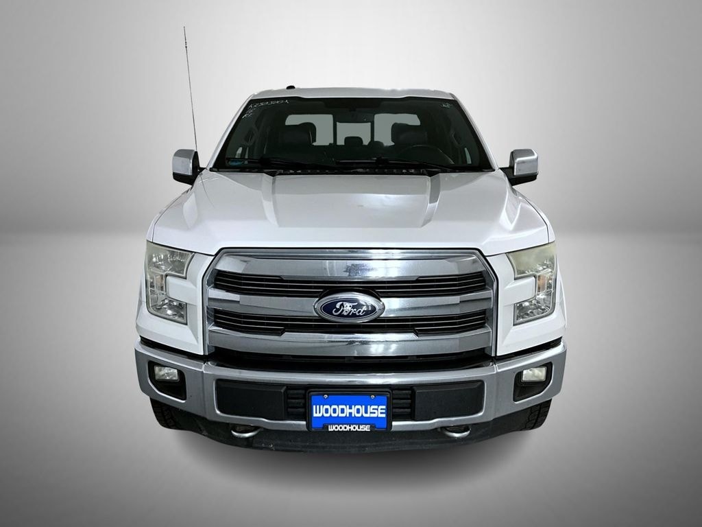 White Platinum Clearcoat Metallic 2016 Ford F-150 Lariat 4WD 6-Speed Automatic Electronic 5.0L V8 FFV 4WD, 110V/400W Outlet, 18" Machined-Aluminum Wheels, 4-Wheel Disc Brakes, 7 Speakers, ABS brakes, Adjustable pedals, Air Conditioning, Alloy wheels, AM/FM radio: SiriusXM, Auto-dimming door mirrors, Auto-dimming Rear-View mirror, Automatic temperature control, BLIS Blind Spot Information System, Brake assist, Bumpers: chrome, CD player, Chrome 3-Bar Style Grille w/Chrome Surround, Chrome Angular Step Bars, Chrome Door & Tailgate Handles w/Body-Color Bezel, Chrome Skull Caps on Exterior Mirrors, Compass, Delay-off headlights, Driver door bin, Driver vanity mirror, Dual front impact airbags, Dual front side impact airbags, Electronic Stability Control, Equipment Group 501A Mid, Extended Range 36 Gallon Fuel Tank, Exterior Parking Camera Rear, Front anti-roll bar, Front Center Armrest w/Storage, Front dual zone A/C, Front fog lights, Front License Plate Bracket, Front reading lights, Front wheel independent suspension, Fully automatic headlights, FX4 Off-Road Package, Heated door mirrors, Heated front seats, Illuminated entry, Lariat Chrome Appearance Package, Leather-Trimmed 40/20/40 Front Seat, LED Side-Mirror Spotlights, Low tire pressure warning, Memory seat, Occupant sensing airbag, Outside temperature display, Overhead airbag, Overhead console, Panic alarm, Passenger door bin, Passenger vanity mirror, Pedal memory, Power door mirrors, Power driver seat, Power Glass Sideview Mirr w/Body-Color Skull Caps, Power passenger seat, Power steering, Power windows, Radio data system, Radio: Single-CD w/SiriusXM Satellite, Rear reading lights, Rear seat center armrest, Rear step bumper, Rear window defroster, Remote keyless entry, Remote Start System w/Remote Tailgate Release, Reverse Sensing System, Security system, Single-Tip Chrome Exhaust, Speed control, Speed-sensing steering, Split folding rear seat, Steering wheel mounted audio controls, SYNC 3, Tachometer, Tailgate Step w/Tailgate Lift Assist, Telescoping steering wheel, Tilt steering wheel, Traction control, Trip computer, Turn signal indicator mirrors, Universal Garage Door Opener, Variably intermittent wipers, Ventilated front seats, Voice-Activated Navigation, Voltmeter, Wheels: 18" Chrome-Like PVD, 4WD.