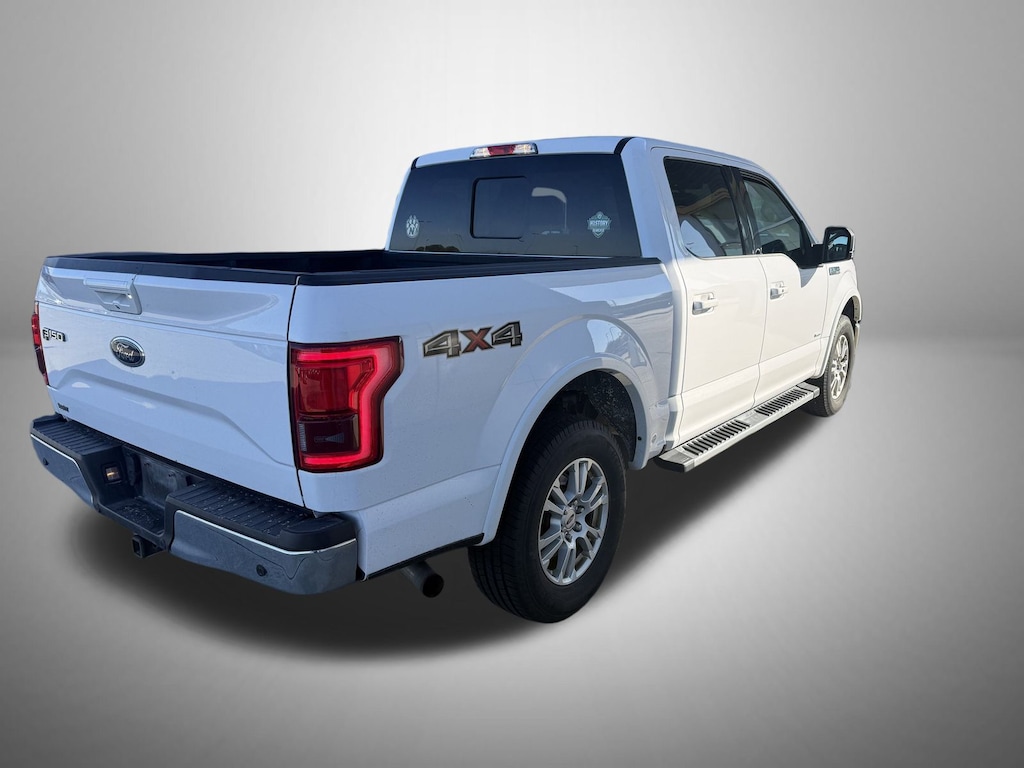 Oxford White 2016 Ford F-150 Lariat 4WD 6-Speed Automatic Electronic 2.7L V6 EcoBoost 4WD, 110V/400W Outlet, 18" Machined-Aluminum Wheels, 4-Wheel Disc Brakes, 7 Speakers, ABS brakes, Adjustable pedals, Air Conditioning, Alloy wheels, AM/FM radio: SiriusXM, Auto-dimming door mirrors, Auto-dimming Rear-View mirror, Automatic temperature control, BLIS Blind Spot Information System, Brake assist, Bumpers: chrome, CD player, Chrome Angular Step Bars, Class IV Trailer Hitch Receiver, Compass, Delay-off headlights, Driver door bin, Driver vanity mirror, Dual front impact airbags, Dual front side impact airbags, Electronic Stability Control, Equipment Group 501A Mid, Extended Range 36 Gallon Fuel Tank, Exterior Parking Camera Rear, Front anti-roll bar, Front Center Armrest w/Storage, Front dual zone A/C, Front fog lights, Front License Plate Bracket, Front reading lights, Front wheel independent suspension, Fully automatic headlights, GVWR: 6,500 lbs Payload Package, Heated door mirrors, Heated front seats, Illuminated entry, Leather-Trimmed 40/20/40 Front Seat, Low tire pressure warning, Memory seat, Occupant sensing airbag, Outside temperature display, Overhead airbag, Overhead console, Panic alarm, Passenger door bin, Passenger vanity mirror, Pedal memory, Power door mirrors, Power driver seat, Power Glass Sideview Mirr w/Body-Color Skull Caps, Power passenger seat, Power steering, Power windows, Pro Trailer Backup Assist, Radio data system, Radio: Single-CD w/SiriusXM Satellite, Rear reading lights, Rear seat center armrest, Rear step bumper, Rear window defroster, Remote keyless entry, Remote Start System w/Remote Tailgate Release, Security system, Speed control, Speed-sensing steering, Split folding rear seat, Steering wheel mounted audio controls, SYNC 3, Tachometer, Telescoping steering wheel, Tilt steering wheel, Traction control, Trailer Tow Package, Trip computer, Turn signal indicator mirrors, Universal Garage Door Opener, Variably intermittent wipers, Ventilated front seats, Voltmeter, 4WD.