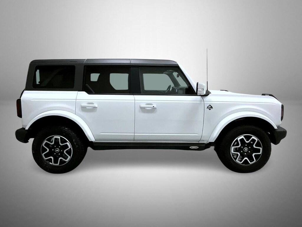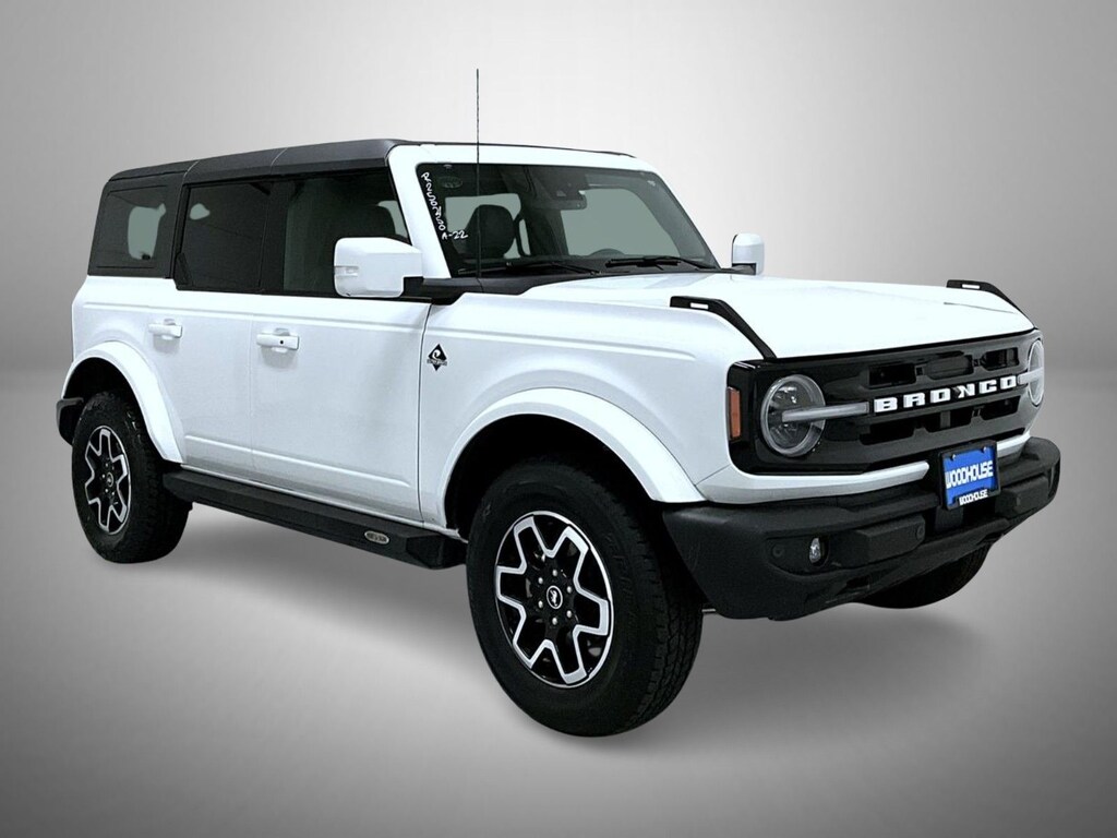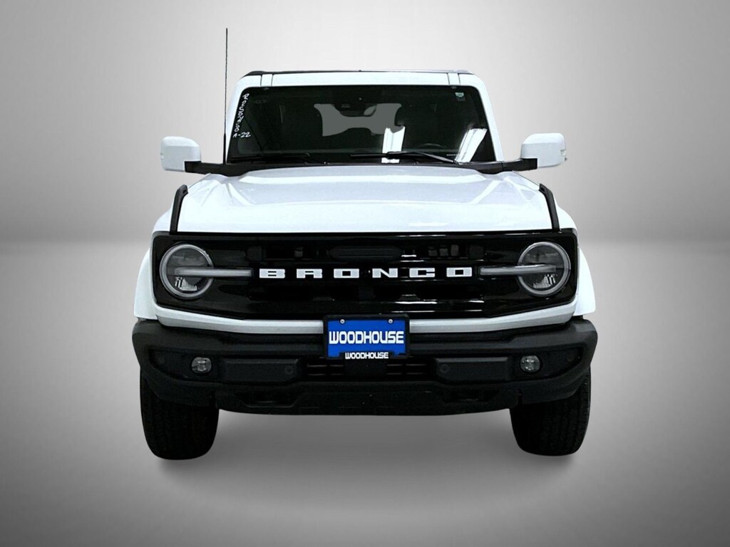 Oxford White 2022 Ford Bronco Outer Banks 4WD 10-Speed Automatic 2.3L EcoBoost I-4 4-Wheel Disc Brakes, 6 Speakers, ABS brakes, Air Conditioning, AM/FM radio: SiriusXM with 360L, AM/FM Stereo, Auto High-beam Headlights, Brake assist, Carbonized Gray Molded-In-Color Hard Top, Compass, Delay-off headlights, Driver door bin, Driver vanity mirror, Dual front impact airbags, Dual front side impact airbags, Electronic Stability Control, Emergency communication system: 911 Assist, Exterior Parking Camera Rear, Front & Rear Floor Liners w/o Carpet Floor Mats, Front anti-roll bar, Front Bucket Seats, Front Center Armrest, Front License Plate Bracket, Front reading lights, Front Row Top Panels Storage Bag, Front wheel independent suspension, Fully automatic headlights, Hard Top Sound Deadening Headliner, Heated door mirrors, Illuminated entry, Integrated roll-over protection, Low tire pressure warning, Occupant sensing airbag, Outside temperature display, Overhead airbag, Overhead console, Panic alarm, Passenger door bin, Passenger vanity mirror, Power door mirrors, Power steering, Power windows, Radio data system, Rear-Window Defroster & Washer, Remote keyless entry, Security system, SiriusXM Radio w/360L, Speed control, Split folding rear seat, Steering wheel mounted audio controls, SYNC 4, Tachometer, Telescoping steering wheel, Tilt steering wheel, Traction control, Trip computer, Variably intermittent wipers.