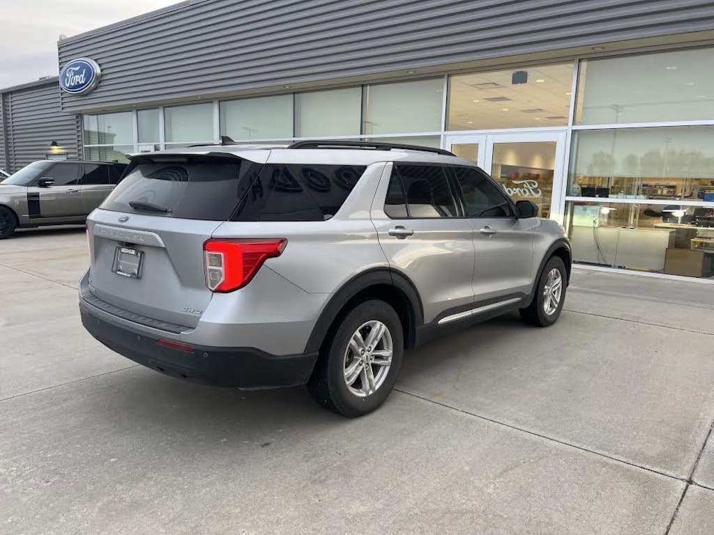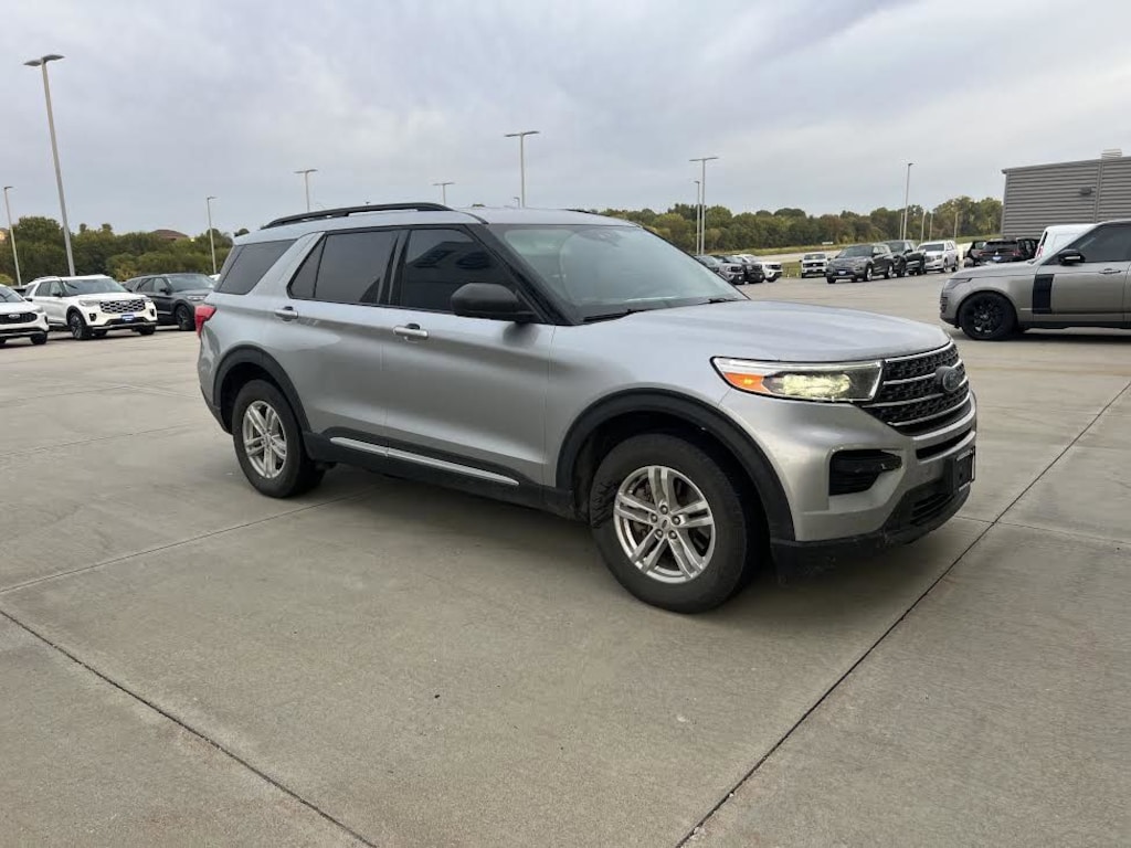 Iconic Silver Metallic 2022 Ford Explorer XLT 4WD 10-Speed Automatic 2.3L EcoBoost I-4 4WD, 1st Row Heated Seats, 3.58 Non-Limited-Slip Rear Axle Ratio, 3rd row seats: bench, 4-Wheel Disc Brakes, 6 Speakers, ABS brakes, Air Conditioning, Alloy wheels, AM/FM radio: SiriusXM, AM/FM Stereo, Auto High-beam Headlights, Auto Start-Stop Removal, Automatic temperature control, Brake assist, Bumpers: body-color, Compass, Delay-off headlights, Driver door bin, Driver vanity mirror, Dual front impact airbags, Dual front side impact airbags, Electronic Stability Control, Emergency communication system: SYNC 3 911 Assist, Equipment Group 200A, Exterior Parking Camera Rear, FordPass Connect, Four wheel independent suspension, Front anti-roll bar, Front Bucket Seats, Front Center Armrest, Front dual zone A/C, Front reading lights, Fully automatic headlights, Heated door mirrors, Heated front seats, Illuminated entry, Knee airbag, Leather steering wheel, Low tire pressure warning, Occupant sensing airbag, Outside temperature display, Overhead airbag, Overhead console, Panic alarm, Passenger door bin, Passenger vanity mirror, Power door mirrors, Power driver seat, Power Liftgate, Power passenger seat, Power steering, Power windows, Rear air conditioning, Rear anti-roll bar, Rear Auxiliary Controls Credit, Rear reading lights, Rear window defroster, Rear window wiper, Remote keyless entry, Roof rack: rails only, Security system, Speed control, Speed-sensing steering, Speed-Sensitive Wipers, Split folding rear seat, Spoiler, Steering wheel mounted audio controls, SYNC 3 Communications & Entertainment System, SYNC 3/Apple CarPlay/Android Auto, Tachometer, Telescoping steering wheel, Tilt steering wheel, Traction control, Trip computer, Unique Cloth Captain's Chairs, Variably intermittent wipers, Wheels: 18" 5-Spoke Silver-Painted Aluminum, 4WD.