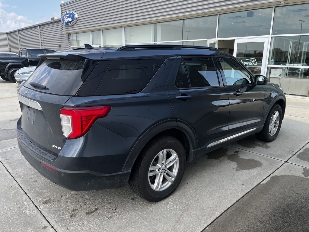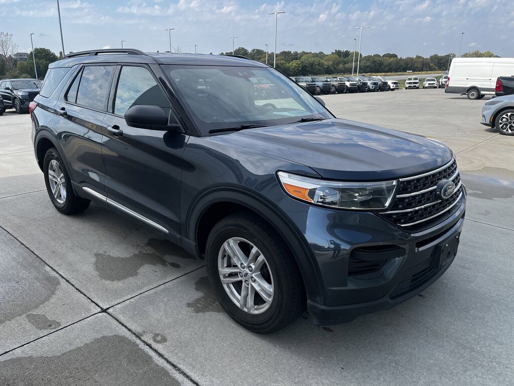 Stone Blue Metallic 2022 Ford Explorer XLT 4WD 10-Speed Automatic 2.3L EcoBoost I-4 4WD, 1st Row Heated Seats, 3.58 Non-Limited-Slip Rear Axle Ratio, 3rd row seats: bench, 4-Wheel Disc Brakes, 4G LTE Wi-Fi Hotspot Removal Credit, 6 Speakers, ABS brakes, Air Conditioning, Alloy wheels, AM/FM radio: SiriusXM, AM/FM Stereo, Auto High-beam Headlights, Auto Start-Stop Removal, Automatic temperature control, Brake assist, Bumpers: body-color, Compass, Delay-off headlights, Driver door bin, Driver vanity mirror, Dual front impact airbags, Dual front side impact airbags, Electronic Stability Control, Emergency communication system: SYNC 3 911 Assist, Equipment Group 200A, Exterior Parking Camera Rear, FordPass Connect, Four wheel independent suspension, Front anti-roll bar, Front Bucket Seats, Front Center Armrest, Front dual zone A/C, Front reading lights, Fully automatic headlights, Heated door mirrors, Heated front seats, Illuminated entry, Knee airbag, Leather steering wheel, Low tire pressure warning, Occupant sensing airbag, Outside temperature display, Overhead airbag, Overhead console, Panic alarm, Passenger door bin, Passenger vanity mirror, Power door mirrors, Power driver seat, Power Liftgate, Power passenger seat, Power steering, Power windows, Rear air conditioning, Rear anti-roll bar, Rear reading lights, Rear window defroster, Rear window wiper, Remote keyless entry, Roof rack: rails only, Security system, Speed control, Speed-sensing steering, Speed-Sensitive Wipers, Split folding rear seat, Spoiler, Steering wheel mounted audio controls, SYNC 3 Communications & Entertainment System, SYNC 3/Apple CarPlay/Android Auto, Tachometer, Telescoping steering wheel, Tilt steering wheel, Traction control, Trip computer, Unique Cloth Captain's Chairs, Variably intermittent wipers, Wheels: 18" 5-Spoke Silver-Painted Aluminum, 4WD.