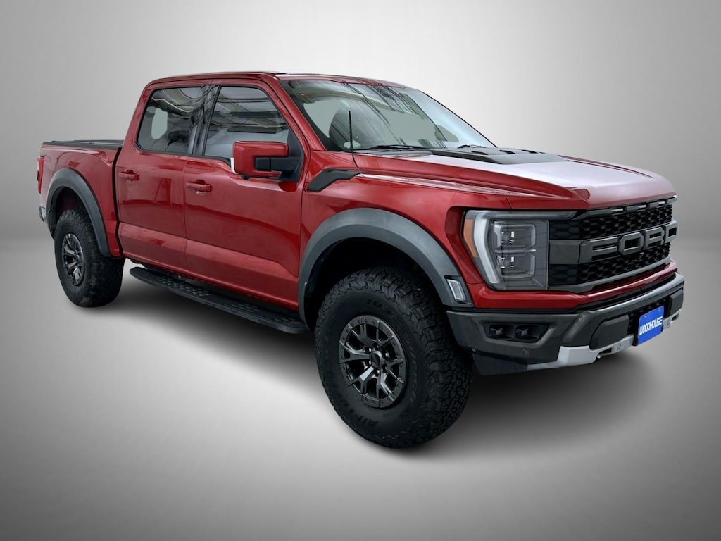 Rapid Red Metallic Tinted Clearcoat 2022 Ford F-150 Raptor 4WD 10-Speed Automatic 3.5L V6 EcoBoost 17" Cast Aluminum Wheels, 360 Degree Camera, 4-Wheel Disc Brakes, 7 Speakers, ABS brakes, Adaptive suspension, Adjustable pedals, Air Conditioning, Alloy wheels, AM/FM radio: SiriusXM with 360L, Auto High-beam Headlights, Auto Start-Stop Removal, Auto-dimming door mirrors, Auto-dimming Rear-View mirror, Automatic temperature control, Brake assist, Bumpers: body-color, Compass, Connected Built-In Navigation, Convenience Package, Delay-off headlights, Driver door bin, Driver vanity mirror, Dual front impact airbags, Dual front side impact airbags, Electronic Locking w/4.10 Axle Ratio, Electronic Stability Control, Emergency communication system, Equipment Group 801A High, Exterior Parking Camera Rear, Forward Sensing System, Front anti-roll bar, Front Bucket Seats, Front Center Armrest, Front dual zone A/C, Front reading lights, Front wheel independent suspension, Front-Axle w/Torsen Differential, Fully automatic headlights, GVWR: 7,050 lbs Payload Package, Heated door mirrors, Heated front seats, Heated Steering Wheel, Illuminated entry, Integrated Trailer Brake Controller, Interior Work Surface, Lane Departure Warning System, Leather Trim Seats, Leather Trim Seats w/Heated 2nd Row, LED Projector w/Dynamic Bending Headlamps, Low tire pressure warning, Memory seat, Moonroof & Tailgate, Navigation system: Connected Navigation, Occupant sensing airbag, Outside temperature display, Overhead airbag, Overhead console, Panic alarm, Partitioned Lockable Fold-Flat Storage, Passenger door bin, Passenger vanity mirror, Pedal memory, Power door mirrors, Power driver seat, Power passenger seat, Power steering, Power Tailgate, Power Tilt/Telescoping Steering Column w/Memory, Power windows, Pro Trailer Backup Assist, Radio data system, Radio: AM/FM SiriusXM w/360L, Radio: B&O Unleashed Sound System by Bang & Olufsen, Rain-Sensing Wipers, Raptor 37 Graphics, Raptor 37 Graphics Delete, Raptor 37 Performance Package, Raptor Carbon Fiber Package, Rear reading lights, Rear step bumper, Rear window defroster, Remote keyless entry, Rigid LED Fog Lamp, Security system, Speed control, Speed-sensing steering, Split folding rear seat, Sport Tuned Shock Absorbers, Steering wheel mounted audio controls, SYNC 4 w/Enhanced Voice Recognition, Tachometer, Tailgate Applique FORD, Telescoping steering wheel, Tilt steering wheel, Torsen Package, Tow Technology Package, Traction control, Trip computer, Turn signal indicator mirrors, Twin Panel Moonroof, Universal Garage Door Opener, Variably intermittent wipers, Ventilated front seats, Wheels: Unique 17" Forged Aluminum Bead-Lock Capable, Wireless Charging Pad.