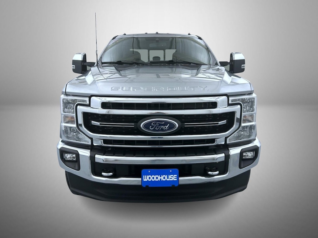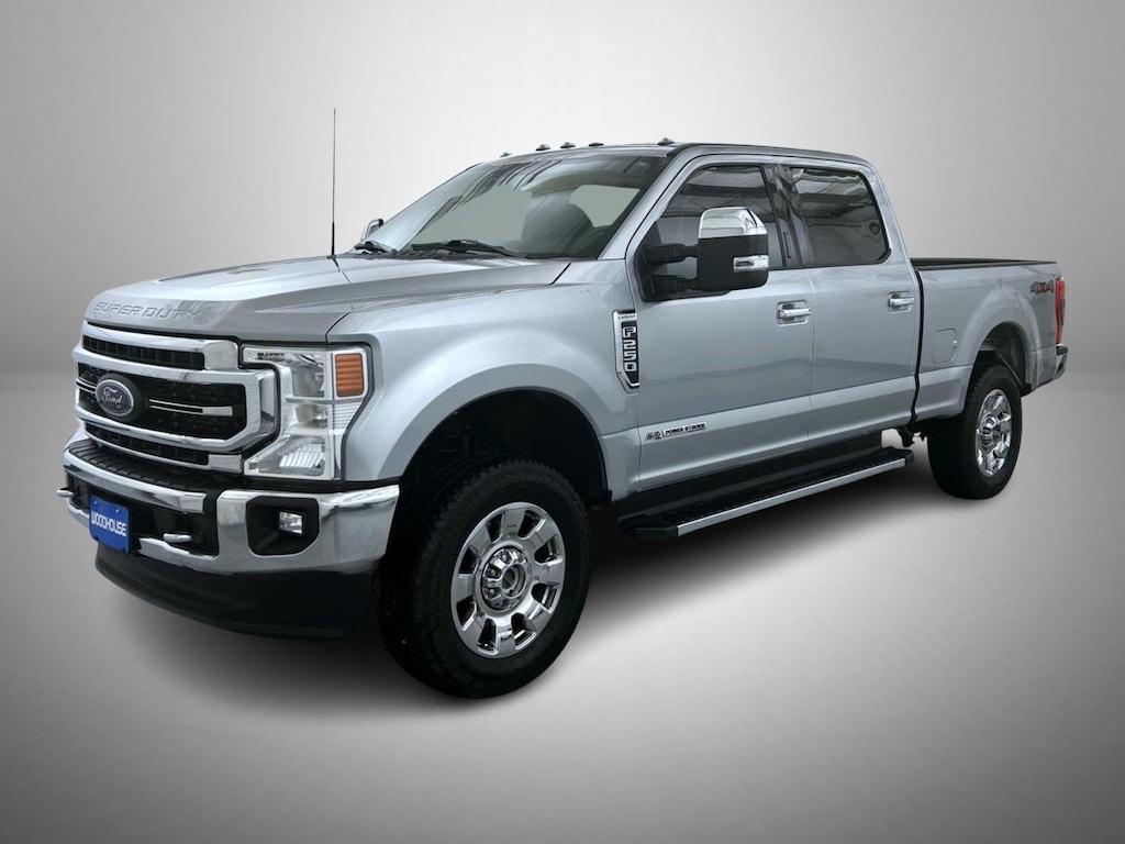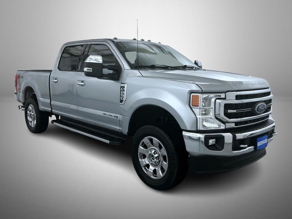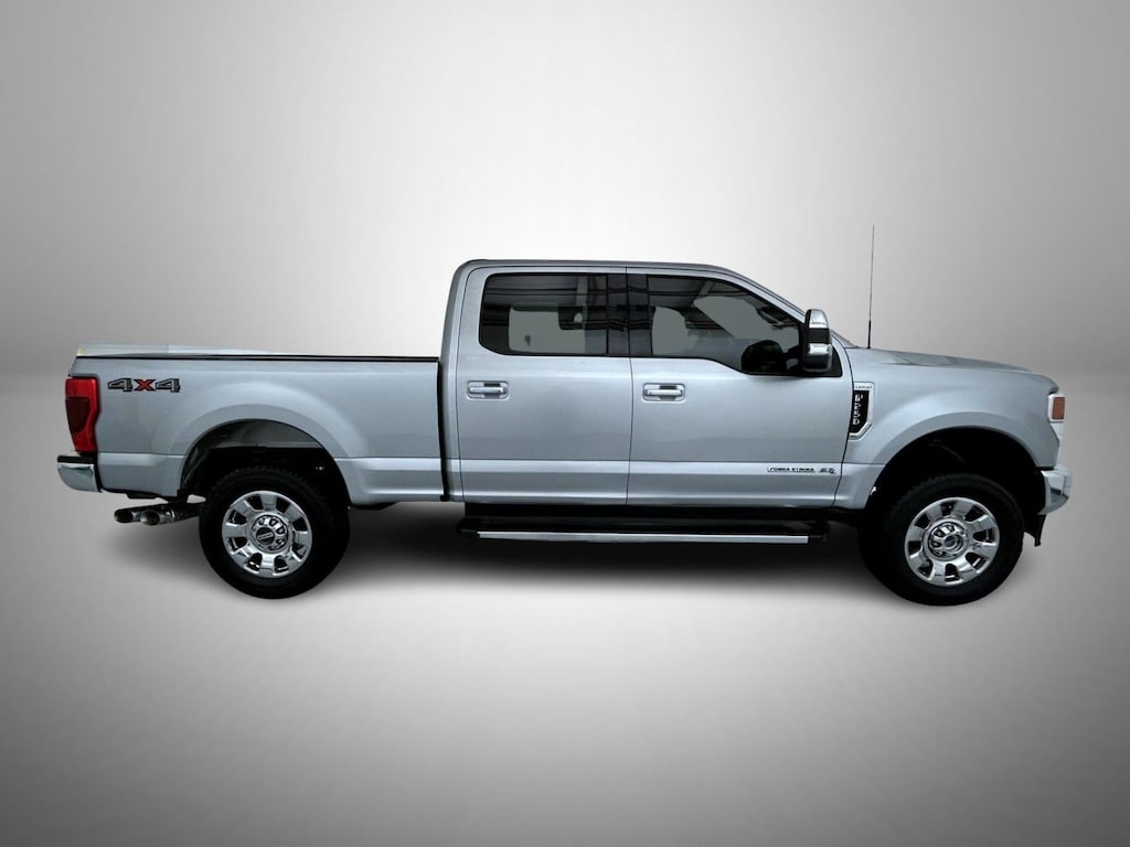 Silver Metallic 2022 Ford F-250SD Lariat 4WD 10-Speed Automatic Power Stroke 6.7L V8 DI 32V OHV Turbodiesel 10 Speakers, 397 Amp Alternator, 4-Wheel Disc Brakes, 6" Angular Bright Polished Step Bars, ABS brakes, Adjustable pedals, Air Conditioning, Alloy wheels, AM/FM radio: SiriusXM with 360L, Auto High-beam Headlights, Auto-dimming Rear-View mirror, Automatic temperature control, Body-Color Door Handles w/Chrome Insert, Brake assist, Bumpers: chrome, Chrome Exhaust Tip, Chrome Package, Compass, Delay-off headlights, Driver door bin, Driver vanity mirror, Dual front impact airbags, Dual front side impact airbags, Electronic Stability Control, Emergency communication system: SYNC 4 911 Assist, Engine Block Heater, Exterior Parking Camera Rear, Flow-Through Console, Front anti-roll bar, Front Bucket Seats, Front Center Armrest, Front dual zone A/C, Front fog lights, Front Leather Seating Surfaces 40/Console/40, Front reading lights, Fully automatic headlights, GVWR: 10,000 lb Payload Package, Heated door mirrors, Illuminated entry, Leather steering wheel, LED Roof Clearance Lights, Low tire pressure warning, Navigation system: Connected Navigation, Order Code 608A, Outside temperature display, Overhead airbag, Overhead console, Panic alarm, Passenger door bin, Passenger vanity mirror, Power door mirrors, Power driver seat, Power passenger seat, Power steering, Power windows, PowerScope Trailer Tow Mirrors w/Heat, Radio data system, Radio: B&O Sound System by Bang & Olufsen, Rear Parking Sensors, Rear reading lights, Rear seat center armrest, Rear step bumper, Rear window defroster, Remote keyless entry, Security system, SiriusXM Radio w/360L, Speed control, Split folding rear seat, Steering wheel mounted audio controls, SYNC 4 w/Enhanced Voice Recognition, Tachometer, Telescoping steering wheel, Tilt steering wheel, Traction control, Trip computer, Turn signal indicator mirrors, Unique Chrome Mirror Caps, Variably intermittent wipers, Wheels: 18" Bright Machined Cast Aluminum, Wheels: 18" Chrome PVD Aluminum.