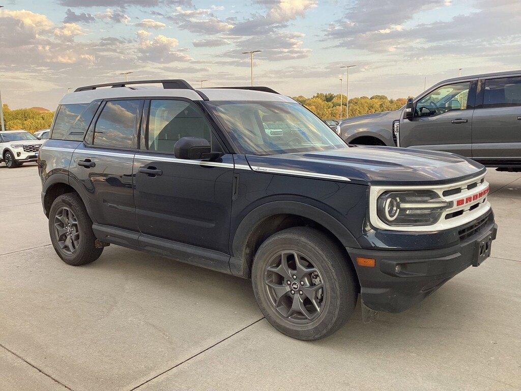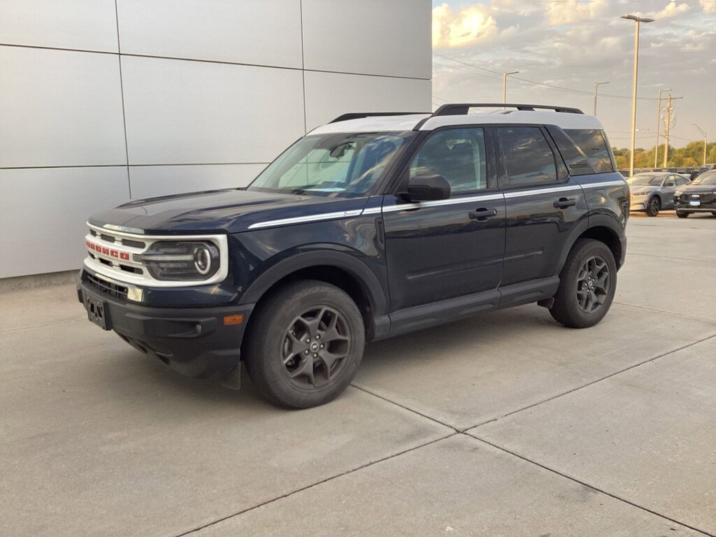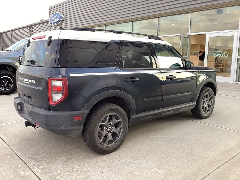 Alto Blue Metallic Tinted Clearcoat 2023 Ford Bronco Sport Heritage 4WD 8-Speed Automatic 1.5L EcoBoost 3.80 Axle Ratio, 4-Wheel Disc Brakes, 6 Speakers, ABS brakes, Air Conditioning, Alloy wheels, AM/FM radio: SiriusXM, AM/FM Stereo, Auto High-beam Headlights, Automatic temperature control, Brake assist, Cargo Management System, Compass, Delay-off headlights, Driver door bin, Driver vanity mirror, Dual front impact airbags, Dual front side impact airbags, Electronic Stability Control, Emergency communication system: SYNC 3 911 Assist, Equipment Group 250A, Four wheel independent suspension, Front anti-roll bar, Front Bucket Seats, Front Center Armrest, Front fog lights, Front License Plate Bracket, Front reading lights, Fully automatic headlights, Heated door mirrors, Heated Front Seats, Heritage Convenience Package, Illuminated entry, Knee airbag, Leather-Wrapped Steering Wheel, Low tire pressure warning, Occupant sensing airbag, Outside temperature display, Overhead airbag, Overhead console, Panic alarm, Passenger door bin, Passenger vanity mirror, Plaid Cloth Front Bucket Seats, Power door mirrors, Power steering, Power windows, Radio data system, Rear anti-roll bar, Rear Parking Sensors, Rear reading lights, Rear seat center armrest, Rear window defroster, Rear window wiper, Remote keyless entry, Security system, SiriusXM, Speed control, Speed-sensing steering, Speed-Sensitive Wipers, Split folding rear seat, Steering wheel mounted audio controls, SYNC 3 Communications & Entertainment System, SYNC 3/Apple CarPlay/Android Auto, Tachometer, Telescoping steering wheel, Tilt steering wheel, Traction control, Trip computer, Universal Garage Door Opener (UGDO), Variably intermittent wipers, Wheels: 17" Oxford White-Painted Aluminum, Wireless Charging Pad.