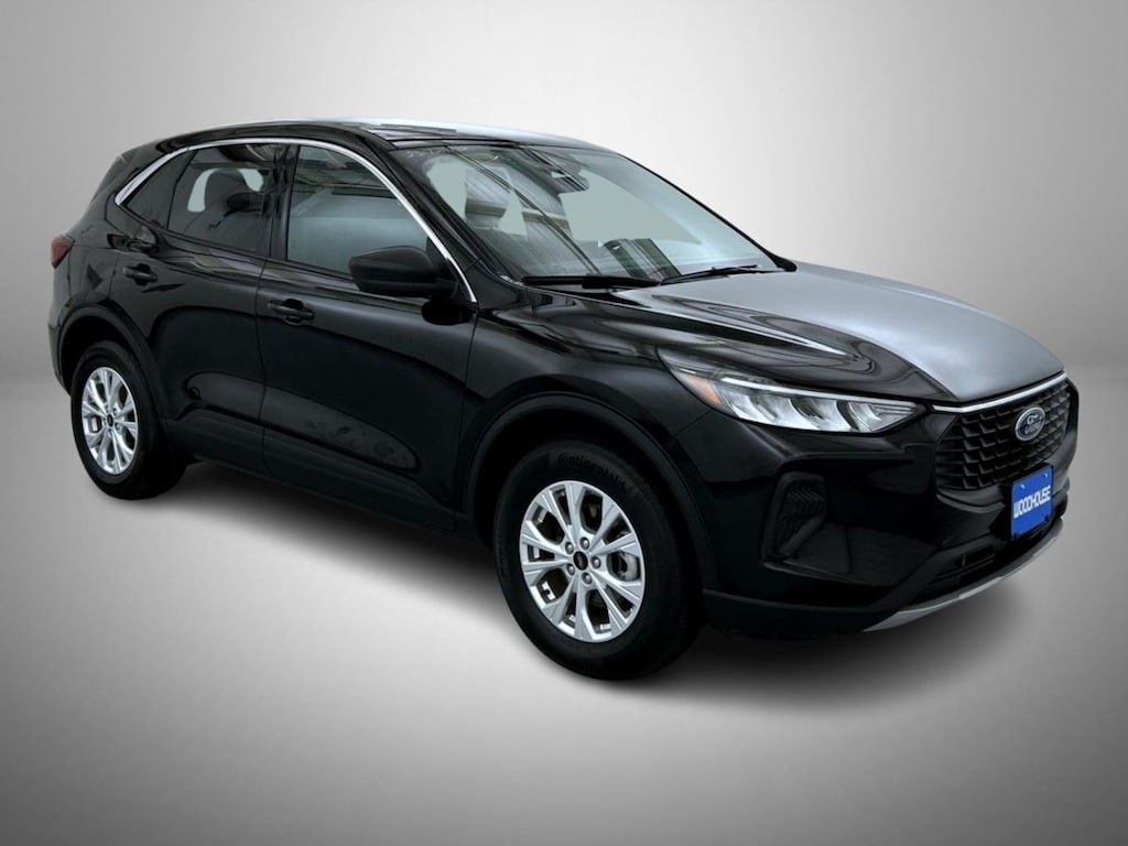 Agate Black Metallic 2023 Ford Escape Active AWD 8-Speed Automatic 1.5L EcoBoost 3.81 Axle Ratio, 4-Wheel Disc Brakes, 6 Speakers, ABS brakes, Air Conditioning, Alloy wheels, AM/FM radio: SiriusXM, AM/FM Stereo, Auto High-beam Headlights, Automatic temperature control, Brake assist, Bumpers: body-color, Compass, Delay-off headlights, Driver door bin, Driver vanity mirror, Dual front impact airbags, Dual front side impact airbags, Electronic Stability Control, Emergency communication system: SYNC 4 911 Assist, Equipment Group 200A, Exterior Parking Camera Rear, FordPass Connect, Four wheel independent suspension, Front & Rear Floor Liners w/o Carpet Mats, Front anti-roll bar, Front Bucket Seats, Front Center Armrest, Front dual zone A/C, Front License Plate Bracket, Front reading lights, Fully automatic headlights, Heated door mirrors, Heated front seats, Heated steering wheel, Illuminated entry, Knee airbag, Low tire pressure warning, Occupant sensing airbag, Outside temperature display, Overhead airbag, Overhead console, Panic alarm, Passenger door bin, Passenger vanity mirror, Power door mirrors, Power driver seat, Power Liftgate, Power steering, Power windows, Radio data system, Rear anti-roll bar, Rear reading lights, Rear seat center armrest, Rear window defroster, Rear window wiper, Remote keyless entry, Speed control, Speed-sensing steering, Speed-Sensitive Wipers, Split folding rear seat, Spoiler, Steering wheel mounted audio controls, SYNC 4, Tachometer, Telescoping steering wheel, Tilt steering wheel, Traction control, Trip computer, Unique Cloth Front Bucket Seats, Variably intermittent wipers, Wheels: 17" Shadow Silver-Painted Aluminum.