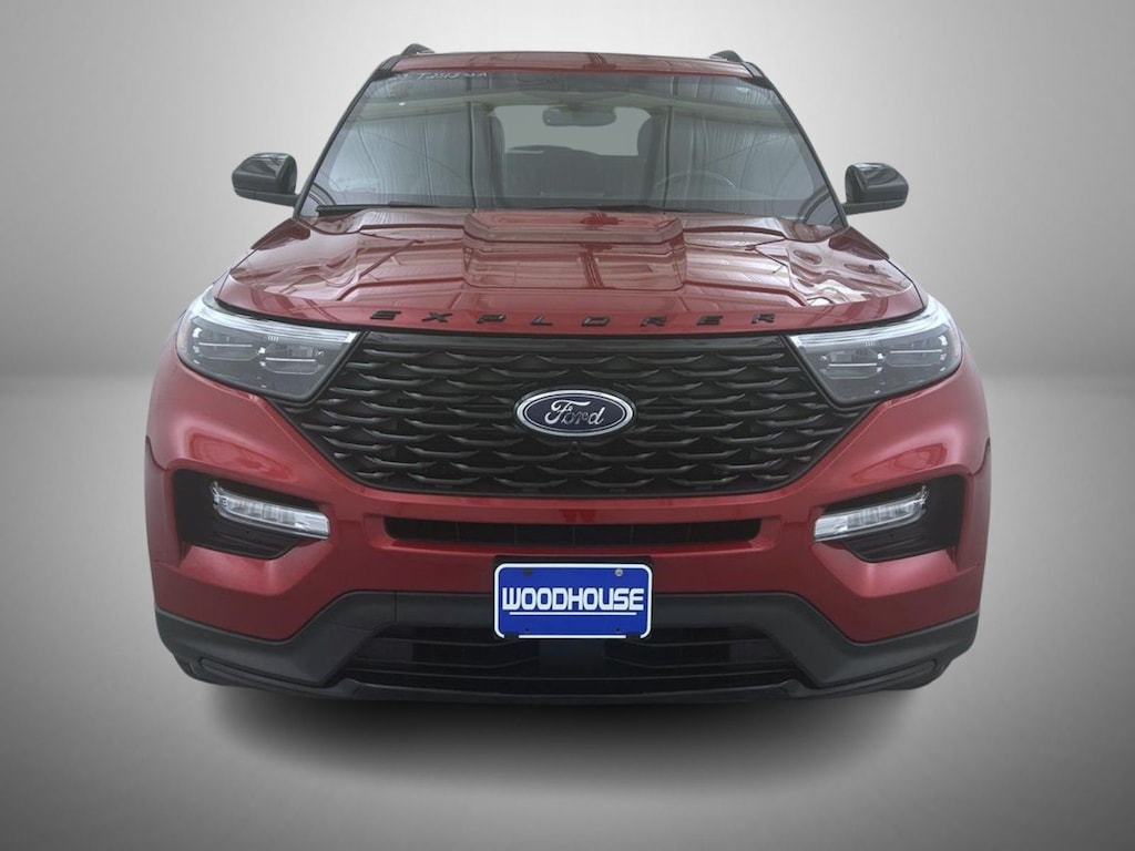 Rapid Red Metallic Tinted Clearcoat 2023 Ford Explorer ST-Line 4WD 10-Speed Automatic 2.3L EcoBoost I-4 12 Speakers, 20" Machined Aluminum w/Painted Pockets Wheels, 3.58 Non-Limited-Slip Rear Axle Ratio, 3rd row seats: bench, 4-Wheel Disc Brakes, 4G LTE Wi-Fi Hotspot Credit, ABS brakes, Air Conditioning, Alloy wheels, AM/FM radio: SiriusXM, Auto High-beam Headlights, Auto Start-Stop Removal (DISC), Auto-dimming Rear-View mirror, Automatic temperature control, Brake assist, Bumpers: body-color, Class IV Trailer Tow Package, Compass, Delay-off headlights, Driver door bin, Driver vanity mirror, Dual front impact airbags, Dual front side impact airbags, Electronic Stability Control, Emergency communication system: SYNC 3 911 Assist, Equipment Group 250A, Exterior Parking Camera Rear, FordPass Connect, Four wheel independent suspension, Front anti-roll bar, Front Bucket Seats, Front Center Armrest, Front dual zone A/C, Front fog lights, Front reading lights, Fully automatic headlights, Heated door mirrors, Heated front seats, Heated steering wheel, Htd ActiveX Trimmed Captain's Chairs w/Miko Insert, Illuminated entry, Knee airbag, Leather steering wheel, Low tire pressure warning, Navigation System, Occupant sensing airbag, Outside temperature display, Overhead airbag, Overhead console, Panic alarm, Passenger door bin, Passenger vanity mirror, Power door mirrors, Power driver seat, Power Liftgate, Power passenger seat, Power steering, Power windows, Radio data system, Radio: B&O Sound System by Bang & Olufsen, Rain sensing wipers, Rear air conditioning, Rear anti-roll bar, Rear reading lights, Rear window defroster, Rear window wiper, Remote keyless entry, Security system, Speed control, Speed-sensing steering, Speed-Sensitive Wipers, Split folding rear seat, Spoiler, Steering wheel mounted audio controls, SYNC 3 Communications & Entertainment System, SYNC 3/Apple CarPlay/Android Auto, Tachometer, Telescoping steering wheel, Tilt steering wheel, Traction control, Trip computer, Twin Panel Moonroof, Variably intermittent wipers, Voice-Activated Touchscreen Navigation System.