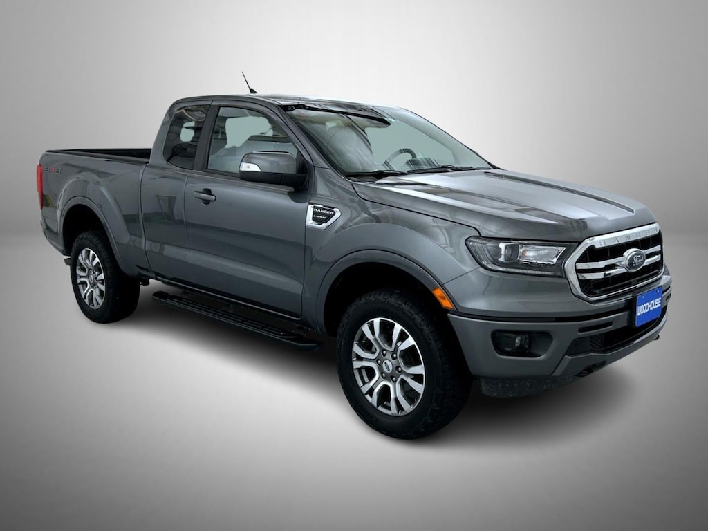 Gray Metallic 2023 Ford Ranger Lariat 4WD 10-Speed Automatic EcoBoost 2.3L I4 GTDi DOHC Turbocharged VCT 3.73 Axle Ratio, 4-Wheel Disc Brakes, 4G LTE Wi-Fi Hotspot Removal, 5" Rectangular Black Running Boards, 6 Speakers, ABS brakes, Air Conditioning, Alloy wheels, AM/FM radio: SiriusXM, AM/FM Stereo, Auto High-beam Headlights, Auto Start-Stop Removal, Auto-dimming Rear-View mirror, Automatic temperature control, Brake assist, Bumpers: body-color, Compass, Delay-off headlights, Driver door bin, Driver vanity mirror, Dual front impact airbags, Dual front side impact airbags, Electronic Stability Control, Emergency communication system: SYNC 3 911 Assist, Equipment Group 500A Standard, Exterior Parking Camera Rear, Front anti-roll bar, Front Bucket Seats, Front Center Armrest, Front dual zone A/C, Front fog lights, Front Heated Leather-Trimmed Bucket Seats, Front License Plate Bracket, Front reading lights, Front wheel independent suspension, Fully automatic headlights, Heated door mirrors, Heated front seats, Illuminated entry, Leather Shift Knob, Leather steering wheel, Low tire pressure warning, Occupant sensing airbag, Outside temperature display, Overhead airbag, Overhead console, Panic alarm, Passenger door bin, Passenger vanity mirror, Power door mirrors, Power driver seat, Power passenger seat, Power steering, Power windows, Rear step bumper, Rear window defroster, Remote keyless entry, Security system, SiriusXM Satellite Radio, Speed control, Speed-sensing steering, Steering wheel mounted audio controls, SYNC 3, SYNC 3/Apple CarPlay/Android Auto, Telescoping steering wheel, Tilt steering wheel, Traction control, Trip computer, Turn signal indicator mirrors, Variably intermittent wipers, Voltmeter, Wheels: 18" Machined Alum w/Stealth Gray Pockets.