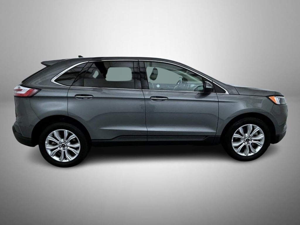 Gray Metallic 2024 Ford Edge Titanium AWD 8-Speed Automatic EcoBoost 2.0L I4 GTDi DOHC Turbocharged VCT 12 Speakers, 3.80 Axle Ratio, 4-Wheel Disc Brakes, ABS brakes, ActiveX-Trimmed Heated Sport Bucket Seats, Air Conditioning, Alloy wheels, AM/FM radio: SiriusXM with 360L, Auto High-beam Headlights, Auto-dimming Rear-View mirror, Automatic temperature control, Brake assist, Bumpers: body-color, Compass, Delay-off headlights, Driver door bin, Driver vanity mirror, Dual front impact airbags, Dual front side impact airbags, Electronic Stability Control, Emergency communication system: SYNC 4 911 Assist, Equipment Group 300A, FordPass Connect, Four wheel independent suspension, Front anti-roll bar, Front Bucket Seats, Front Center Armrest w/Storage, Front dual zone A/C, Front fog lights, Front License Plate Bracket, Front reading lights, Fully automatic headlights, Garage door transmitter, Heated door mirrors, Heated front seats, Heated steering wheel, Illuminated entry, Knee airbag, Leather steering wheel, Low tire pressure warning, Memory seat, Occupant sensing airbag, Outside temperature display, Overhead airbag, Overhead console, Panic alarm, Passenger door bin, Passenger vanity mirror, Power door mirrors, Power driver seat, Power Liftgate, Power passenger seat, Power steering, Power windows, Radio: B&O Sound System by Bang & Olufsen, Rain sensing wipers, Rear anti-roll bar, Rear reading lights, Rear seat center armrest, Rear window defroster, Rear window wiper, Remote keyless entry, Security system, SiriusXM w/360L, Speed control, Speed-Sensitive Wipers, Split folding rear seat, Spoiler, Steering wheel mounted audio controls, SYNC 4A w/Enhanced Voice Recognition, Tachometer, Telescoping steering wheel, Tilt steering wheel, Traction control, Trip computer, Turn signal indicator mirrors, Variably intermittent wipers, Wheels: 19" Luster Nickel-Painted Aluminum.