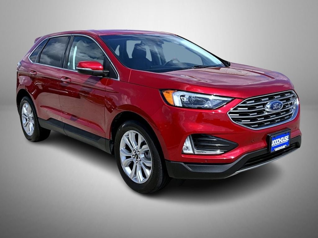 Red Metallic 2024 Ford Edge Titanium AWD 8-Speed Automatic EcoBoost 2.0L I4 GTDi DOHC Turbocharged VCT 12 Speakers, 3.80 Axle Ratio, 4-Wheel Disc Brakes, ABS brakes, ActiveX-Trimmed Heated Sport Bucket Seats, Air Conditioning, Alloy wheels, AM/FM radio: SiriusXM with 360L, Auto High-beam Headlights, Auto-dimming Rear-View mirror, Automatic temperature control, Brake assist, Bumpers: body-color, Compass, Delay-off headlights, Driver door bin, Driver vanity mirror, Dual front impact airbags, Dual front side impact airbags, Electronic Stability Control, Emergency communication system: SYNC 4 911 Assist, Equipment Group 300A, FordPass Connect, Four wheel independent suspension, Front anti-roll bar, Front Bucket Seats, Front Center Armrest w/Storage, Front dual zone A/C, Front fog lights, Front License Plate Bracket, Front reading lights, Fully automatic headlights, Garage door transmitter, Heated door mirrors, Heated front seats, Heated steering wheel, Illuminated entry, Knee airbag, Leather steering wheel, Low tire pressure warning, Memory seat, Occupant sensing airbag, Outside temperature display, Overhead airbag, Overhead console, Panic alarm, Passenger door bin, Passenger vanity mirror, Power door mirrors, Power driver seat, Power Liftgate, Power passenger seat, Power steering, Power windows, Radio: B&O Sound System by Bang & Olufsen, Rain sensing wipers, Rear anti-roll bar, Rear reading lights, Rear seat center armrest, Rear window defroster, Rear window wiper, Remote keyless entry, Security system, SiriusXM w/360L, Speed control, Speed-Sensitive Wipers, Split folding rear seat, Spoiler, Steering wheel mounted audio controls, SYNC 4A w/Enhanced Voice Recognition, Tachometer, Telescoping steering wheel, Tilt steering wheel, Traction control, Trip computer, Turn signal indicator mirrors, Variably intermittent wipers, Wheels: 19" Luster Nickel-Painted Aluminum.