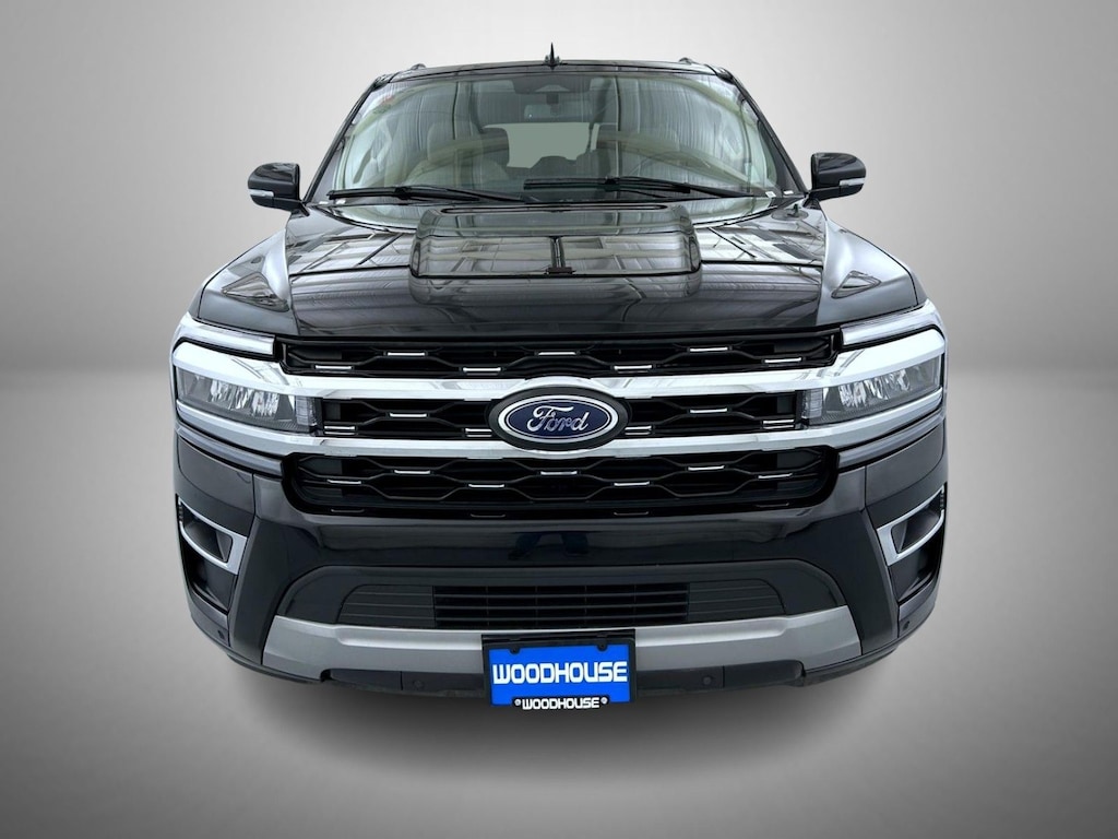 Black Metallic 2024 Ford Expedition Limited 4WD 10-Speed Automatic EcoBoost 3.5L V6 GTDi DOHC 24V Twin Turbocharged 12 Speakers, 3.31 Axle Ratio, 3rd row seats: split-bench, 4-Wheel Disc Brakes, ABS brakes, Adjustable pedals, Air Conditioning, Alloy wheels, AM/FM radio: SiriusXM with 360L, Auto High-beam Headlights, Auto-dimming door mirrors, Auto-dimming Rear-View mirror, Automatic temperature control, Brake assist, Bumpers: body-color, Compass, Delay-off headlights, Driver door bin, Driver vanity mirror, Dual front impact airbags, Dual front side impact airbags, Electronic Stability Control, Emergency communication system: SYNC 4 911 Assist, Equipment Group 301A Mid Package, Exterior Parking Camera Rear, Four wheel independent suspension, Front anti-roll bar, Front Bucket Seats, Front Center Armrest, Front dual zone A/C, Front fog lights, Front License Plate Bracket, Front reading lights, Fully automatic headlights, Garage door transmitter, Heated & Ventilated Leather Front Captain's Chairs, Heated door mirrors, Heated front seats, Heated rear seats, Heated steering wheel, Illuminated entry, Leather steering wheel, Low tire pressure warning, Memory seat, Navigation system: Connected Navigation, Occupant sensing airbag, Outside temperature display, Overhead airbag, Overhead console, Panic alarm, Panoramic Vista Roof, Passenger door bin, Passenger vanity mirror, Pedal memory, Power door mirrors, Power driver seat, Power Liftgate, Power moonroof, Power passenger seat, Power steering, Power windows, Radio data system, Radio: B&O Sound System by Bang & Olufsen, Rain sensing wipers, Rear air conditioning, Rear anti-roll bar, Rear reading lights, Rear window defroster, Rear window wiper, Reclining 3rd row seat, Remote keyless entry, Security system, SiriusXM w/360L, Speed control, Speed-sensing steering, Speed-Sensitive Wipers, Split folding rear seat, Spoiler, Steering wheel memory, Steering wheel mounted audio controls, SYNC 4 w/Enhanced Voice Recognition, Tachometer, Telescoping steering wheel, Tilt steering wheel, Traction control, Trip computer, Turn signal indicator mirrors, Variably intermittent wipers, Ventilated front seats, Voltmeter, Wheels: 20" Bright Machined Aluminum.