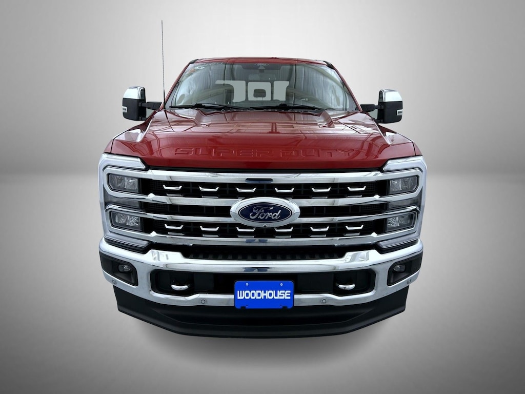 Red Metallic 2024 Ford F-250SD Lariat 4WD 10-Speed Automatic 6.7L High Output Power Stroke V8 Diesel 4-Way Adjustable Headrests, 4-Wheel Disc Brakes, 410 Amp Dual Alternators, 6" Angular Bright Anodized Step Bars, 8 Speakers, ABS brakes, Adjustable pedals, Air Conditioning, Alloy wheels, AM/FM radio: SiriusXM with 360L, Auto High-beam Headlights, Auto tilt-away steering wheel, Auto-dimming Rear-View mirror, Automatic High Beam, Automatic temperature control, BLIS w/Cross-Traffic Alert, Brake assist, Bumpers: chrome, Chrome Door Handles, Chrome Exhaust Tip, Chrome Package, Compass, Delay-off headlights, Driver door bin, Driver vanity mirror, Dual 68 AH/65 AGM Batteries, Dual front impact airbags, Dual front side impact airbags, Electronic Stability Control, Emergency communication system: SYNC 4 911 Assist, Engine Block Heater, Exterior Parking Camera Rear, F-250 >10K GVWR Package, Flow-Through Console, Front & Rear Wheel Well Liners (Pre-Installed), Front anti-roll bar, Front Bucket Seats, Front Center Armrest, Front dual zone A/C, Front fog lights, Front Leather-Trimmed 40/Console/40 Seats, Front License Plate Bracket, Front reading lights, Front Sensing System, Front Splash Guards/Mud Flaps (Pre-Installed), Fully automatic headlights, FX4 Off-Road Package, Garage door transmitter, Head-Up Display, Heated door mirrors, Heated front seats, Heated rear seats, Heated steering wheel, High Capacity 11.6" Axle Upgrade Package, Hill Descent Control, Illuminated entry, Intelligent Adaptive Cruise Control w/Stop-and-Go, Lane-Keeping System, Lariat Ultimate Package, Leather steering wheel, Low tire pressure warning, Memory seat, Navigation system: Connected Navigation (includes complimentary 1-year trial), Off-Road Specifically Tuned Shock Absorbers, Order Code 608A, Outside temperature display, Overhead airbag, Overhead console, Panic alarm, Passenger door bin, Passenger vanity mirror, Pedal memory, Post-Collision Braking, Power door mirrors, Power driver seat, Power passenger seat, Power steering, Power windows, Pre-Collision Assist, Pro Trailer Backup Assist, Pro Trailer Hitch Assist, Radio: B&O Sound System by Bang & Olufsen, Radio: B&O Unleashed Sound System by Bang & Olufsen, Rain sensing wipers, Rapid-Heat Supplemental Cab Heater, Rear reading lights, Rear seat center armrest, Rear Splash Guards/Mud Flaps (Pre-Installed), Rear step bumper, Rear window defroster, Remote keyless entry, Security system, SiriusXM Radio w/360L, Speed control, Split folding rear seat, Steering wheel memory, Steering wheel mounted audio controls, SYNC 4 w/Enhanced Voice Recognition, Tachometer, Tailgate Step & Handle, Telescoping steering wheel, Tilt steering wheel, Tough Bed Spray-In Bedliner, Traction control, Trip computer, Turn signal indicator mirrors, Unique Chrome Mirror Caps, Unique FX4 Off-Road Box Decal, Upfitter Switches (6), Variably intermittent wipers, Ventilated front seats, Wheels: 18" Bright Machined & Carbonized Gray Alum, Wheels: 20" Chrome PVD Aluminum, Wireless Charging Pad.