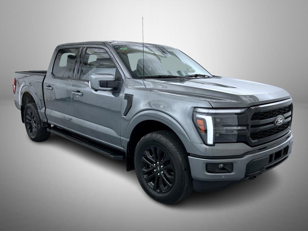 Carbonized Gray Metallic 2025 Ford F-150 Lariat 4WD 10-Speed Automatic 3.5L V6 EcoBoost 4-Wheel Disc Brakes, 4x4 FX4 Off-Road Bodyside Decal, 6" Angular Bright Anodized Step Bar, 8 Speakers, ABS brakes, ActiveX Trimmed Bucket Seats, Adjustable pedals, Air Conditioning, Alloy wheels, AM/FM radio: SiriusXM with 360L, Auto High-beam Headlights, Auto-dimming door mirrors, Auto-dimming Rear-View mirror, Automatic temperature control, Brake assist, Bumpers: chrome, Chrome wheels, Compass, Delay-off headlights, Driver door bin, Driver vanity mirror, Dual front impact airbags, Dual front side impact airbags, Electronic Stability Control, Emergency communication system: SYNC 4 911 Assist, Equipment Group 501A Mid, Front anti-roll bar, Front Bucket Seats, Front Center Armrest, Front dual zone A/C, Front fog lights, Front reading lights, Front wheel independent suspension, Fully automatic headlights, FX4 Off-Road Package, Garage door transmitter, Heated door mirrors, Heated front seats, Heated steering wheel, Hill Descent Control, Illuminated Driver & Passenger Visors, Illuminated entry, Low tire pressure warning, Memory seat, Monotube Rear Shocks, Navigation system: Connected Navigation, Occupant sensing airbag, Off-Road Tuned Front Shock Absorbers, Outside temperature display, Overhead airbag, Overhead console, Panic alarm, Passenger door bin, Passenger vanity mirror, Pedal memory, Power door mirrors, Power driver seat, Power passenger seat, Power steering, Power windows, Power-Sliding Rear Window, Radio data system, Radio: B&O Sound System by Bang & Olufsen, Rain sensing wipers, Rear reading lights, Rear seat center armrest, Rear step bumper, Rear window defroster, Remote keyless entry, Rock Crawl Mode, Security system, Speed control, Split folding rear seat, Steering wheel mounted audio controls, SYNC 4 w/Enhanced Voice Recognition, Tachometer, Telescoping steering wheel, Tilt steering wheel, Tow/Haul Package, Traction control, Tray Style Floor Liner w/o Carpet Mats, Trip computer, Turn signal indicator mirrors, Variably intermittent wipers, Ventilated front seats, Voltmeter, Wheels: 18" Chrome-Like PVD, Wheels: 20" Chrome-Like PVD.
