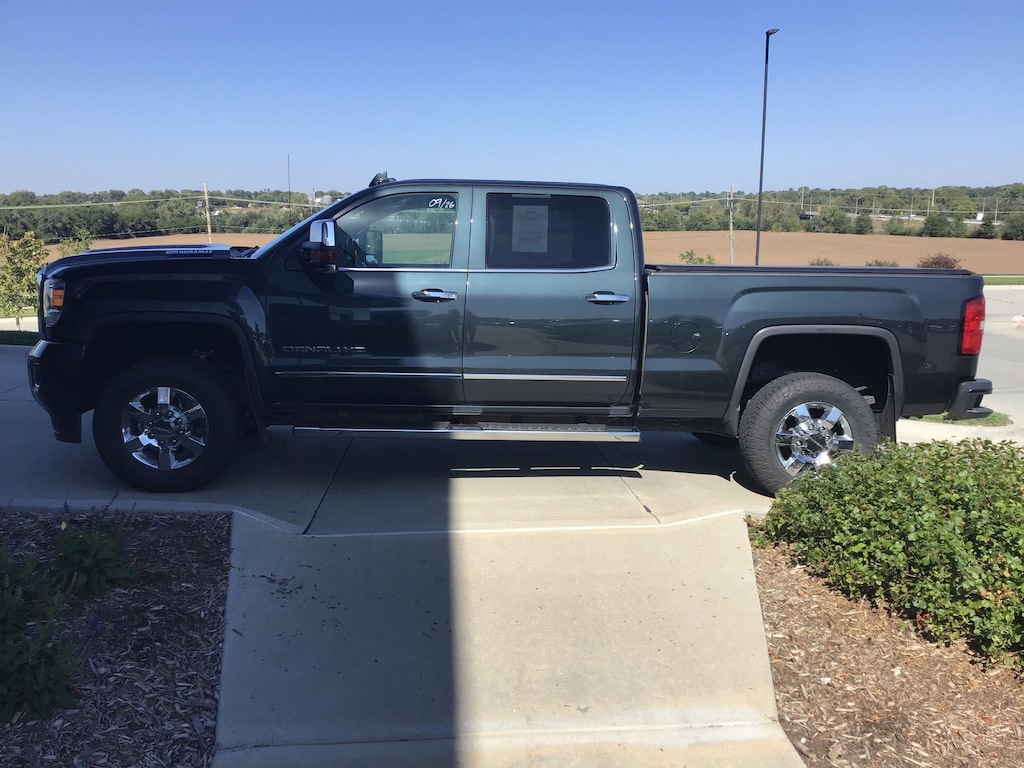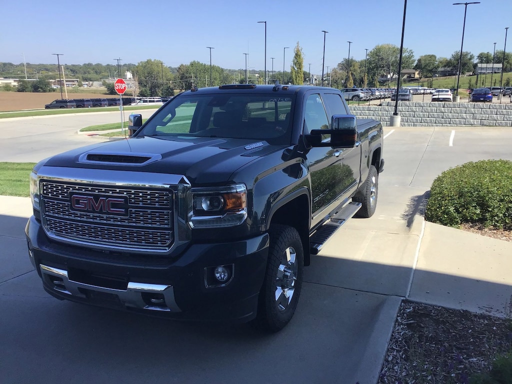 Dark Slate Metallic 2018 GMC Sierra 3500HD Denali 4WD Allison 1000 6-Speed Automatic Duramax 6.6L V8 Turbodiesel Allison 1000 6-Speed Automatic, 4WD, Jet Black Leather, 110-Volt AC Power Outlet, 150 Amps Alternator, 18" Chromed Aluminum Wheels, 4-Wheel Disc Brakes, 7 Speakers, 8" Multi-Color Customizable Driver Display, ABS brakes, Adjustable pedals, Air Conditioning, Alloy wheels, AM/FM radio: SiriusXM, Apple CarPlay/Android Auto, Auto-Dimming Inside Rear-View Mirror, Auto-dimming Rear-View mirror, Automatic temperature control, Bodyside moldings, Bose Speaker System, Brake assist, Bumpers: body-color, CD player, Chrome Bodyside Moldings, Chrome Door Handles, Chrome Power-Adjustable Heated Outside Mirrors, Chrome Recovery Hooks, Chrome wheels, Color-Keyed Carpeted 1st & 2nd Row Floor Mats, Color-Keyed Carpeting Floor Covering, Compass, Deep-Tinted Glass, Delay-off headlights, Driver & Front Passenger Visors, Driver Alert Package, Driver door bin, Driver vanity mirror, Dual front impact airbags, Dual front side impact airbags, Dual-Zone Automatic Climate Control, Duramax Plus Package, Electric Rear-Window Defogger, Electronic Shift Transfer Case, Electronic Stability Control, Emergency communication system: OnStar Guidance, Engine Block Heater, Exhaust Brake, Exterior Parking Camera Rear, EZ-Lift & Lower Tailgate, Floor Mounted Console, Forward Collision Alert, Front anti-roll bar, Front Body-Color Bumper, Front Bucket Seats, Front Center Armrest, Front dual zone A/C, Front fog lights, Front Frame-Mounted Black Recovery Hooks, Front Full Feature Bucket Seats, Front Halogen Fog Lamps, Front License Plate Kit, Front reading lights, Front wheel independent suspension, Fully automatic headlights, Garage door transmitter, GMC 4G LTE, GMC Connected Access, HD Radio, Heated & Ventilated Front Seating, Heated door mirrors, Heated Driver & Front Passenger Seats, Heated front seats, Heated steering wheel, High-Intensity Discharge Headlights, Hill Descent Control, Illuminated entry, Lane Departure Warning System, Leather Wrapped Heated Steering Wheel, Manual Tilt-Wheel/Telescoping Steering Column, Memory seat, Navigation System, Occupant sensing airbag, Off-Road Suspension Package, OnStar & GMC Connected Services Capable, Outside temperature display, Overhead airbag, Overhead console, Panic alarm, Passenger door bin, Passenger vanity mirror, Pedal memory, Perforated Leather-Appointed Seat Trim, Power Adjustable Pedals, Power door mirrors, Power driver seat, Power passenger seat, Power Sliding Rear Window w/Defogger, Power steering, Power Windows, Power windows, Preferred Equipment Group 5SA, Premium audio system: GMC Infotainment System, Radio: AM/FM/SiriusXM w/GMC Infotainment & Nav, Rear 60/40 Folding Bench Seat (Folds Up), Rear Body-Color Bumper w/Bumper CornerSteps, Rear reading lights, Rear seat center armrest, Rear step bumper, Rear Vision Camera, Rear Wheelhouse Liners, Rear window defroster, Remote Keyless Entry, Remote keyless entry, Remote Locking Tailgate, Remote Vehicle Starter System, Security system, Single-Slot CD/MP3 Player, SiriusXM Satellite Radio, Smoked Amber Roof Marker Lamps, Speed control, Speed-sensing steering, Split folding rear seat, Standard Suspension Package, Steering Wheel Audio Controls, Steering wheel mounted audio controls, Tachometer, Telescoping steering wheel, Tilt steering wheel, Traction control, Trailering Equipment, Trip computer, Turn signal indicator mirrors, Ultrasonic Front & Rear Park Assist, Unauthorized Entry Theft-Deterrent System, Universal Home Remote, Variably intermittent wipers, Ventilated front seats, Voltmeter, Wireless Charging, Allison 1000 6-Speed Automatic, 4WD, Jet Black Leather.