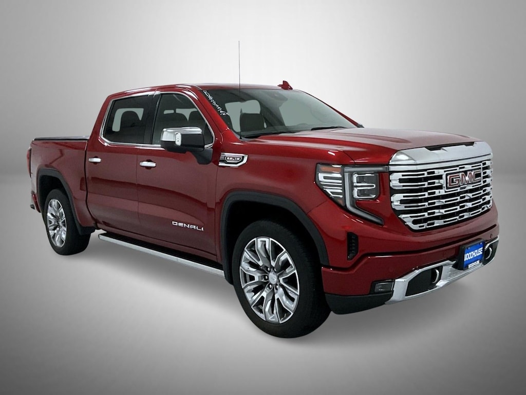 Volcanic Red Tintcoat 2024 GMC Sierra 1500 Denali 4WD 10-Speed Automatic EcoTec3 6.2L V8 10-Speed Automatic, 4WD, Atmosphere/Brownstone Leather, 12-Way Power Driver Seat Adjuster w/Lumbar, 12-Way Power Passenger Seat Adjuster w/Lumbar, 120-Volt Bed Mounted Power Outlet, 120-Volt Interior Power Outlet, 170 Amp Alternator, 2 Charge/Data USB Ports Inside Center Console, 2 Type-C Charge-Only Rear USB Ports, 2 USB Ports, 3.23 Rear Axle Ratio, 4-Wheel Disc Brakes, 7 Speakers, ABS brakes, Adaptive suspension, Air Conditioning, Alloy wheels, AM/FM radio: SiriusXM with 360L, Apple CarPlay/Android Auto, Auto High-beam Headlights, Auto-dimming door mirrors, Auto-dimming Rear-View mirror, Auto-Locking Rear Differential, Automatic temperature control, Auxiliary External Transmission Oil Cooler, Bed View Camera, Brake assist, Buckle to Drive, Bumpers: body-color, Chrome Header w/Signature Denali Chrome Grille, Chrome Recovery Hooks, Chrome Wheel To Wheel Assist Steps, Color-Keyed Carpeting Floor Covering, Compass, Deep-Tinted Glass, Delay-off headlights, Denali Premium Suspension w/Adaptive Ride Control, Denali Reserve Super Package, Driver door bin, Driver Memory, Driver vanity mirror, Dual Active Exhaust, Dual front impact airbags, Dual front side impact airbags, Electric Rear-Window Defogger, Electronic Stability Control, Emergency communication system: OnStar and GMC connected services capable, Enhanced Automatic Emergency Braking, Floor-Mounted Center Console, Following Distance Indicator, Forge Perforated Leather Seat Trim, Forward Collision Alert, Front anti-roll bar, Front Bucket Seats, Front Center Armrest, Front dual zone A/C, Front fog lights, Front License Plate Kit, Front Pedestrian Braking, Front Rain-Sensing Wipers, Front reading lights, Front wheel independent suspension, Fully automatic headlights, Garage door transmitter, Genuine wood console insert, Genuine wood dashboard insert, Genuine wood door panel insert, GMC Connected Access Capable, GMC MultiPro Power Steps, HD Surround Vision, Heated 2nd Row Outboard Seats, Heated door mirrors, Heated Driver & Front Outboard Passenger Seating, Heated front seats, Heated rear seats, Heated steering wheel, Heavy-Duty Air Filter, Hill Descent Control, Hitch Guidance, Hitch View, Illuminated entry, In-Vehicle Trailering System App, Integrated Trailer Brake Controller, IntelliBeam Automatic High Beam On/Off, Keyless Open & Start, Lane Keep Assist w/Lane Departure Warning, LED Cargo Area Lighting, Low tire pressure warning, Memory seat, Multicolor 15" Diagonal Head-Up Display, Navigation System, Occupant sensing airbag, OnStar & GMC Connected Services Capable, Outside temperature display, Overhead airbag, Overhead console, Panic alarm, Passenger door bin, Passenger vanity mirror, Perimeter Lighting, Power Door Locks, Power door mirrors, Power driver seat, Power Front Passenger Windows w/Express Up/Down, Power Front Windows w/Driver Express Up/Down, Power passenger seat, Power Rake & Telescoping Steering Column, Power Rear Windows w/Express Down, Power Sliding Rear Window w/Rear Defogger, Power steering, Power Sunroof, Power windows, Preferred Equipment Group 5SA, Premium audio system: GMC Infotainment System, Premium Bose 7-Speaker Sound System, Push Button Start, Radio data system, Radio: Premium GMC Infotainment Audio System, Rain sensing wipers, Rear Camera Mirror, Rear Cross Traffic Braking, Rear Pedestrian Detection, Rear reading lights, Rear seat center armrest, Rear step bumper, Rear Wheelhouse Liners, Rear window defroster, Remote keyless entry, Remote Vehicle Starter System, Safety Alert Seat, Security system, SiriusXM w/360L, Speed control, Speed-sensing steering, Split folding rear seat, Spray-On Pickup Bedliner w/Denali Logo, Steering Wheel Audio Controls, Steering wheel mounted audio controls, Super Cruise, Super Cruise Wrapped Steering Wheel, Tachometer, Technology Package, Telescoping steering wheel, Theft Deterrent System (Unauthorized Entry), Tilt steering wheel, Tract