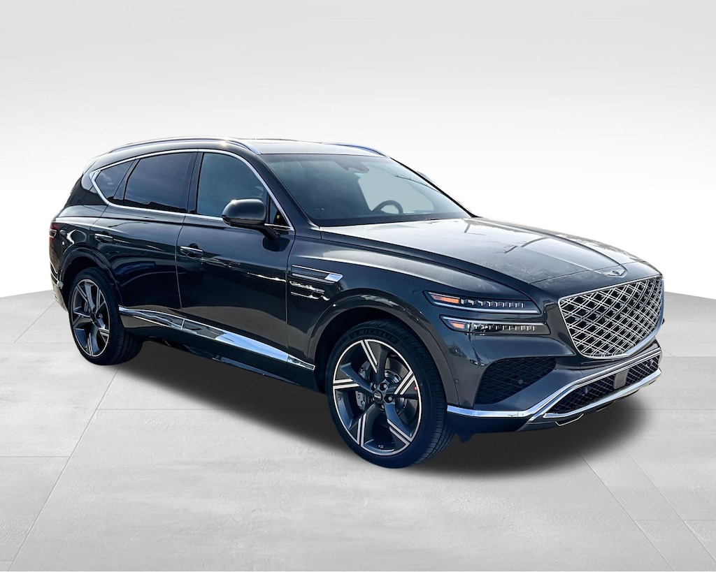 Makalu Gray 2025 Genesis GV80 3.5T Prestige AWD 8-Speed Automatic 3.5L DOHC 18 Speakers, 4-Wheel Disc Brakes, ABS brakes, Adaptive suspension, Air Conditioning, Alloy wheels, AM/FM radio: SiriusXM, Anti-whiplash front head restraints, Auto High-beam Headlights, Auto tilt-away steering wheel, Auto-dimming door mirrors, Auto-dimming Rear-View mirror, Automatic temperature control, Brake assist, Bumpers: body-color, Cargo Net, Cargo Tray, Compass, Delay-off headlights, Driver door bin, Driver vanity mirror, Dual front impact airbags, Dual front side impact airbags, Electronic Stability Control, Emergency communication system: Genesis Connected Services, Exterior Parking Camera Rear, First Aid Kit, Floating Wheel Cap, Four wheel independent suspension, Fragrance Cartridge, Front anti-roll bar, Front Bucket Seats, Front Center Armrest, Front dual zone A/C, Front reading lights, Fully automatic headlights, Garage door transmitter: HomeLink, Genuine wood console insert, Genuine wood dashboard insert, Genuine wood door panel insert, Heads-Up Display, Heated & Ventilated Front Bucket Seats, Heated door mirrors, Heated front seats, Heated rear seats, Heated steering wheel, Illuminated entry, Knee airbag, Leather steering wheel, Low tire pressure warning, Memory seat, Nappa Leather Seating Surfaces, Navigation System, NFC Key Card, Occupant sensing airbag, Option Group 01, Outside temperature display, Overhead airbag, Overhead console, Panic alarm, Passenger door bin, Passenger vanity mirror, Power door mirrors, Power driver seat, Power Liftgate, Power moonroof, Power passenger seat, Power steering, Power windows, Radio data system, Radio: AM/FM/SiriusXM/HD Bang & Olufsen Sound Sys, Rain sensing wipers, Rear air conditioning, Rear anti-roll bar, Rear reading lights, Rear seat center armrest, Rear side impact airbag, Rear window defroster, Rear window wiper, Remote keyless entry, Security system, Speed control, Speed-sensing steering, Speed-Sensitive Wipers, Split folding rear seat, Spoiler, Steering wheel memory, Steering wheel mounted audio controls, Tachometer, Telescoping steering wheel, Tilt steering wheel, Traction control, Trip computer, Turn signal indicator mirrors, Variably intermittent wipers, Ventilated front seats, Ventilated rear seats, Wheels: 22" x 9.5J Dark Gray Matte Alloy.